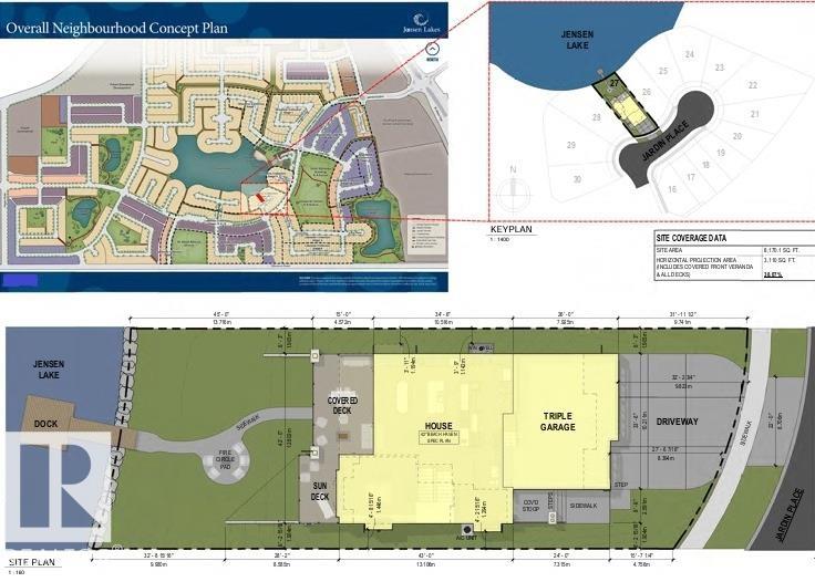 AMAZING URBIS WATERFRONT CREATION IN ST. ALBERT. Please to present this 5 bedroom WALKOUT masterpiece in Jensen Lakes. Over 5830 sqft of luxury living starts with wide open main floor featuring soaring ceilings and magnificent two island kitchen containing all the high end built-in's you would want. Numerous lake facing windows flood the main with warm natural light while you cozy up to the f/p. Upper level is host to the primary bedroom oasis along with 3 other bedrooms all with their own ensuites. Conveniently, the laundry is on the upper level as well. Rise up a little higher to the office loft area with lake facing windows/doors, bathroom and f/p. The finished basement is host to a large family/games area with bar and gym. Undeveloped flex space for golf sim? Also another bedroom and bathroom on this level. Multiple covered/open deck options adorn the lake side of this home. Park with ease in the triple attached garage that provides access to the mudroom and walkthru pantry. Pictures all renderings.
