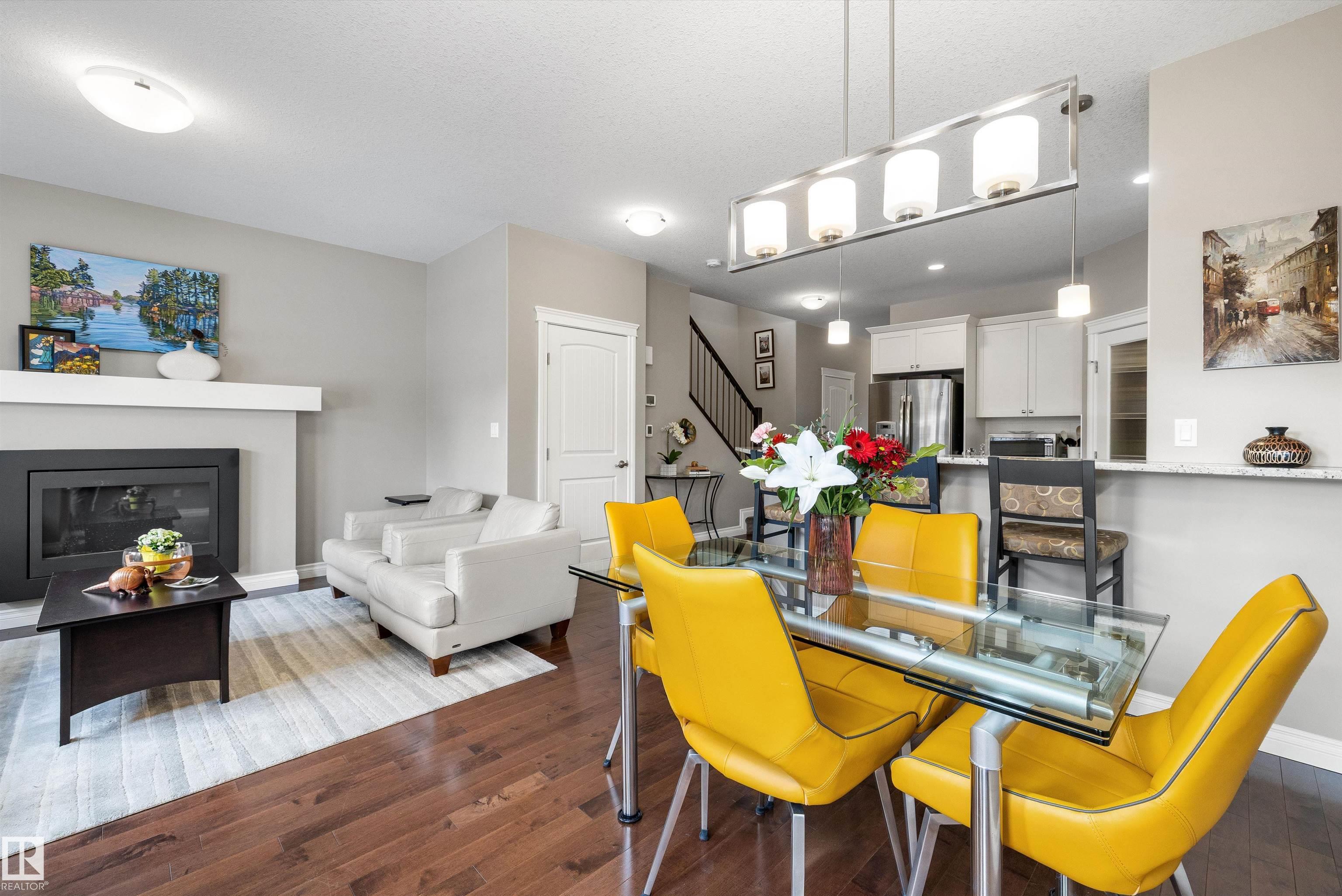 Fully finished, move in ready home backs onto walking trails and greenspace that lead DIRECTLY to Prescott k-9 school; YES you can watch your kids walk to school from the comfort of your home. This stylish duplex is finished beautifully with 9'ceilings, a gas fireplace, quartz countertops, hardwood floors and A/C! Main floor is open concept and functional with a corner pantry, gas stove and ample counterspace in kitchen. Upper floor boasts large laundry room and 2 large suites each with their own 4 piece bathrooms and large walk-in closets. The front bedroom suite has bay window feature giving a cozy spot to curl up with a cup of coffee and a good book. The rear suite has extra windows and the ensuite has a jetted tub! The basement was finished by the builder and has a family room, 3rd good sized bedroom and full 4 piece bathroom with tub & shower. The home is located next to walking trails so no neighbor on once side! Located steps to Jubilee park in family community; don't miss this one!