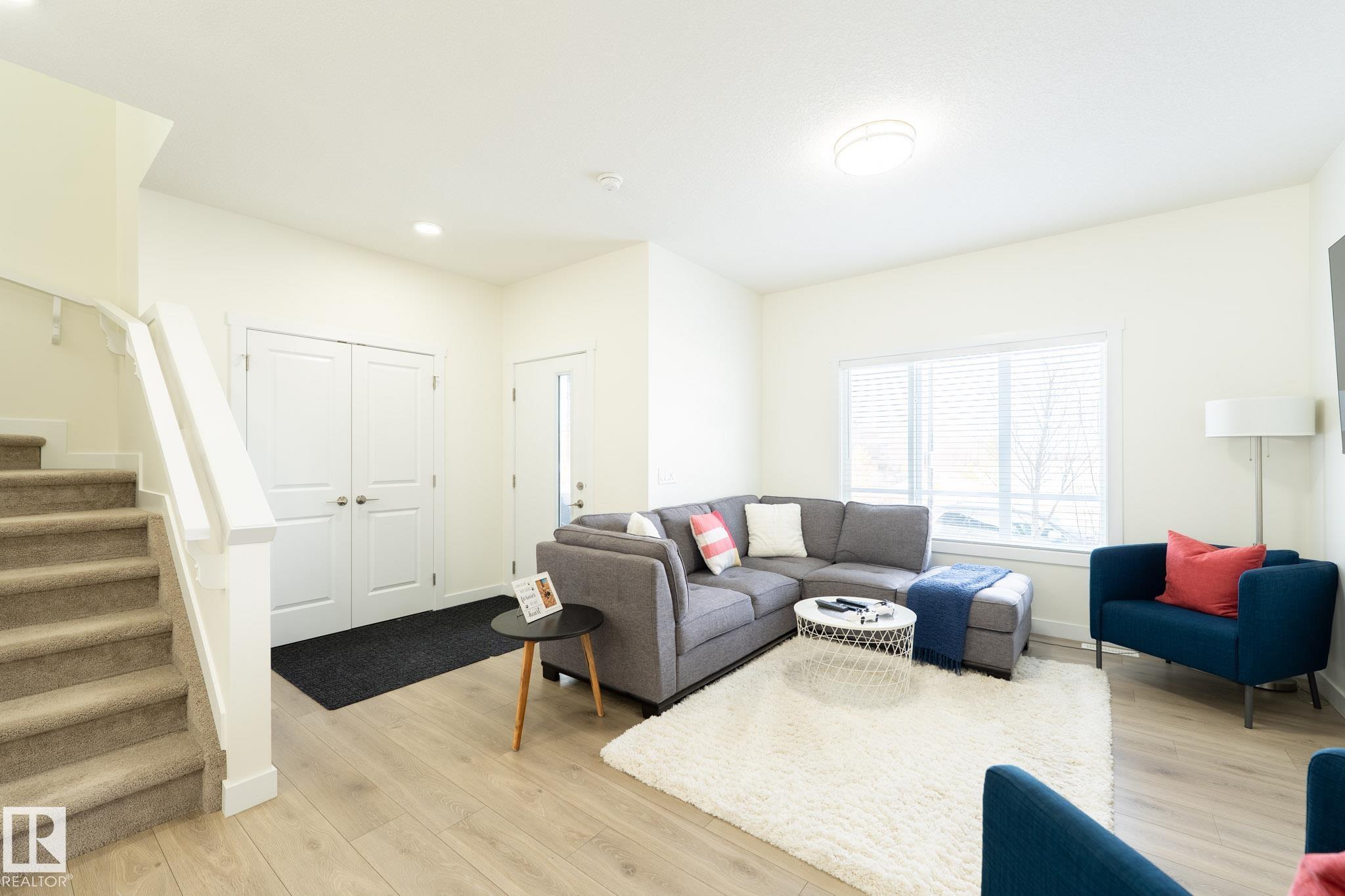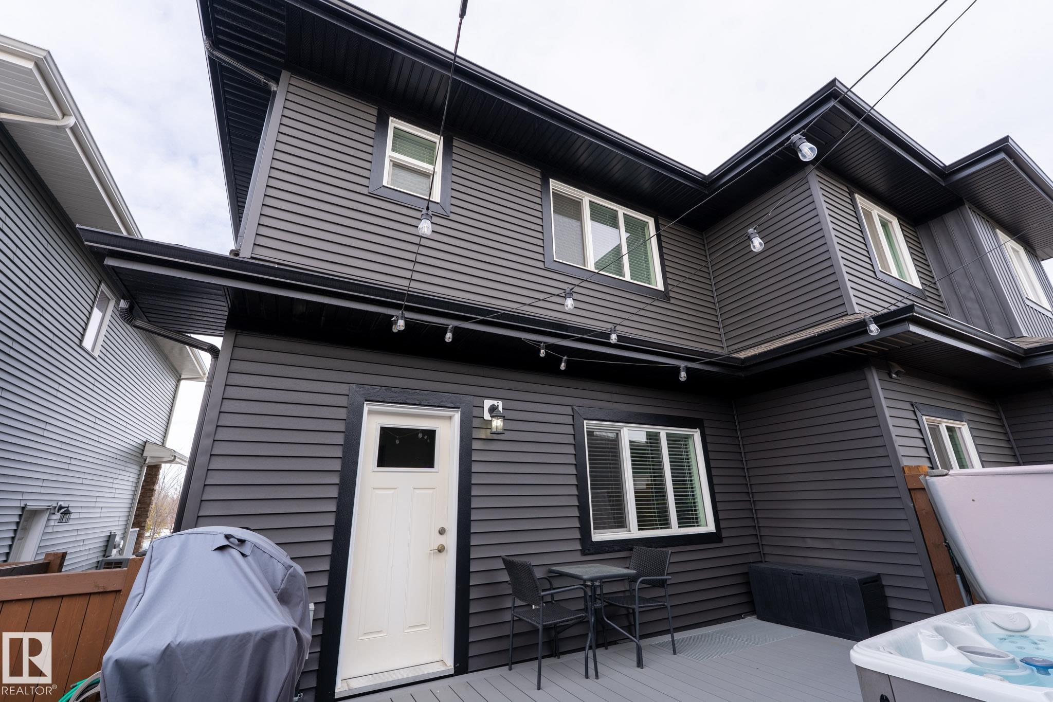 Welcome to this like-new, almost 1400 sq ft, 3 bedroom duplex located in Spruce Grove in the desirable community of Fenwyck, minutes from West Edmonton. Offering beautiful design, thoughtful upgrades, and exceptional comfort, this home is perfect for families, professionals, or investors alike. The bright and open main floor showcases crisp white cabinetry, an oversized quartz island ideal for entertaining, and elegant under-cabinet lighting. A convenient side entrance adds flexibility and future potential. Meticulously maintained and truly move-in ready, this home features central air conditioning for year-round comfort, a double detached garage, driveway and ample parking. The irrigation system and composite decking make outdoor maintenance effortless. Step outside to enjoy beautiful pond views, scenic walking trails, and nearby amenities — then come home to unwind in your private built-in hot tub, creating the perfect space to relax or entertain in every season.