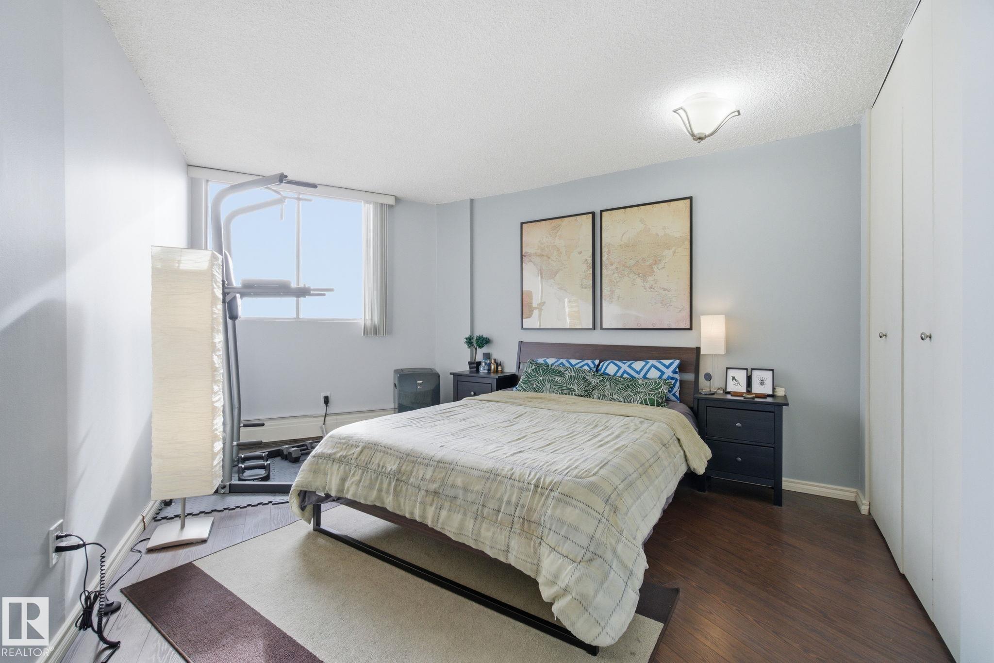 Spectacular south-facing views of Edmonton from this beautifully maintained 1-bedroom condo in prestigious Glenora. Freshly painted and spacious, this bright home features laminate flooring throughout, an oversized living room, and a generous dining area ideal for entertaining. The kitchen was stylishly renovated in 2021 with new cabinetry, modern backsplash, stove, and dishwasher. The large bedroom comfortably accommodates a king-sized bed and offers two ample closets. A 4-piece bath, sizeable front entry closet, and an exceptionally large in-suite storage room—perfect for bikes and bulky items—add outstanding functionality. This well-managed concrete building boasts premium amenities including a pool, sauna, fitness centre, games room, vending machines, and on-site management with extended hours. Condo fees include electricity, heat, and water for true worry-free living. Steps to transit and the future LRT, and just minutes to downtown, the River Valley, shopping, cafés, and restaurants.