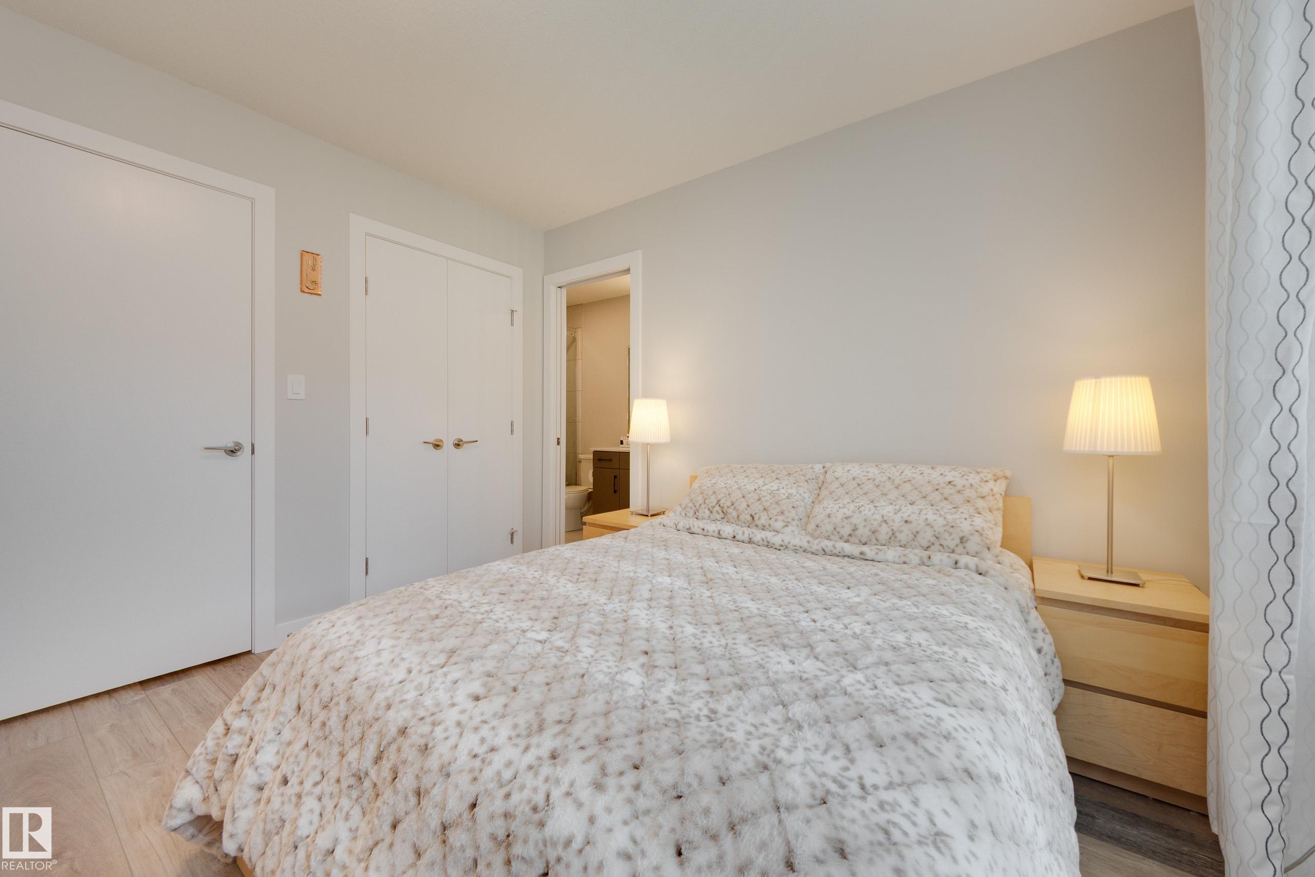 Located in The One at Keswick, this stylish townhome offers convenient access to Joan Carr Catholic School, The Currents at Windermere, shopping, and major commuter routes. Ideally positioned within the complex, the home features a double attached garage with additional storage and utility space. Step into the bright main level where an open design connects the kitchen, dining area, and great room. The kitchen showcases quartz countertops, a central island, pantry, and thoughtful cabinetry. A comfortable living space and two-piece powder room complete this level. Upstairs, two spacious bedrooms each enjoy their own ensuite. One features a walk-in closet and four-piece bath, while the second offers two walk-in closets and a three-piece ensuite with walk-in shower. Stacking laundry is conveniently located on the upper level, creating a functional and well-planned layout.