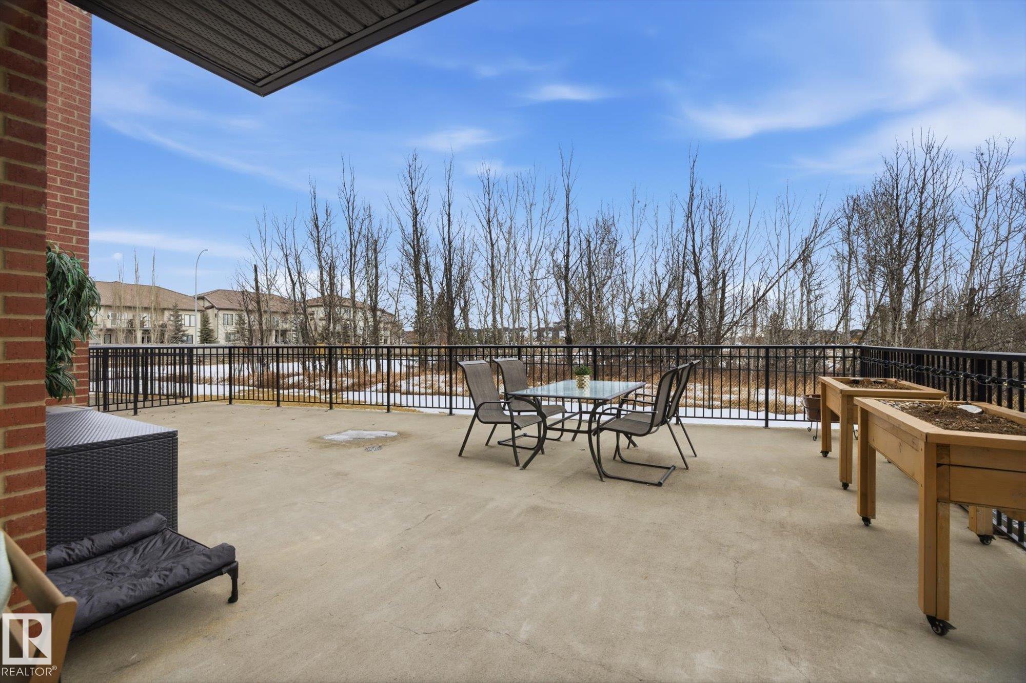 SHOWSTOPPER 1st FLOOR CORNER UNIT with RAVINE views and an underground parking stall! Welcome to Elan by Carrington Communities—an upscale condo backing onto peaceful green space. This 1,070 sq/ft unit features 2 spacious bedrooms, 2 full baths, in-suite laundry, and plenty of in-unit storage plus an additional storage locker. Natural light floods in through extra windows in this bright, open layout with 9' ceilings, stylish laminate and tile flooring, to-the-ceiling cabinets, upgraded stainless steel appliances, and a massive kitchen island. The primary suite impresses with a custom barn door to the walk-in closet and 3pce ensuite. Step onto your massive corner patio with a ravine views, covered area, a gas line for your BBQ and plenty of room to entertain. Amenities include a fitness centre, party room, boardroom, and visitor parking. Prime location near trails, schools, South Common, Anthony Henday, Hwy 2, Edmonton International Airport, shopping, & more. Don’t miss out! Exceptional value - a 10/10!