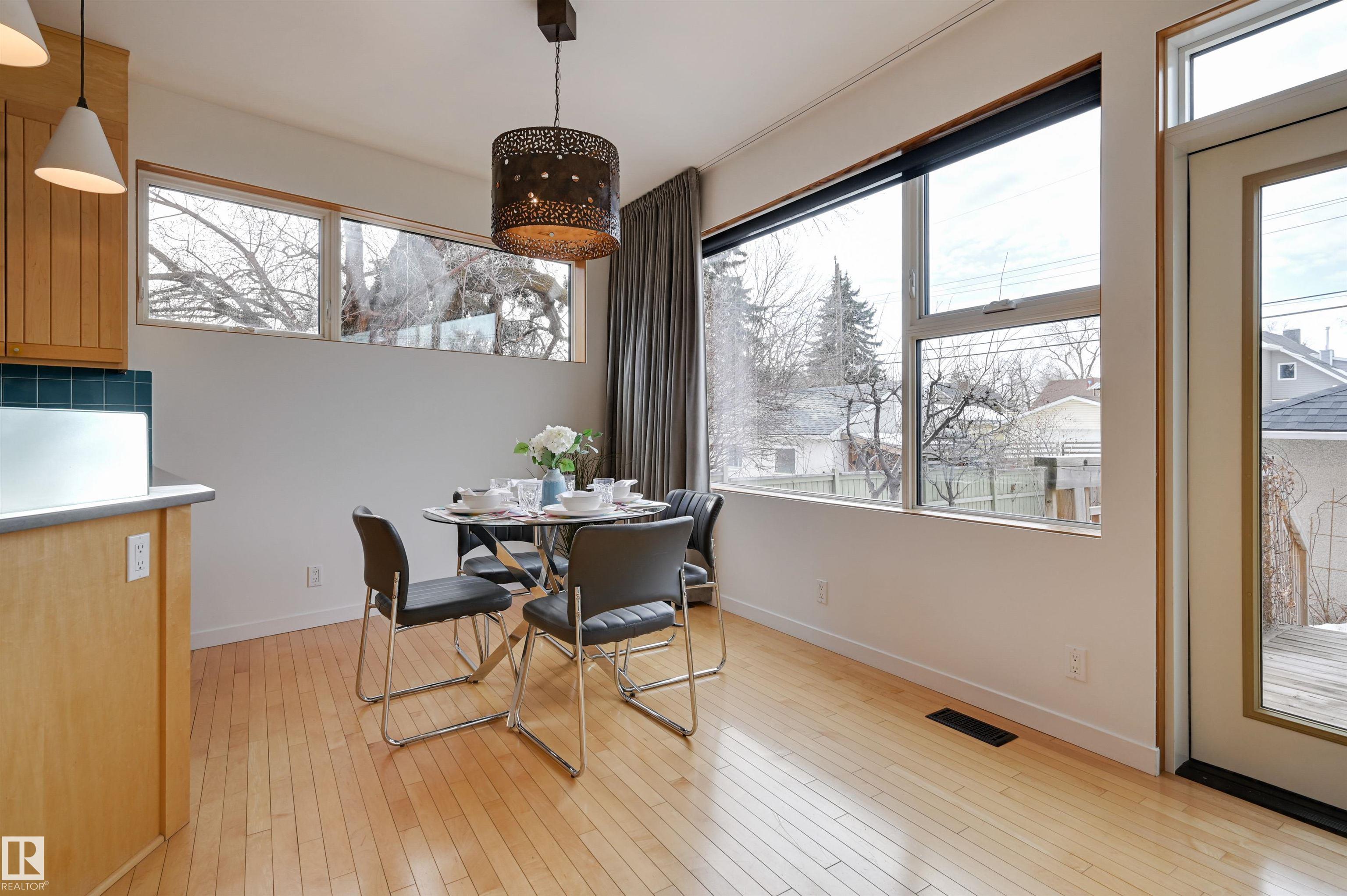 Unique property offering 2 complete homes, ideal as a revenue generator or for a multi-gen family wanting comfortable separation. The 4 bedroom, 2 bath bungalow with a fully developed lower level offers functional everyday living The attached 3 bedroom, 4 bath 2-storey is a standout, showcasing thoughtful architecture + high-quality construction. Designed with intention, it blends modern style with timeless finishes, creating a space that feels elevated yet practical. The open layout, generous bedrooms + multiple baths support busy households with ease. The primary retreat offers a private ensuite + exceptional storage. A finished basement adds even more versatile living space. Your stunning private courtyard oasis with lush + beautiful greenery is comfortably situated between dwellings. Your west-facing deck and yard is a picturesque place to spend the upcoming summer evenings! A detached double garage keeps vehicles secure and safe. Close to LRT, RAH, NAIT + amenities. A must see property for families!