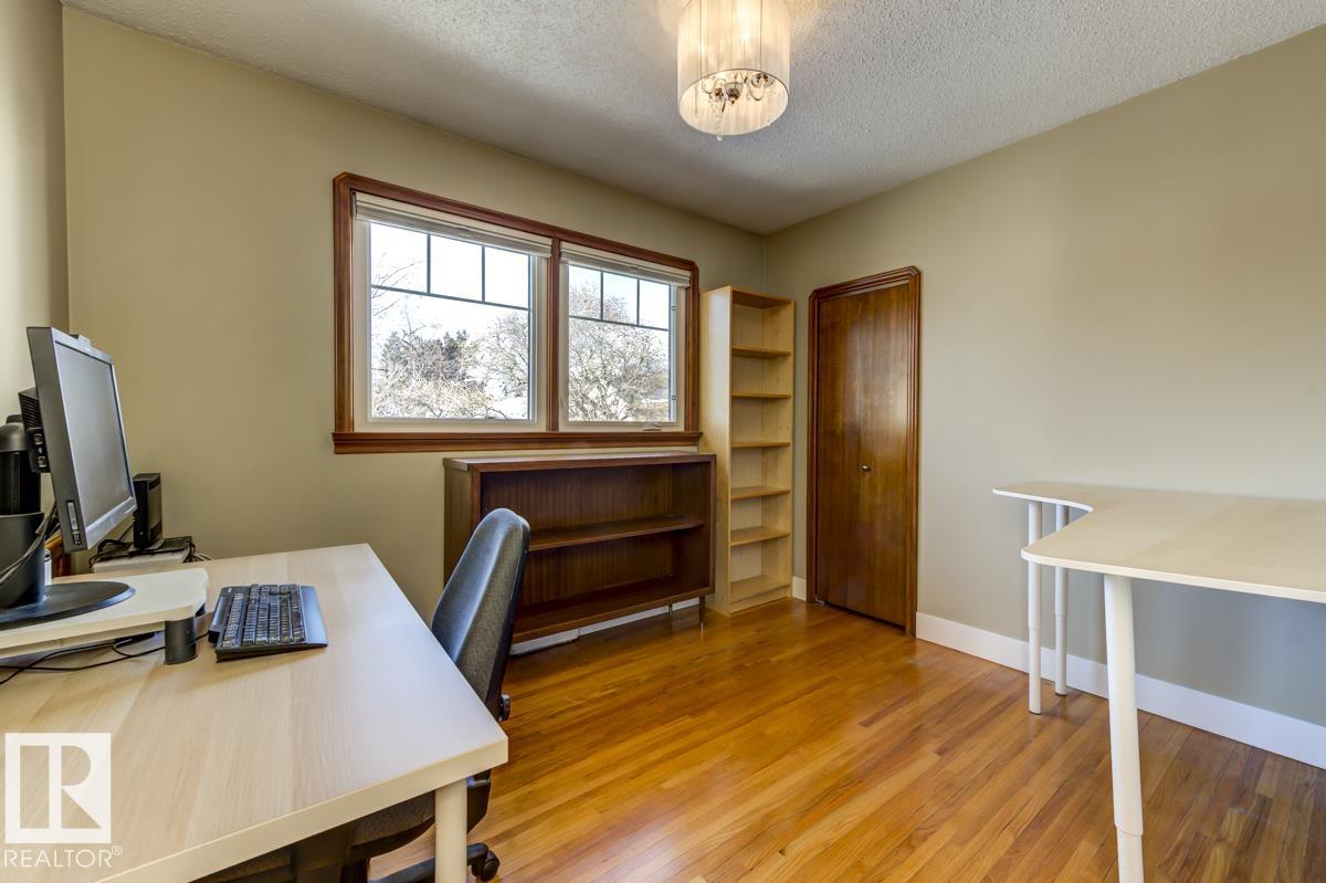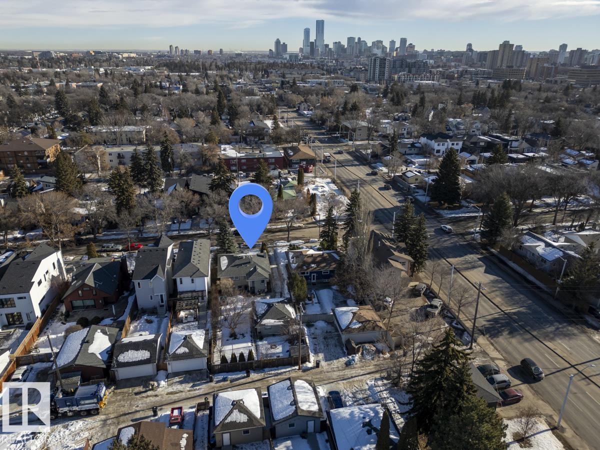 Rich character meets an unbeatable location in this beautifully maintained Westmount gem! Offering 1,114 sq.ft. (Above Grade), this home blends timeless charm w/ thoughtful updates. The main flr showcases gleaming hardwood flrs, distinctive architectural details & 3 generously sized bdrms. The inviting living rm, complete w/ cozy electric f/p, is perfect for relaxing evenings, while the updated kitchen shines w/ classic finishes that will never go out of style. Separate entrance opens to a fully developed bsmt featuring 2 additional bdrms, 2nd kitchen, 3-pc bath & spacious rec rm—ideal for extended family & guests. Step outside to your own sunny, west-facing oasis. The beautifully landscaped backyard boasts mature apple & cherry trees, raspberry bushes, patio area for summer entertaining, storage shed, & a heated dbl detached garage. Just minutes from downtown & steps to the boutiques, trendy restaurants, cafes, & vibrant energy of 124 St, this is city living at its finest!
