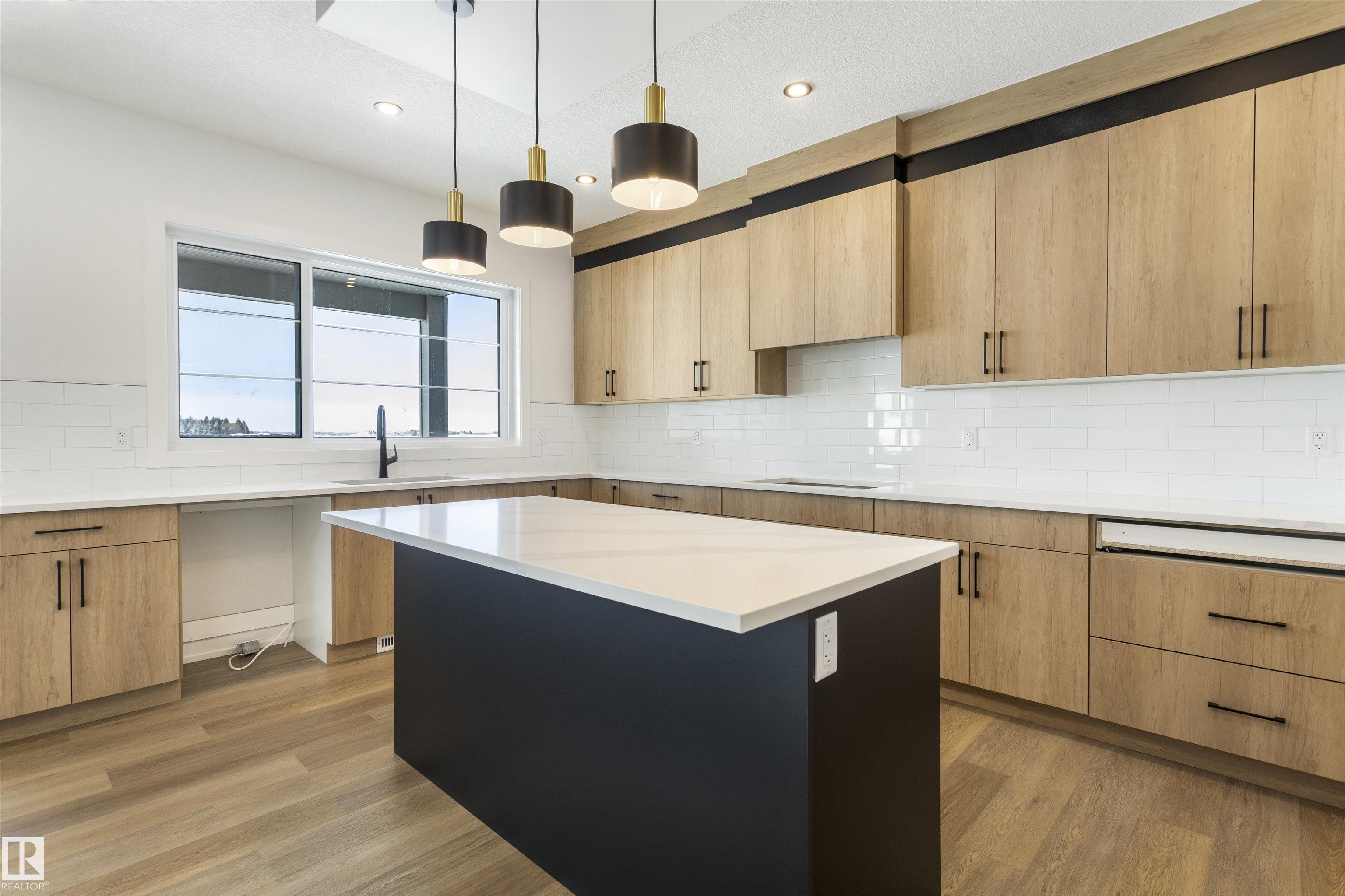 Backing onto a scenic pond and situated on a desirable corner lot in the Blackstone community of Leduc, this brand-new home with a triple attached garage offers an exceptional blend of space, style, and functionality. The main floor features a bedroom and full bathroom, ideal for guests or multi-generational living, along with a bright open-to-below living room with a fireplace that creates a warm and inviting atmosphere. The beautifully designed wrap-around kitchen includes quartz countertops, modern cabinetry, and a convenient walkthrough pantry for added storage and everyday ease. Step outside to enjoy the deck, perfect for relaxing or entertaining while taking in peaceful pond views. Upstairs, you’ll find 3 spacious bedrooms, a central bonus room, and a convenient laundry area. The primary suite also offers a private balcony, providing a quiet retreat with elevated views. A side entrance to the basement allows for future development potential.