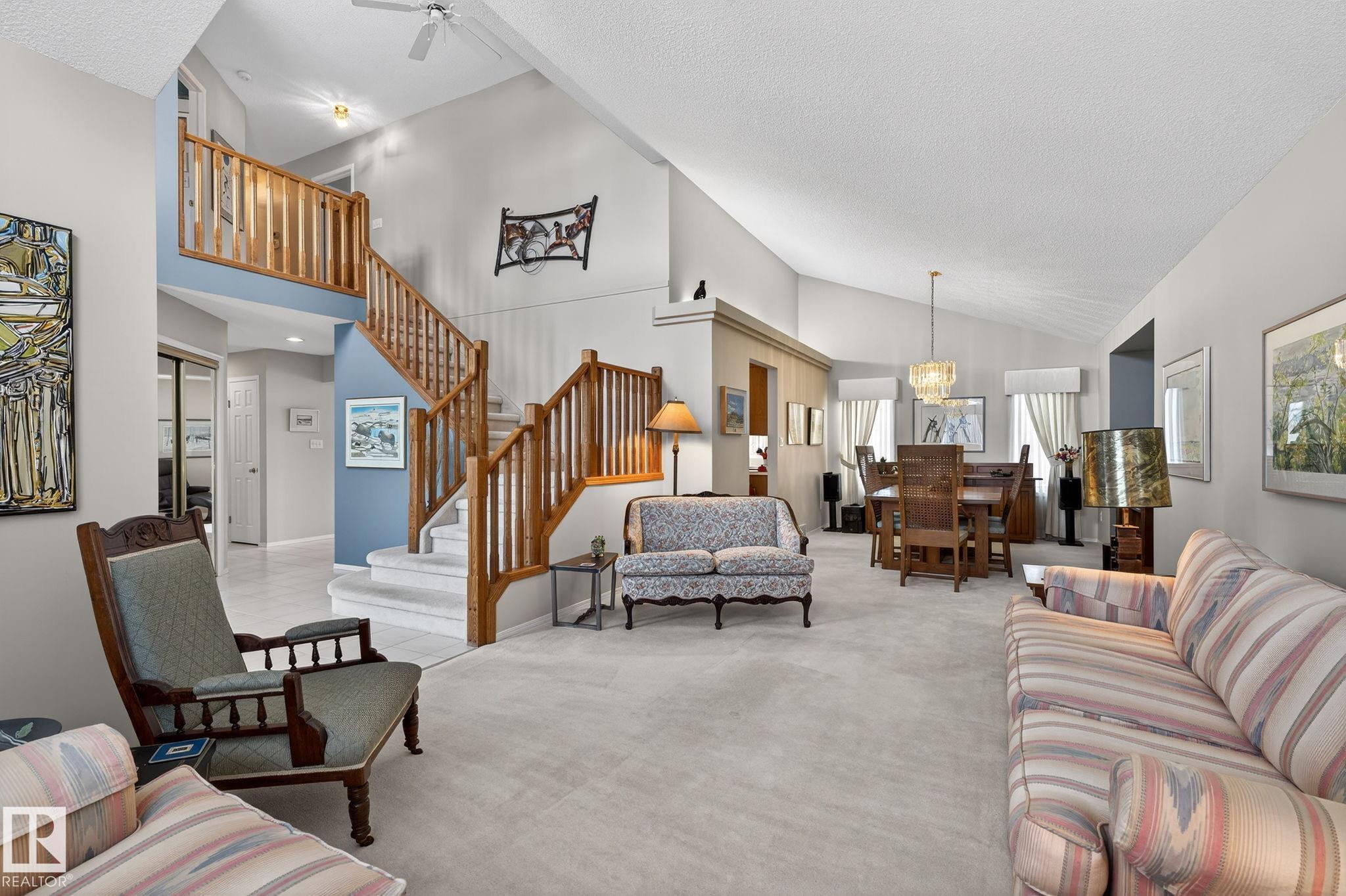 QUIET LOCATION nestled in The RIDGE in Henderson Estates steps away from the RIVER VALLEY TRAILS AND NATURAL TREED SURROUNDINGS. This charming 2544 SF FAMILY HOME has been lovingly maintained. Improvements include newer triple glazed windows (2014), new Roof (2024), 2 Trane furnaces & 2 hot water tanks (2010) The home boasts three GOOD SIZED bedrooms upstairs, full bath, plus a primary ensuite. The main level features a large living room, dining room, bright open island kitchen extending into a family room with fireplace and patio doors, main floor den, half bath and mudroom/laundry. The fully finished basement offers a bedroom, 3 piece bath, a Rec room with fireplace, bar /pool table, Hobby room and lots of storage. HUGE 11120 SF FENCED YARD backs to a service corridor and features a large deck with hot tub! Conveniently located near the RIVER, highly rated schools, and Terwillegar Rec Centre. Easy access to Whitemud Drive, Anthony Henday, shopping, parks and U of A. GREAT OPPORTUNITY FOR LARGE FAMILY!