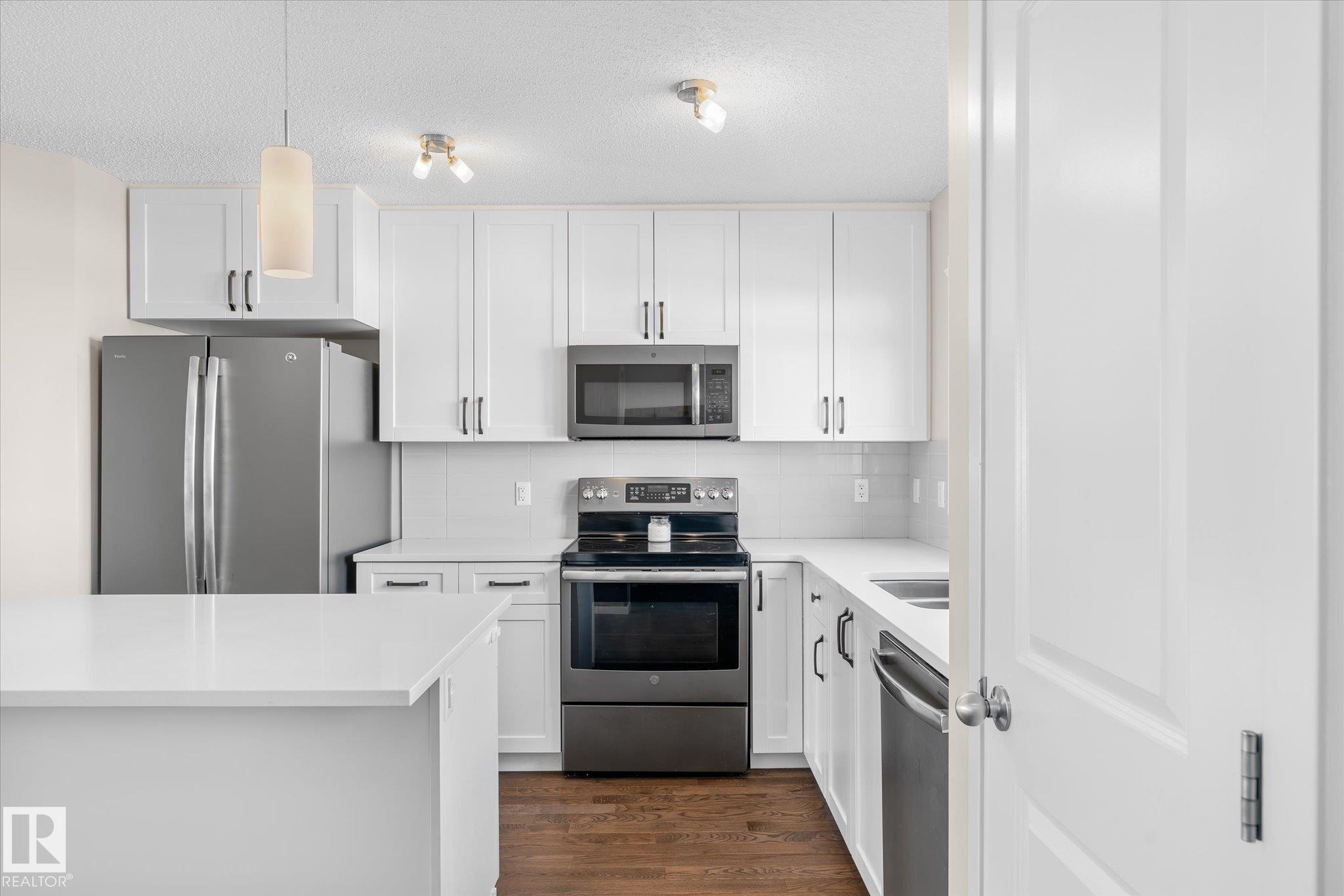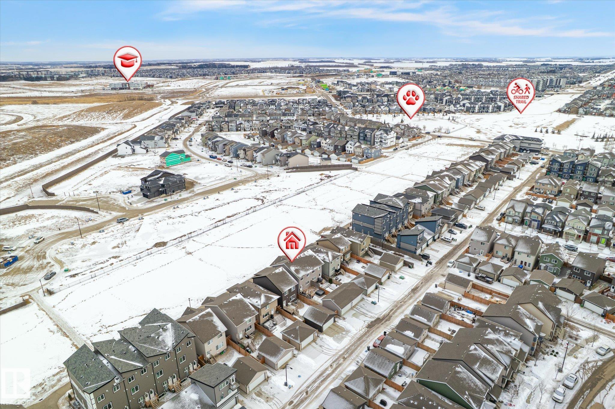 Perfect in Paisley! Here's your opportunity to purchase a wonderful fully finished and move in ready home in a fabulous South Edmonton community where you'll love walking trails, the dog park, and easy access to the Henday too. This beautiful and bright half duplex faces a green belt adding extra privacy and peace to the home's front yard. Inside you are welcomed into the open concept main floor with stunning hardwood floors, electric fireplace, and open concept kitchen/dining area upgraded with ceiling height cabinets, quartz countertops, and stainless steel appliances. Out back is complete with landscaping, fence, deck, and an awesome hot tub to enjoy year round. Don't forget double detached garage with enough driveway space for extra parking too. Upstairs find convenient laundry, main bathroom, and 3 bedrooms including the primary with ensuite and walk in closet. The professionally finished basement adds a fourth bedroom and additional living room - plenty of space for your family to call home!