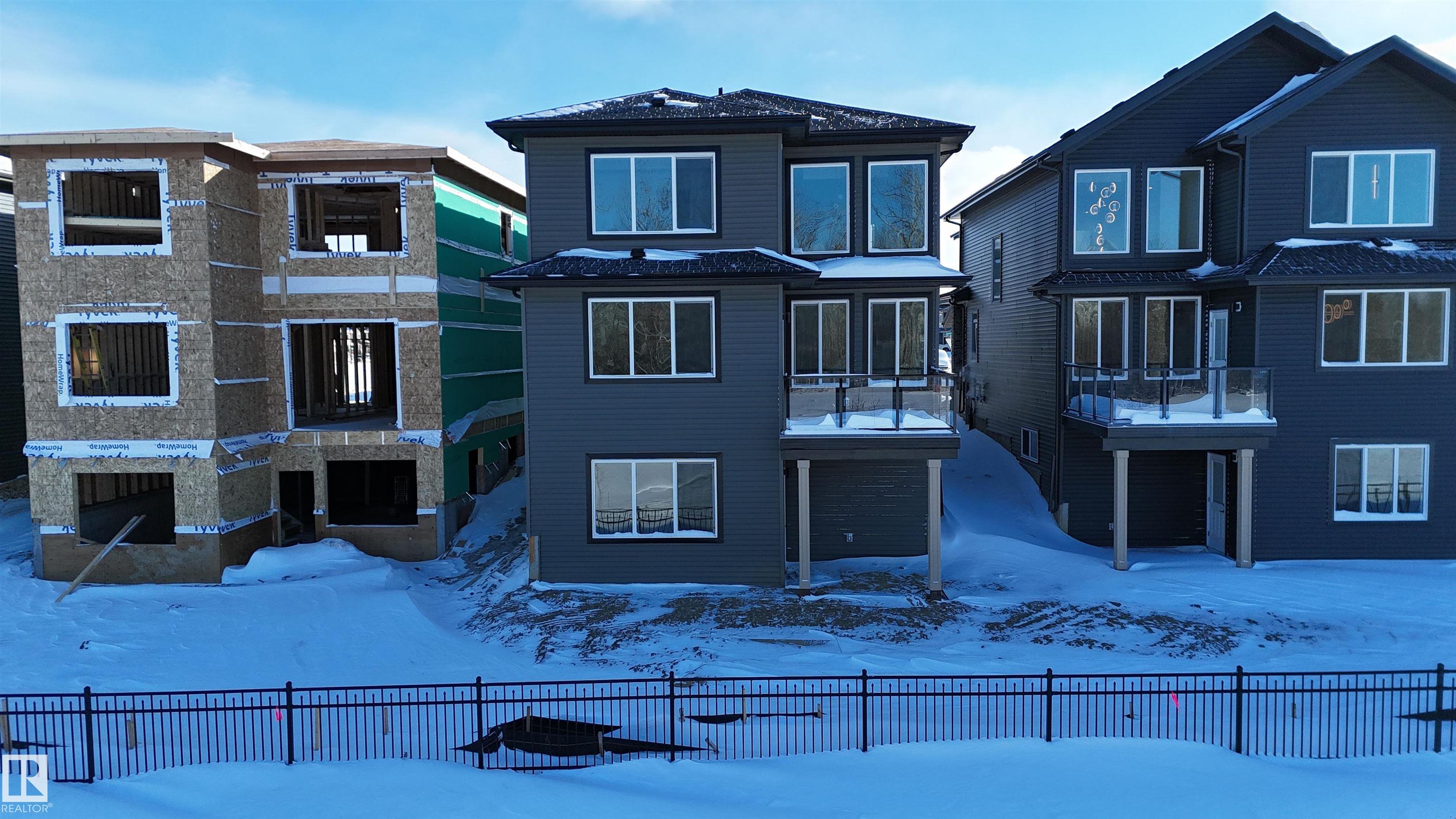 BRAND NEW Quick Possession 2 Storey home in the vibrant community of FENWYCK, backing onto greenspace w/pond & walking trails. Enjoy west-facing views w/no rear neighbors. Home offers elegance & luxury throughout, complete w/oversized 20x27 double attached garage (trucks & SUVs) w/floor drain, 9’ ceilings on the main flr, vinyl flring, upgraded lighting & triple pane windows. The living room is a true showcase w/soaring 18’ ceilings, expansive windows & an elegant gas fireplace centerpiece. Stylish kitchen includes quartz countertops, built-in hood fan & walk-through pantry. A main flr den adds flexibility for a home office. Iron railing & staircase lighting enhance the modern design. Upstairs features a spacious bonus room, upper laundry, custom closet shelving & a luxurious ensuite w/large format tile, glass & tile shower, soaker tub & private water closet. Maintenance-free dura deck w/glass & aluminum railing. WALKOUT basement is ready for development, offering additional space for your growing family