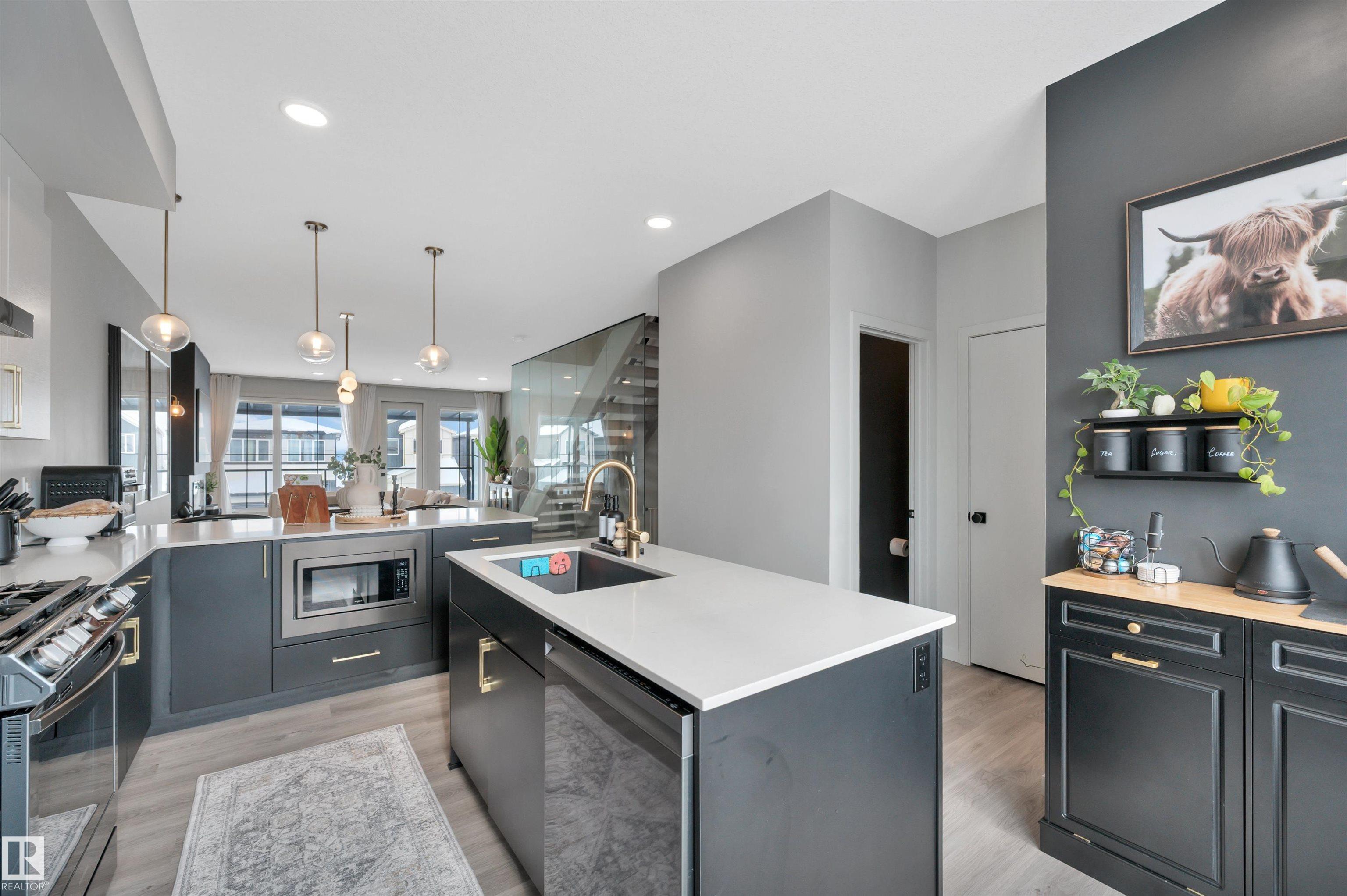 Offering over 2,000 sq ft of thoughtfully designed living space, this upgraded 3-storey detached home blends modern design with everyday functionality. A ground-level bedroom with its own ensuite provides ideal space for guests, extended family, or a private office. The entire second level is dedicated to the main living space, featuring a contemporary kitchen with upgraded appliances and sleek finishes, flowing seamlessly into the dining and living areas, equipped with motorized blinds. A striking glass feature wall and open-riser staircase add architectural impact throughout. Upstairs, you’ll find three additional bedrooms, including a spacious primary retreat complete with a spa-like 5-piece ensuite, along with refined finishes and organized closet systems. Finished with a covered balcony, fenced front yard, attached double garage, and water softener, this home delivers elevated living in a desirable southwest community.