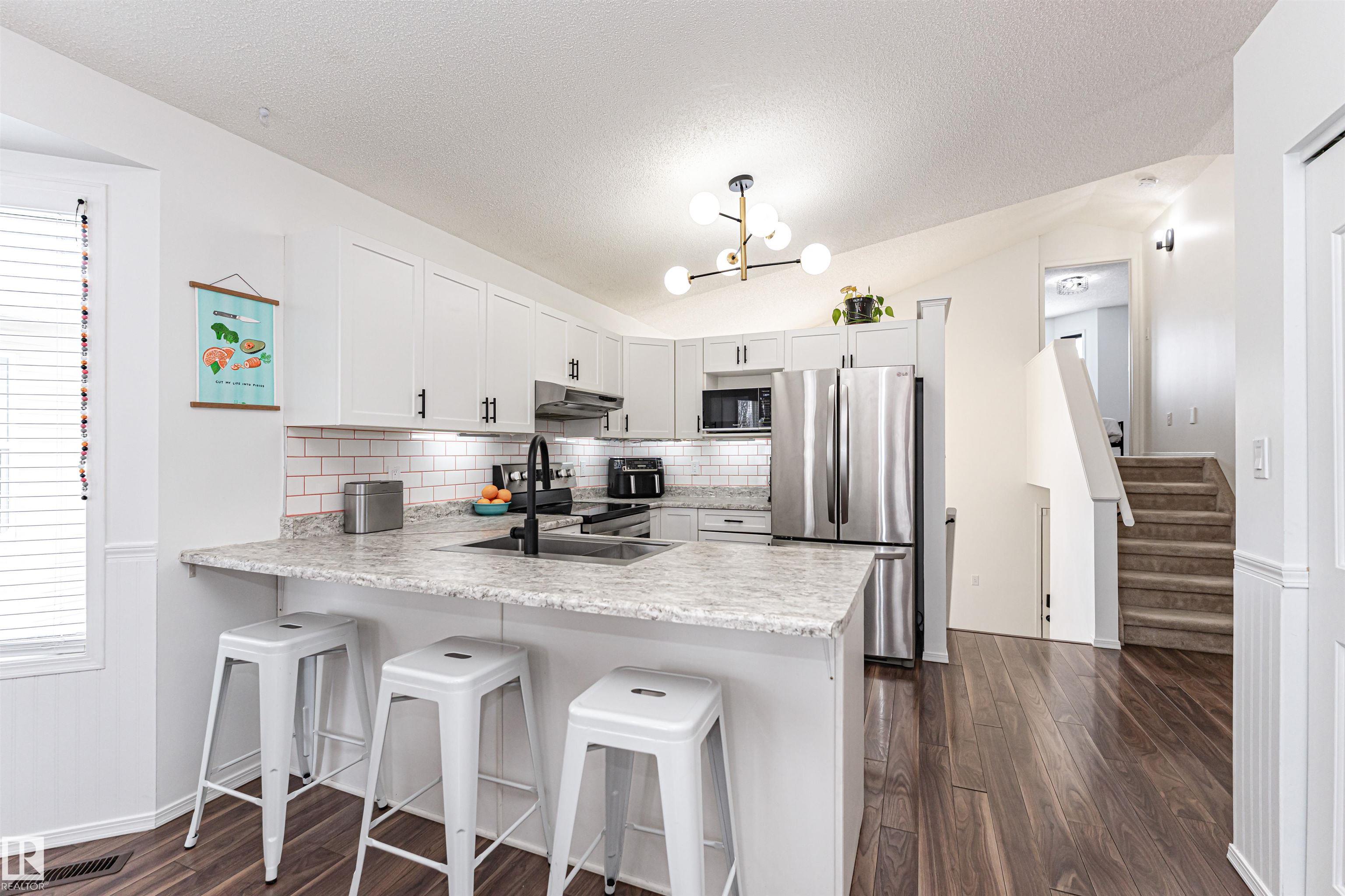 Nestled on a family-friendly crescent in desirable Deer Ridge, this fully air-conditioned 5 bedroom, 3-bath home offers thoughtful design and everyday functionality. The sun-filled living room features vaulted ceilings and a cozy gas fireplace, flowing into the dining area and crisp white kitchen with newer stainless steel appliances, tile backsplash, eat-up counter, under cabinet lighting and ample prep space. New lighting, updated hardware, and stylish accent walls elevate the interior, while refreshed bathrooms add modern appeal. The spacious primary suite has a walk-in closet and 3-piece ensuite. Two good size bedrooms and a full bath complete the main floor. The fully developed basement includes a large family room, two additional bedrooms, a 3-piece bath, laundry, storage, and large windows that flood the lower level with natural light. Relax in the private backyard with a hot tub, refinished deck, and new fence. Newer roof, furnace, HWT and A/C! Welcome home!