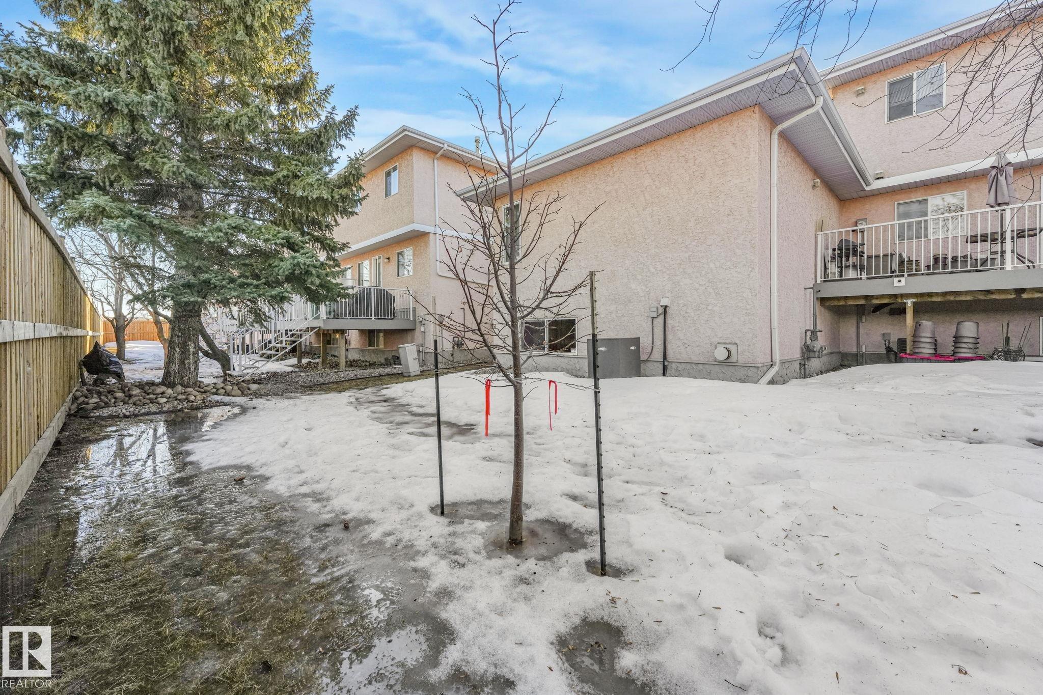 Stylish end-unit condo offering ~2,400 sq ft of versatile living—perfect for young professionals seeking space, comfort, and convenience. The bright living room features a soaring 15-ft vaulted ceiling and gas fireplace, while the large kitchen includes a walk-in pantry, skylight, and plenty of prep space. Enjoy central A/C, pre-wired alarm, two fireplaces, and a private composite deck with BBQ hookup. Upstairs offers two bedrooms, including a spacious primary with walk-in closet and ensuite. The fully finished basement adds a large third bedroom, full bath, and flexible space for a home office or gym. Single garage plus driveway parking. Located in a quiet, well-kept complex of only 38 units with mature landscaping. Steps to shops, medical services, coffee, and future LRT, and minutes to trails, schools, Henday, Whitemud, and major shopping—an ideal blend of lifestyle and location.
