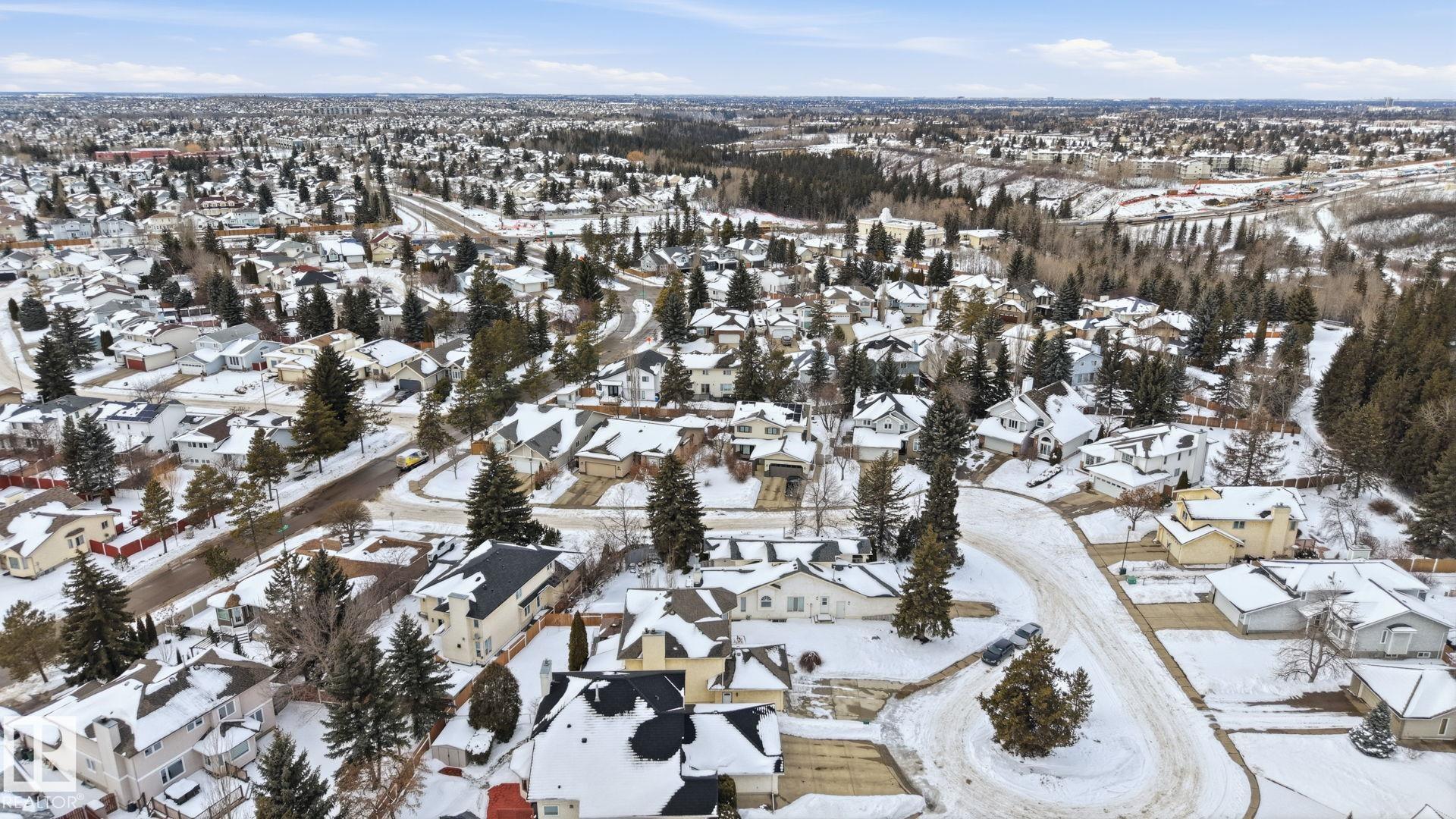 Welcome to this spacious home in sought-after Twin Brooks, located in a quiet CUL-DE-SAC just steps from ravine trails and parks. Great for growing family. Offering 5 bedrooms and 4 baths, this well-maintained home features an open-to-above foyer, bright living & dining areas, a cozy FAMILY ROOM with wood-burning fireplace. The kitchen includes an island, ample cabinetry & a sunny BREAKFAST NOOK plus a relaxing SUNROOM. Upstairs features a spacious master bedroom with ENSUITE & WALK-IN CLOSET, 2 additional bedrooms, bright OFFICE (can be converted into 4th bedroom) & a LAUNDRY CHUTE. The partly finished basement adds 2 bedrooms, full bath, and spacious laundry area with LARGE WASHER/DRYER. Enjoy the low-maintenance yard with COMPOSITE DECK, GAZEBO, and lighting. HEATED OVERSIZED GARAGE is drywalled, painted & has overhead storage. Upgrades: ROOF w/ 45 year warranty (2018), HOT WATER TANK (2024), BOILER (2025), NEWER WINDOWS, DRIVEWAY, and DECK. Easy access to Anthony Henday, amenities, and future LRT.
