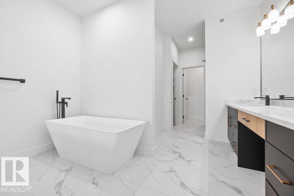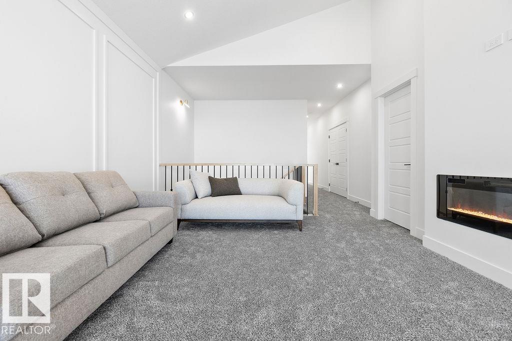 BACKING TO PARK! ALL OPEN TO ABOVE FROM BACK! UNIQUE AND NEW PLAN! Welcome to this stunning custom-built home, situated in the peaceful new community of Goodridge Corners. Set on a 28 POCKET REGULAR lot. Step inside to discover an open-to-below main floor that creates a bright and airy ambiance. The layout has a MAIN FLOOR BED AND BATH ideal for guests or multigenerational living. The modern kitchen boasts extended cabinetry, premium finishes, and a walkthrough spice kitchen for added convenience. The living area is elevated with a stunning feature wall and fireplace, making it the perfect place to gather and unwind.Upstairs, you’ll find three spacious bedrooms, including a luxurious primary suite, two full bathrooms, a bonus room, and a convenient upper-floor laundry. SIDE ENTRANCE to basement is also included. Offering quick access to Anthony Henday Drive, this home combines peaceful living with unbeatable accessibility. Photos are representative