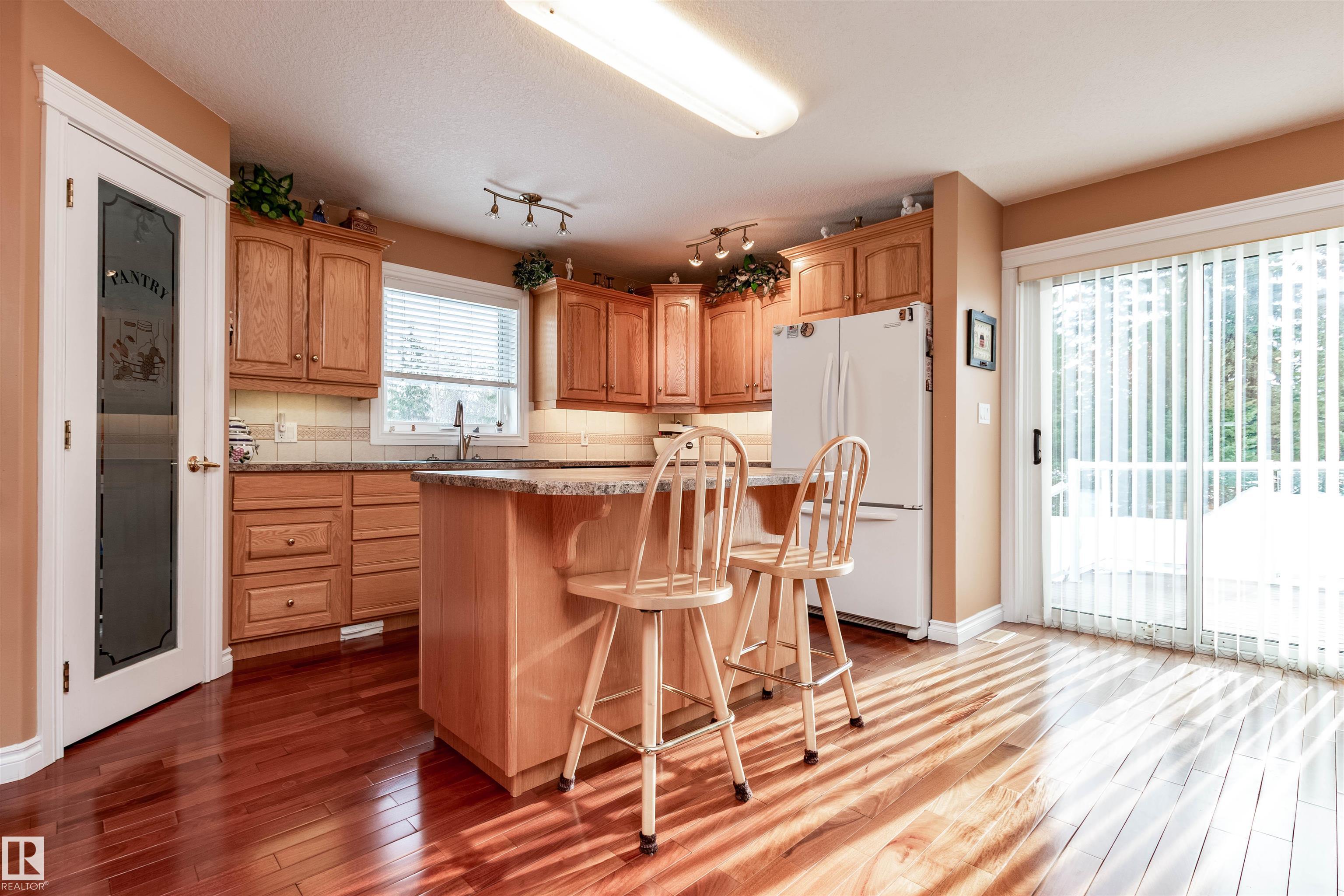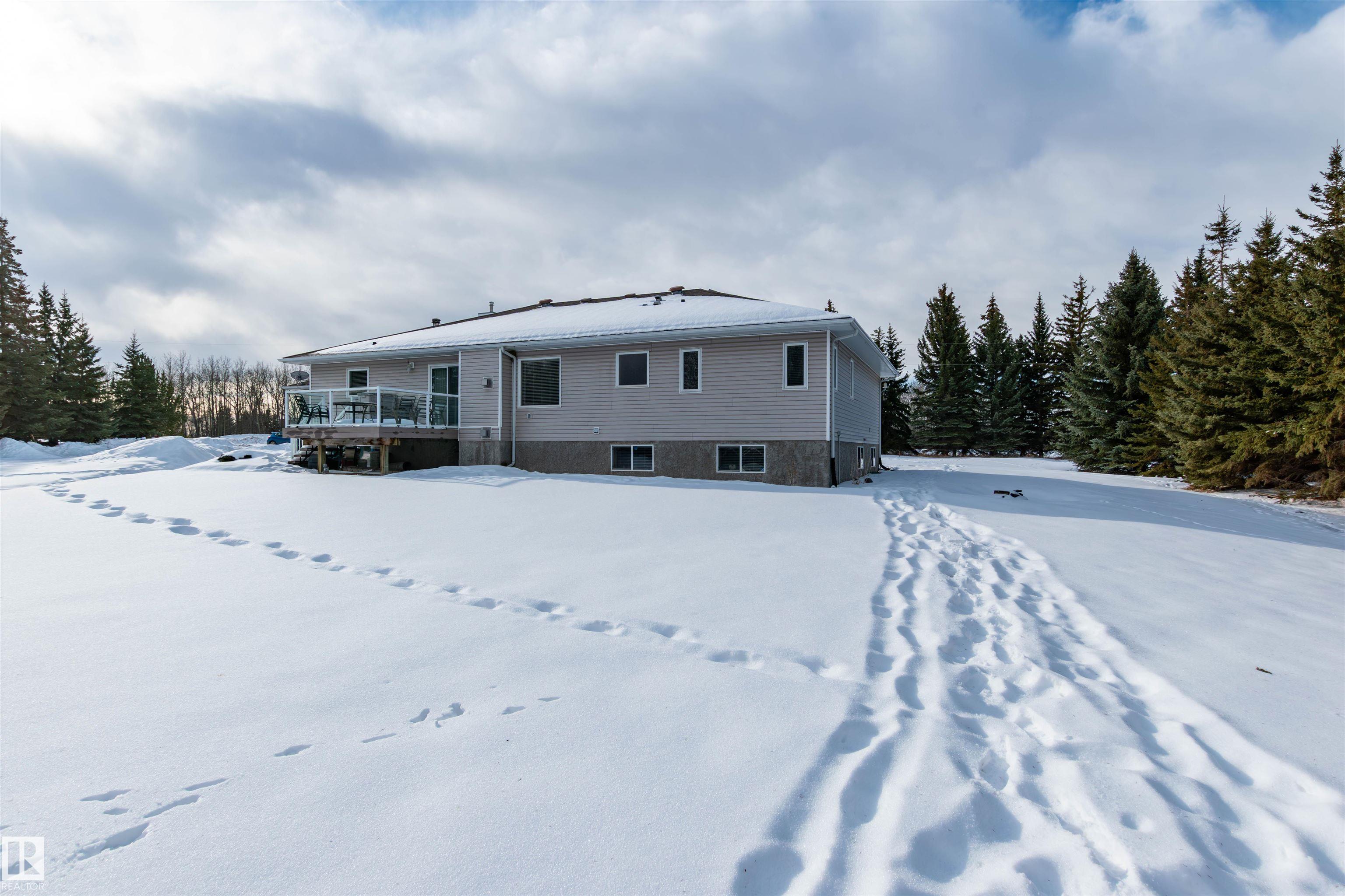 COUNTRY LIVING WITH CITY PERKS! This beautiful custom-built bungalow is bursting with pride of ownership. Nestled on 1.23 acres in a private treed setting and only 2 minutes from Sherwood Park offering city water. Amazing open floor plan and a perfect home for entertaining family & friends. Quality finishings throughout with 2159 Sq Ft plus a FULLY FINISHED basement. Generous entry way, gleaming hardwood floors, and large living room with gas fireplace. Massive eat-in kitchen with large dining area and wood-burning stove. Main floor laundry and back mudroom area. There are 3 bedrooms on the main plus a 4 piece bathroom. The Primary Bedroom has a lovely 4 piece ensuite and walk-in closet. Huge family room in basement, 4th bedroom, 3 piece bathroom, Immaculately maintained home with eco-friendly advancements including solar panels that supply all daytime electricity to the house. TRIPLE ATTACHED GARAGE! Lovely deck and a massive backyard to enjoy! Visit REALTOR® website for more information.