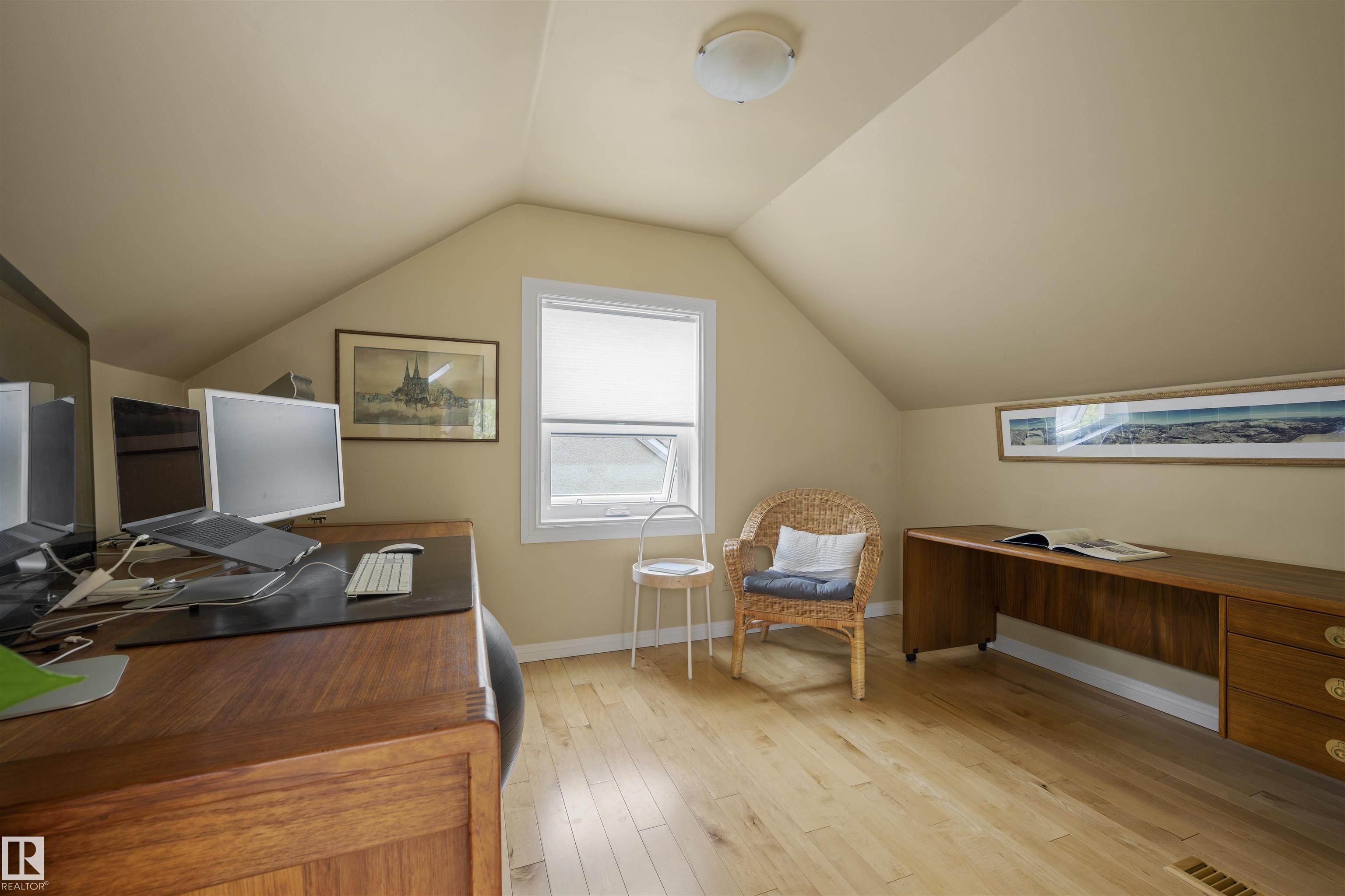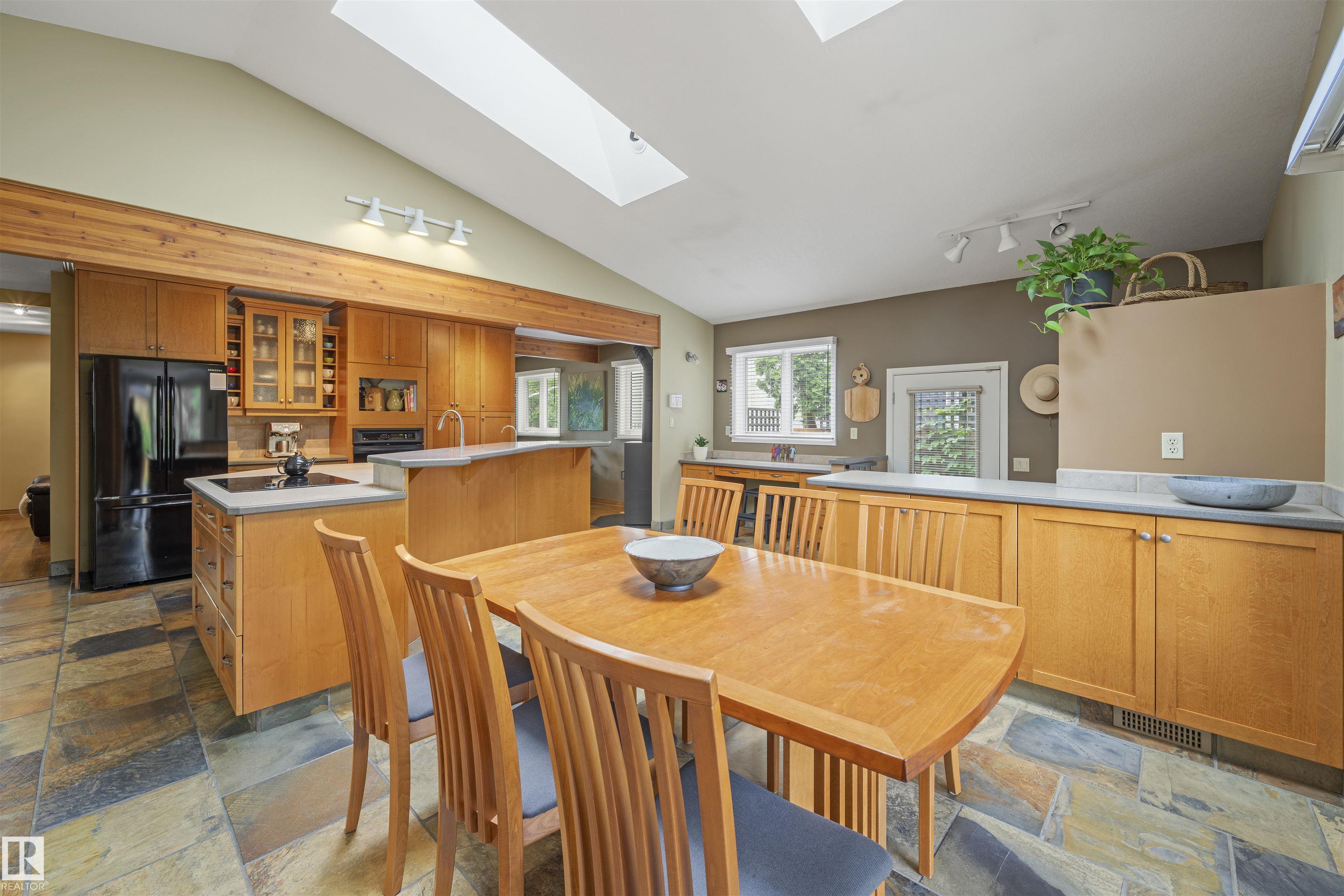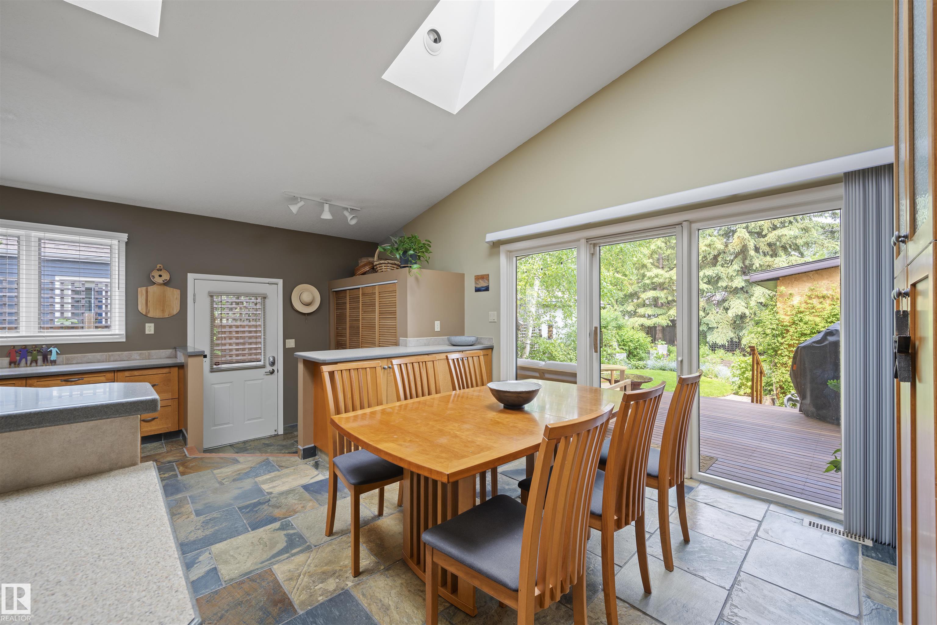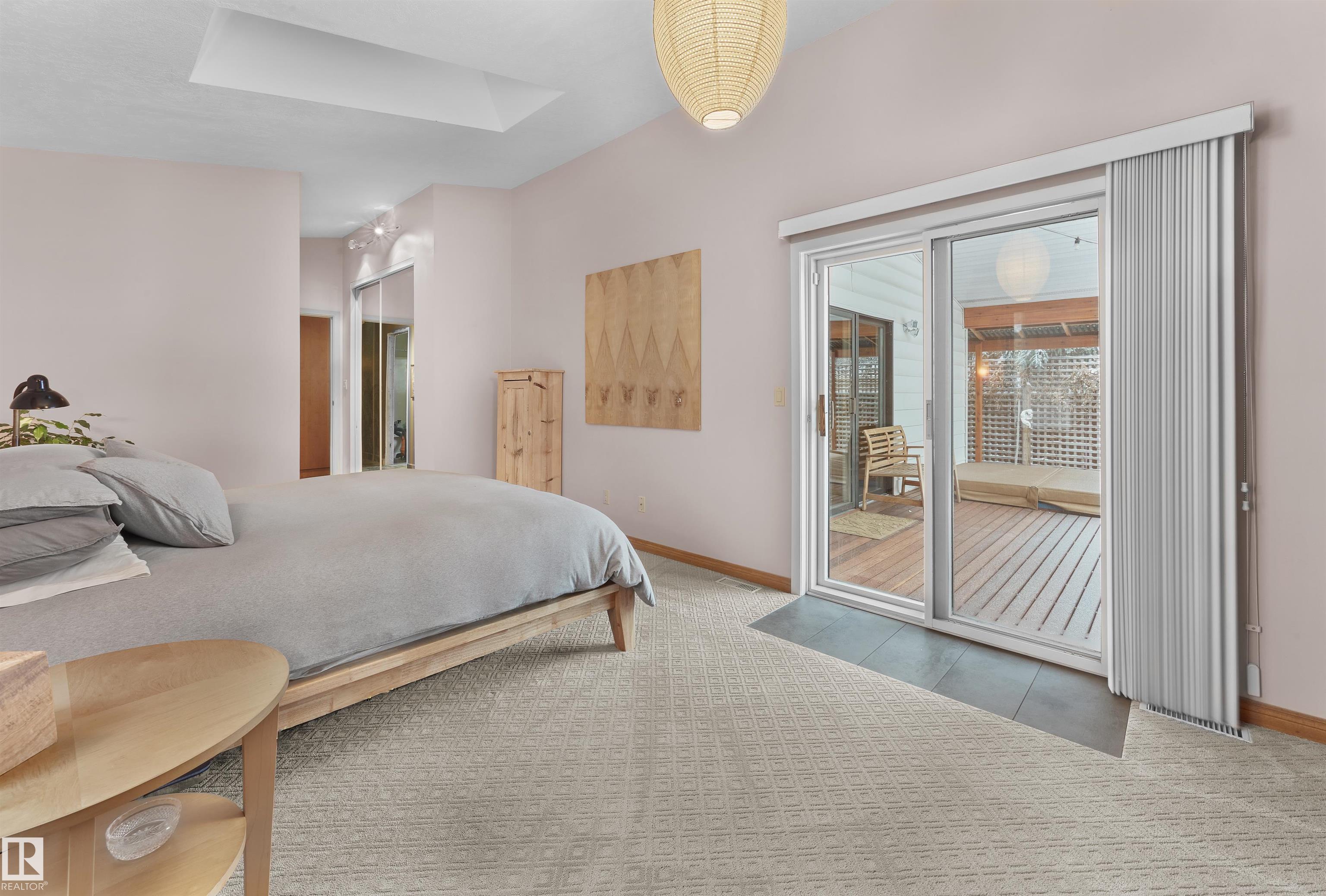 In the heart of Belgravia, this beautifully renovated 3-bedroom + den, 4-bath home opens into light and flow from one room to the next. The kitchen is a showpiece: large island, skylights, custom built-ins, and patio doors opening to a backyard oasis. Step from the kitchen, or the elegant primary suite, onto a covered hardwood deck with a hot tub, encircled by trees for privacy. Oak and slate floors, fireplaces, and refined finishes throughout create warmth and sophistication. The developed basement adds extra living space. Key mechanical upgrades, including furnace, central vacuum and water conditioning system, provide peace of mind. The rooftop solar system minimizes your electric bills. Wild meadow landscaping is designed for low maintenance and low water usage. In a fantastic location, this is a tranquil, upscale retreat in one of Edmonton’s most coveted communities, complete with wonderful neighbours.