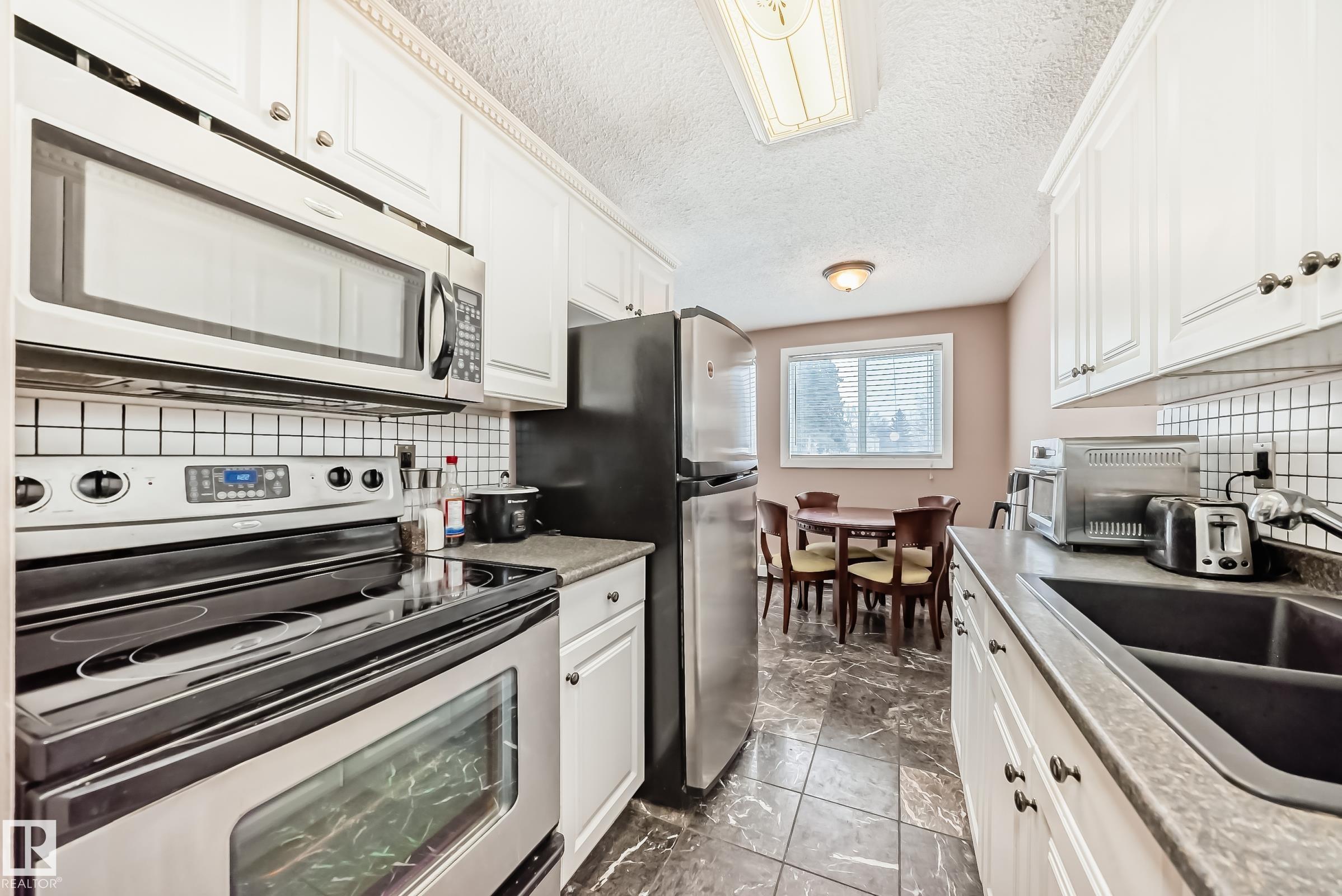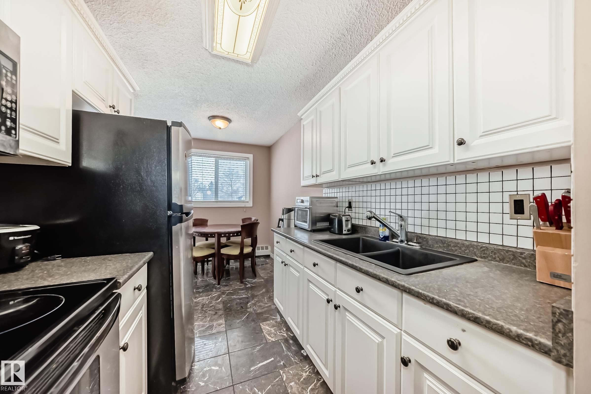 BEST LOCATION IN THE COMPLEX!! An 18+ building with condo fees that cover ALL Utilities. This spacious 2 bed room S.E.-facing corner unit gives you morning sun, park views, and a parking stall. This spacious ground-floor unit has been recently upgraded to complement the kitchen, hallway, and bathroom marble flooring, with vinyl plank in the bedrooms and living room, and fresh paint throughout. The living room sliding glass patio doors provide access to greenspace and a communal garden. Ample storage and large bedrooms round out this above-average unit. Plaza 2000 is located between retail and services to the north and Caernarvon Park to the south. It is also conveniently located near shopping, the YMCA, and the future LRT expansion. A must-see for buyers looking for a 2 bed room Northside condo.