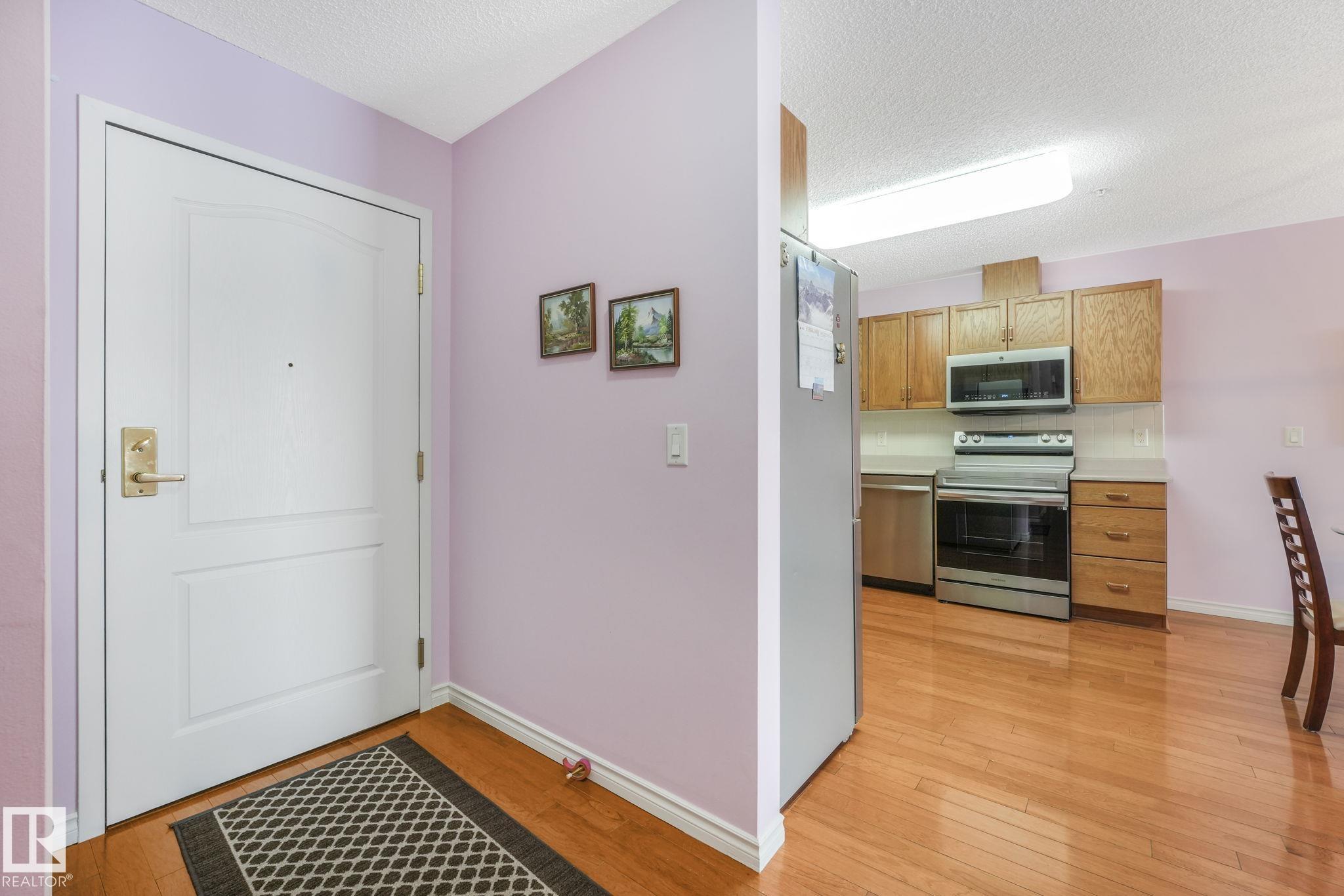 REMARKABLE 55+! In the heart of Town Centre - convenient to everything and remarkably upgraded from hardwood throughout to recently upgraded Stainless Steel appliances. Enjoy the open living area complemented by a huge south-facing balcony overlooking the central community garden and meeting place. The Primary Suite is huge with walk-in closet and a recent BathFitters completely upgraded shower in the spacious ensuite. Just move in - furnishings can be included. And it is spotless! Friendly people, lots of facilities (Social Room, Theatre, exercise room, games room, soft-seating areas for chats, a quality slate pool table, huge and growing library) and 3 elevators. Access to an on-site restaurant. Underground parking, car wash, storage cage ... A must to see!