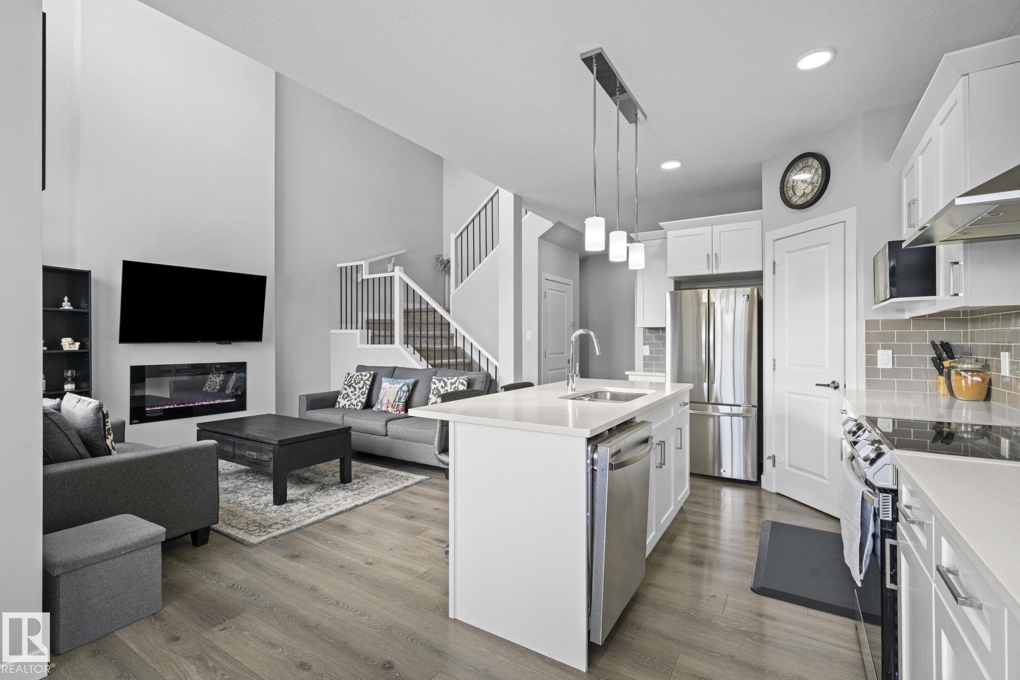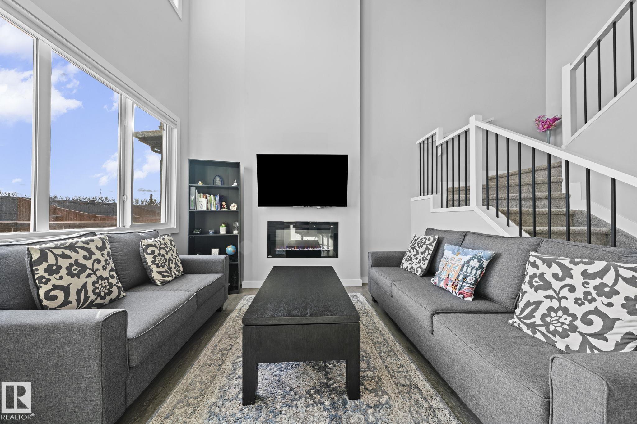 Welcome to 22035 80 Ave NW in the vibrant community of Rosenthal! This stunning north-facing home with double attached garage offers a bright open-to-below living room that fills the space with natural light. The main floor features a modern kitchen with dining area, spacious mudroom, versatile den, and convenient half bath—perfect for family living and entertaining. Upstairs you’ll find 3 generous bedrooms, 2 full bathrooms, a cozy bonus room, and upper-level laundry for ultimate convenience. The fully finished basement with separate entrance includes a second kitchen, living room, bedroom, den, and its own laundry. Enjoy no neighbours at the back for added privacy, plus parks, trails, schools, shopping, Costco, Lewis Estates Golf Course, and minutes to River Cree Resort & Casino. Quick access to Anthony Henday makes commuting effortless. A rare blend of space, privacy, and unbeatable west-end lifestyle!