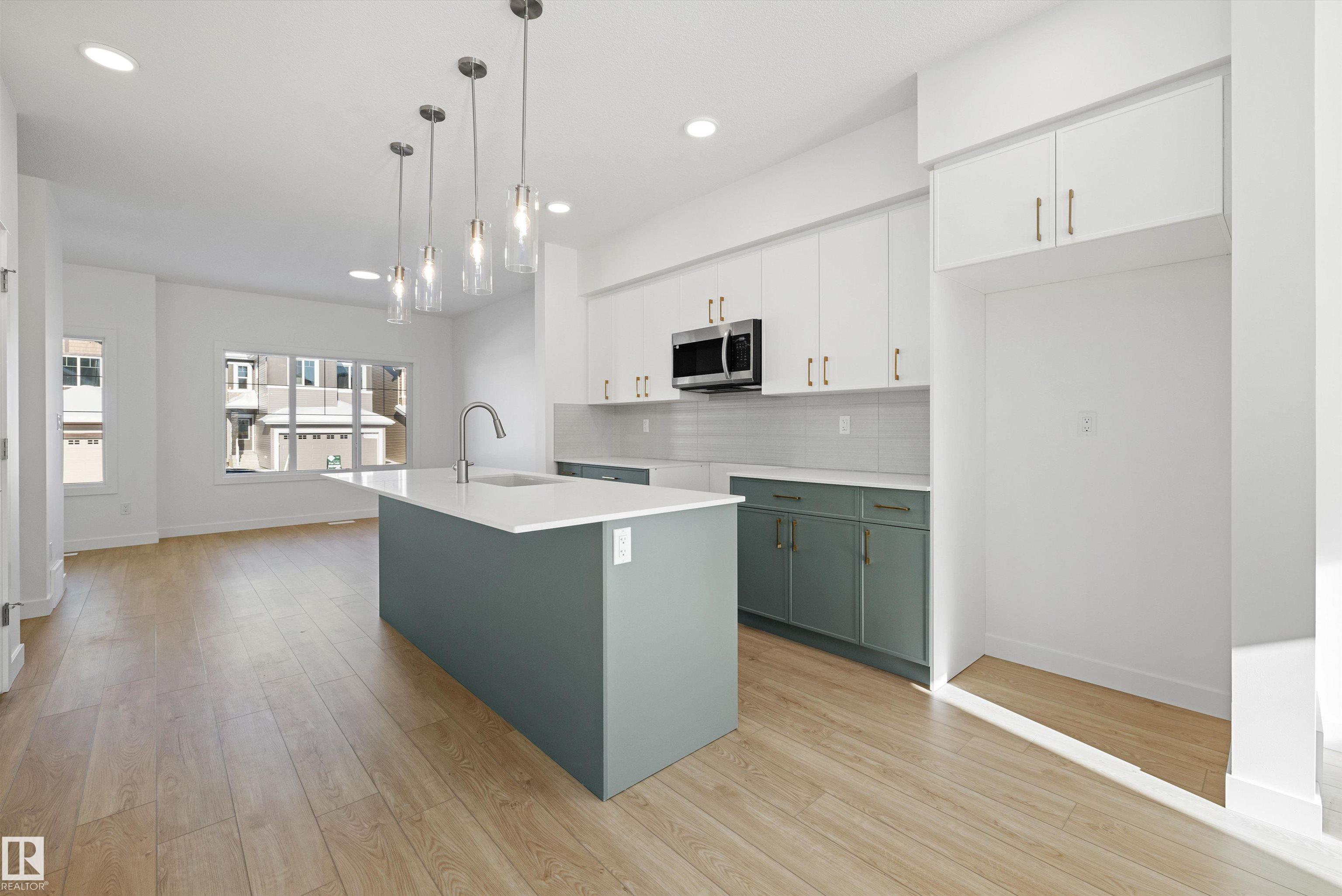 Experience the perfect blend of style and versatility in this charming Sterling Homes laned residence, located in the quiet community of Edgemont Place. The main floor feels exceptionally airy with 9’ ceilings, triple-pane windows, and a sun-drenched front living room. Designed for multi-generational living or remote work, this level features a rare main-floor bedroom and full bathroom, offering a private space for guests or a home office. At the heart of the home, the kitchen shines with quartz countertops, a central island, and upgraded cabinetry overlooking the yard. The upper level serves as a peaceful retreat, headlined by a primary suite with a walk-in closet and private ensuite. Two additional bedrooms, a full bath, and convenient upper-floor laundry ensure an organized daily routine. Finished with luxury vinyl plank flooring and a separate side entrance, this home also includes a large backyard with a parking pad and basement rough-ins for future growth.