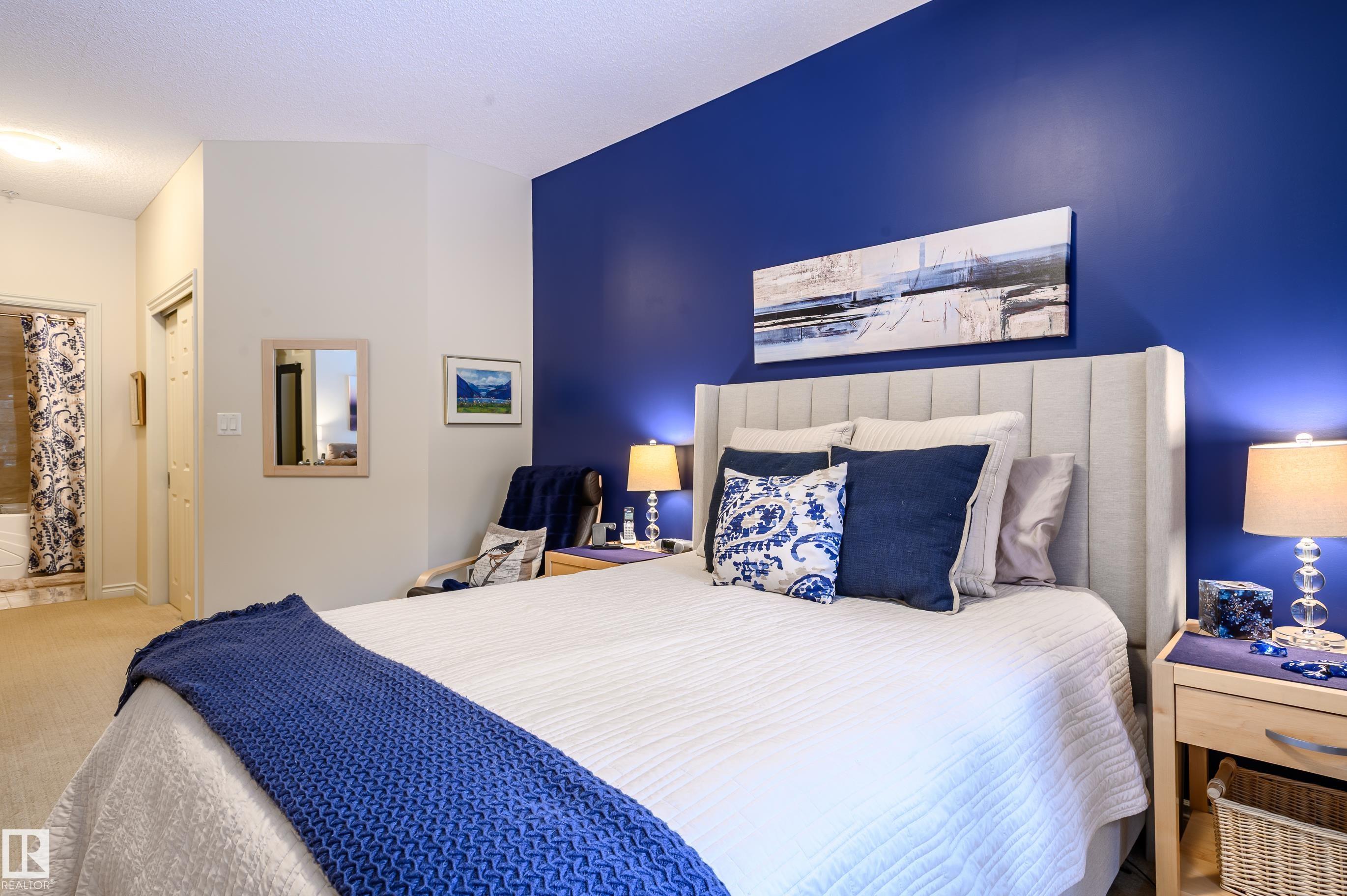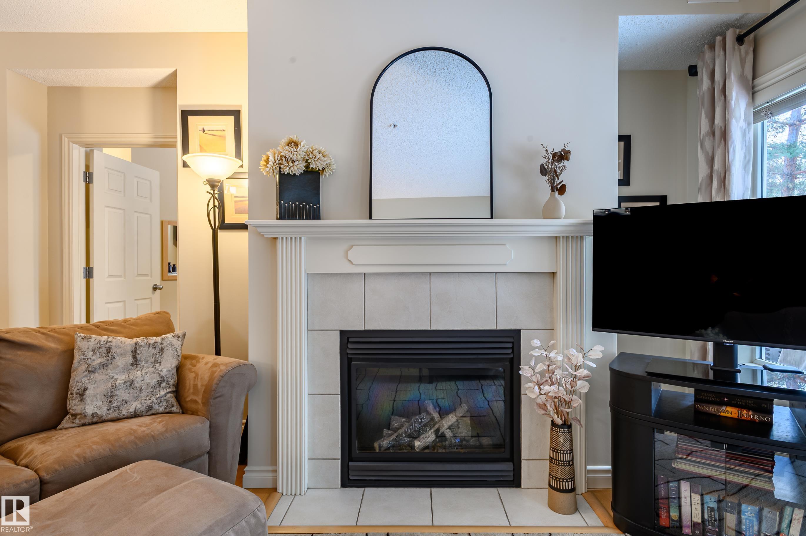 Welcome to this ground-floor, 2 bedroom, 2 bathroom condo, meticulously maintained by the original owner. Offering direct access to an expansive 18' x 10' patio backing onto a treelined green space, this well-managed building presents an excellent opportunity for low-maintenance living. The open-concept layout features large windows that provide abundant natural light throughout the freshly painted living and dining areas. The spacious kitchen includes updated appliances, ample cabinetry, and generous counter space. The unit offers two well-sized bedrooms, including a primary suite with two closets and a renovated four-piece ensuite. Additional highlights include in-suite laundry, air conditioning, a gas fireplace, a BBQ gas line, and one titled heated parking stall with storage. Ideally located just steps from river valley trails and Botanic Park, this centrally situated property combines comfort, convenience, and access to outdoor amenities.