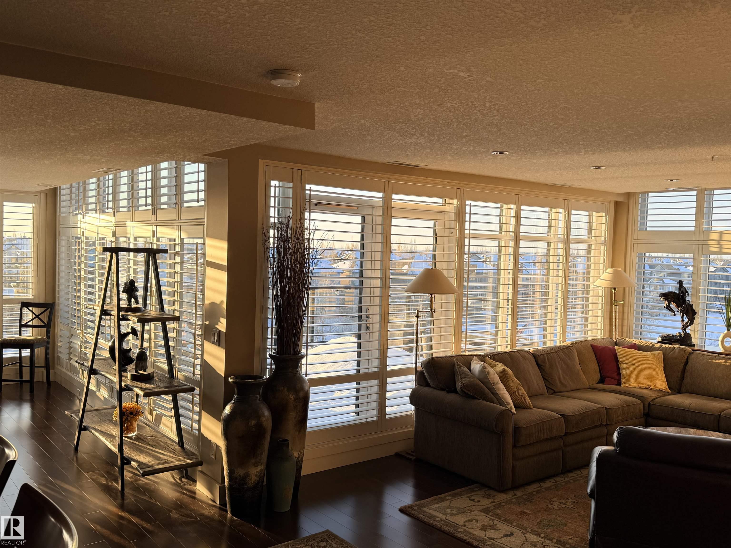 Welcome to the top-floor corner unit offering incredible natural light & beautiful pond views. Open-concept layout features spacious kitchen w/upgraded cabinetry, granite countertops, upgraded appliances, pantry, and a large custom island. Between the kitchen & living room you’ll find a built-in desk with cabinetry, ideal for a home office. Living room showcases hardwood flooring, custom cabinetry & stone feature wall, & a wall of windows that fill the space with sunlight. Step onto your private balcony overlooking the pond. Large dining area, surrounded by windows on two sides, offers a bright space with scenic views. Primary bedroom features carpet, large window, & walk-through closet w/custom cabinetry leading to 5-pc ensuite w/spacious custom corner shower. Bedroom two is generously sized & located next to 4-pc main bathroom. Well-maintained, immaculate unit is in the beautiful Windermere community, with all amenities minutes away. Titled two parking stalls & storage room w/fridge & shelves included.