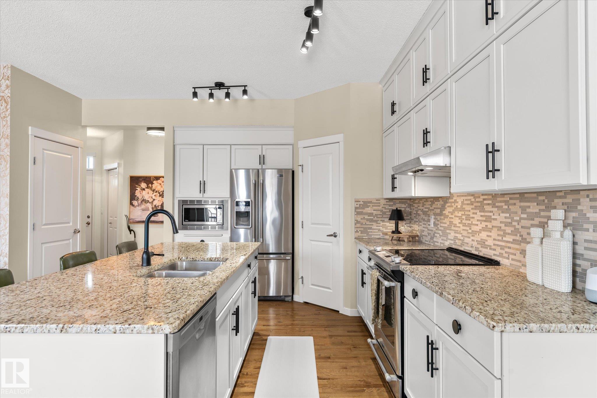Welcome to this stunning former showhome by Morrison Homes that still shows like new! This beautifully maintained home offers 3 bedrooms, 2.5 bathrooms, and a spacious upstairs bonus room offering families flexibility. The open-concept main floor features hardwood flooring and a stunning kitchen with granite countertops, full-height cabinetry, stainless steel appliances, a convenient walk-through pantry, and powder room. The large island with seating overlooks the dining and living areas, anchored by a cozy gas fireplace ideal for entertaining. Upstairs, the primary suite offers a private spa-inspired ensuite and ample closet space, along with two additional bedrooms, a full bathroom, and convenient upper-floor laundry. The garage and driveway easily accommodate two vehicles, and the impeccable landscaping enhances the home’s exceptional curb appeal. Showhome quality, thoughtful design, and pride of ownership are evident throughout. Move-in ready and sure to impress, don't miss out!
