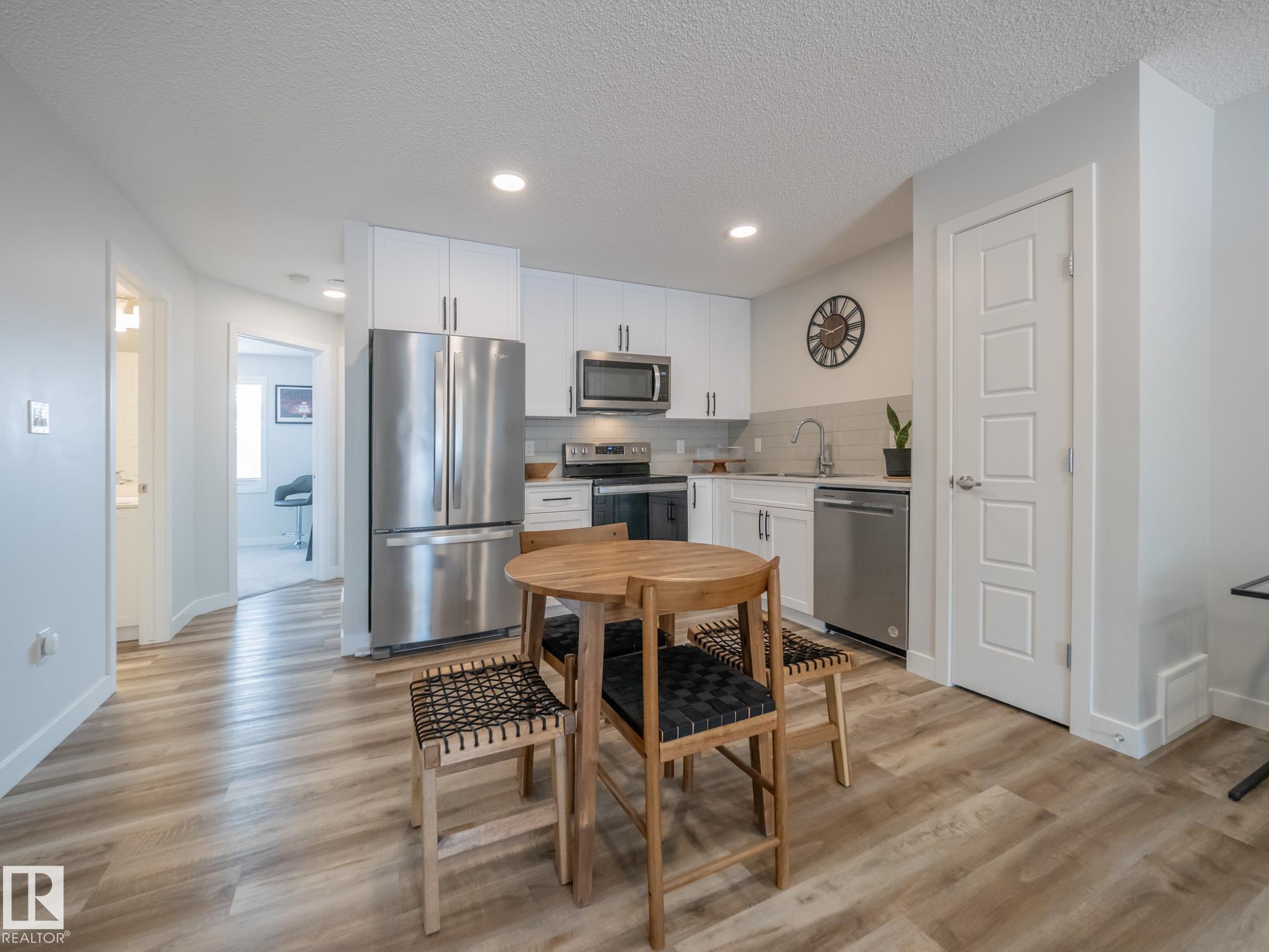 Welcome to this stylish single-level townhome in the vibrant community of Chappelle. Thoughtfully designed with an open-concept layout, the home offers a warm and inviting living room centered around a cozy fireplace, creating the perfect place to relax. The dining area flows seamlessly into the modern kitchen featuring stainless steel appliances, quartz countertops, tile backsplash, ceiling-height cabinetry, and a pantry for extra storage. Two comfortable bedrooms, a bright 4-piece main bath, and a convenient laundry area complete the well-designed layout. A double attached garage provides both parking and additional storage. Enjoy access to the Chappelle Gardens Residents Association, offering incredible amenities including indoor and outdoor gathering spaces, picnic areas, community garden plots, sports courts, skating rink, playgrounds, games room, and more—bringing neighbours together and making this community truly feel like home.