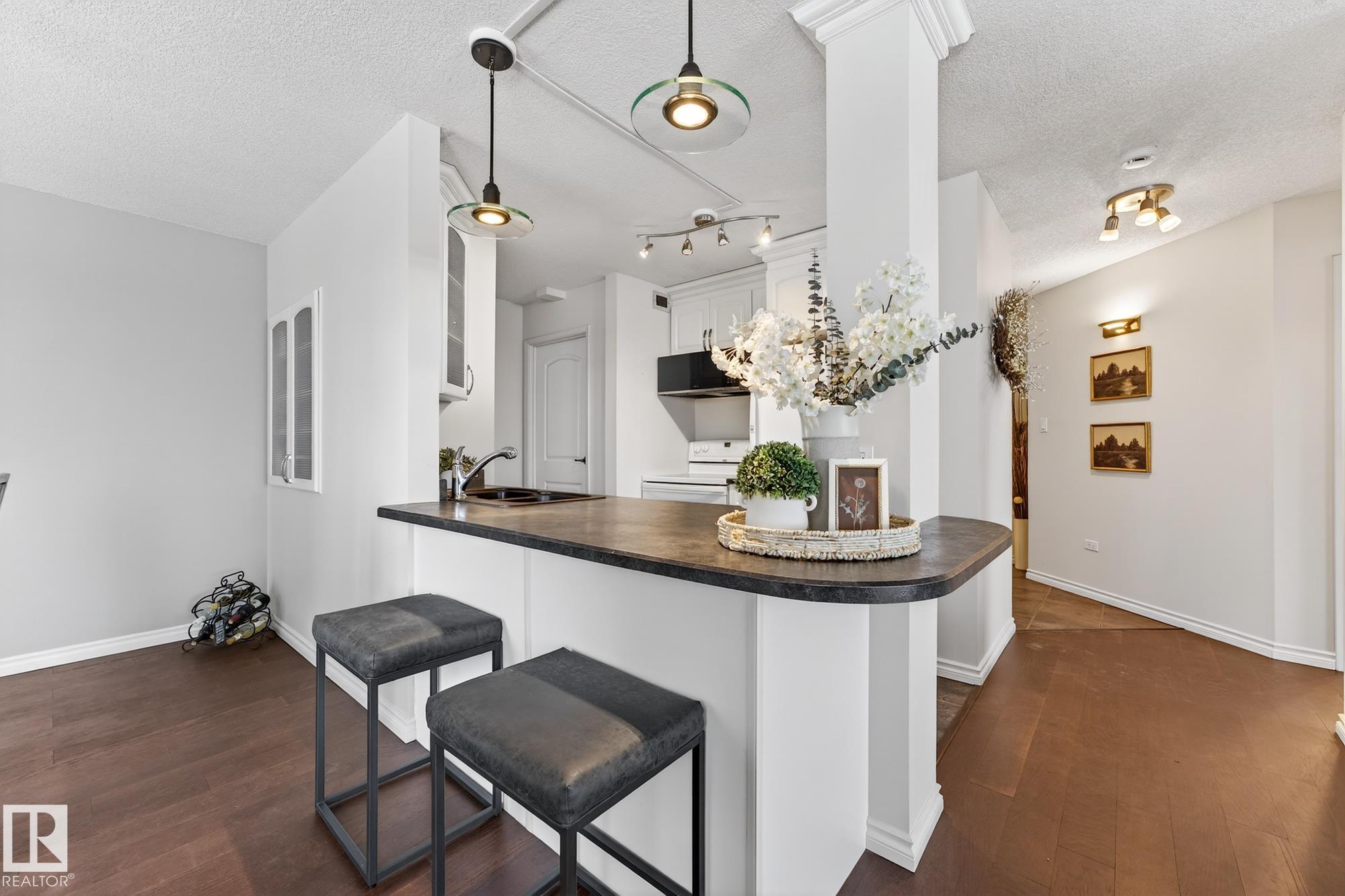 Some condos have a view. This one has a RIVER VALLEY PANORAMA that wraps around you on 3 sides - the backdrop for every morning coffee, every evening wind down, and every quiet moment in between. Welcome to The Gainsborough on Jasper Ave: a thoughtfully updated 1 bed / 1 bath residence inside one of downtown Edmonton's most elegantly re-imagined buildings with MILLION DOLLAR VIEWS. The kitchen delivers with OPEN CONCEPT, NEW MICROWAVE, NEW DISHWASHER, and thoughtful pantry storage. FREE laundry on the same floor, only shared with 3 other units! Experience a sense of occasion every time you walk through the lobby – intricate detail, elegant finishes, and a social room & fitness centre that feel more boutique hotel than condo building. The BBQ area and grassy knoll perch above the river valley for a 2nd sunset view. UNDERGROUND PARKING. Grocery & transit steps away. In fact, bring a food bank donation to your showing & we'll match it! The view brings you here. But the building? It makes you want to stay.