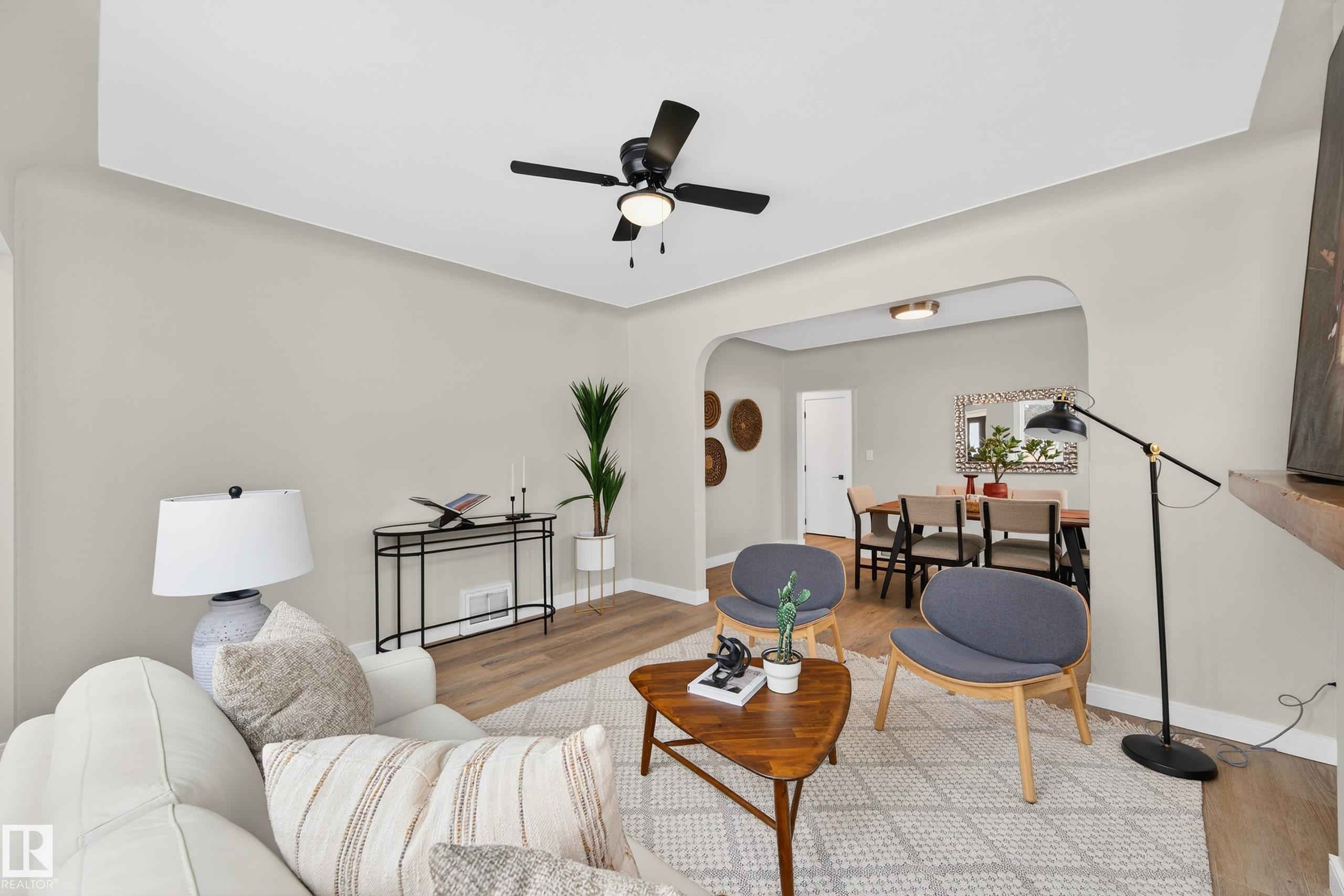Beautifully renovated bungalow in Bellevue, perfectly positioned near the Highlands district and River Valley. This move-in ready home offers 3 bedrooms, 2 bathrooms, and 941 sqft above grade plus a fully finished basement with separate entrance and excellent suite potential. The main floor features large windows that fill the home with natural light, new vinyl plank flooring, a bright modern kitchen, dedicated dining area, and a cozy electric fireplace in the living room. Two bedrooms and an updated bathroom complete the main level, with patio doors from the second bedroom leading to the west-facing backyard - perfect for a home office or flex space. The basement includes a living room, bedroom, full bathroom, and a small office or yoga room. Major upgrades include windows, electrical, furnace (2021), hot water tank (2020), and shingles (2015). Located just minutes from the River Valley, Ada Boulevard, Highlands Golf Club, Concordia University, parks, cafés, and downtown.