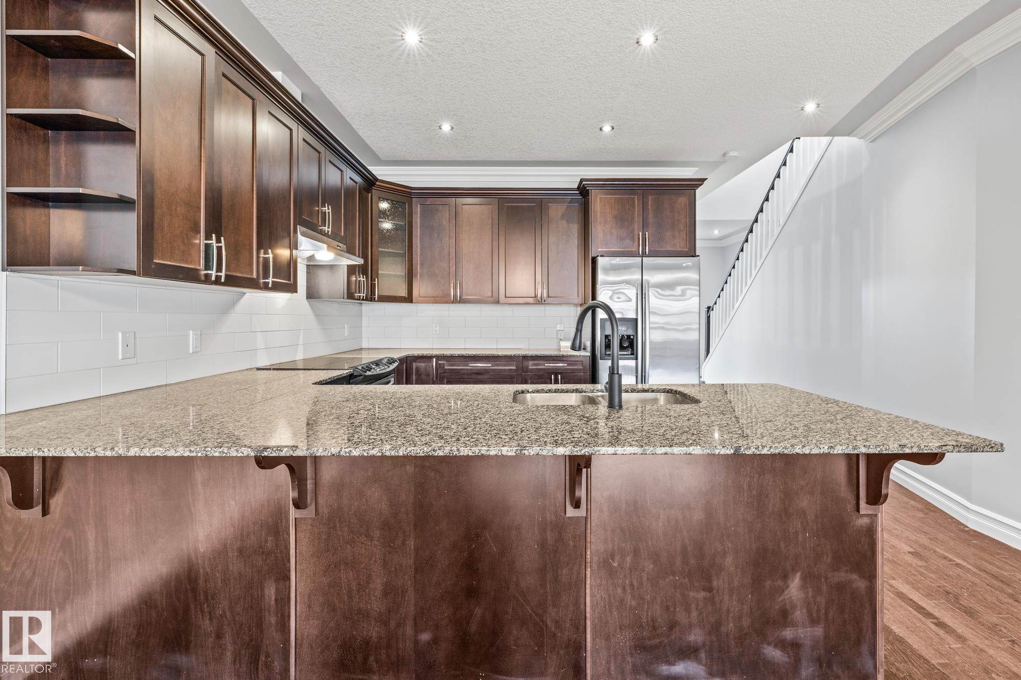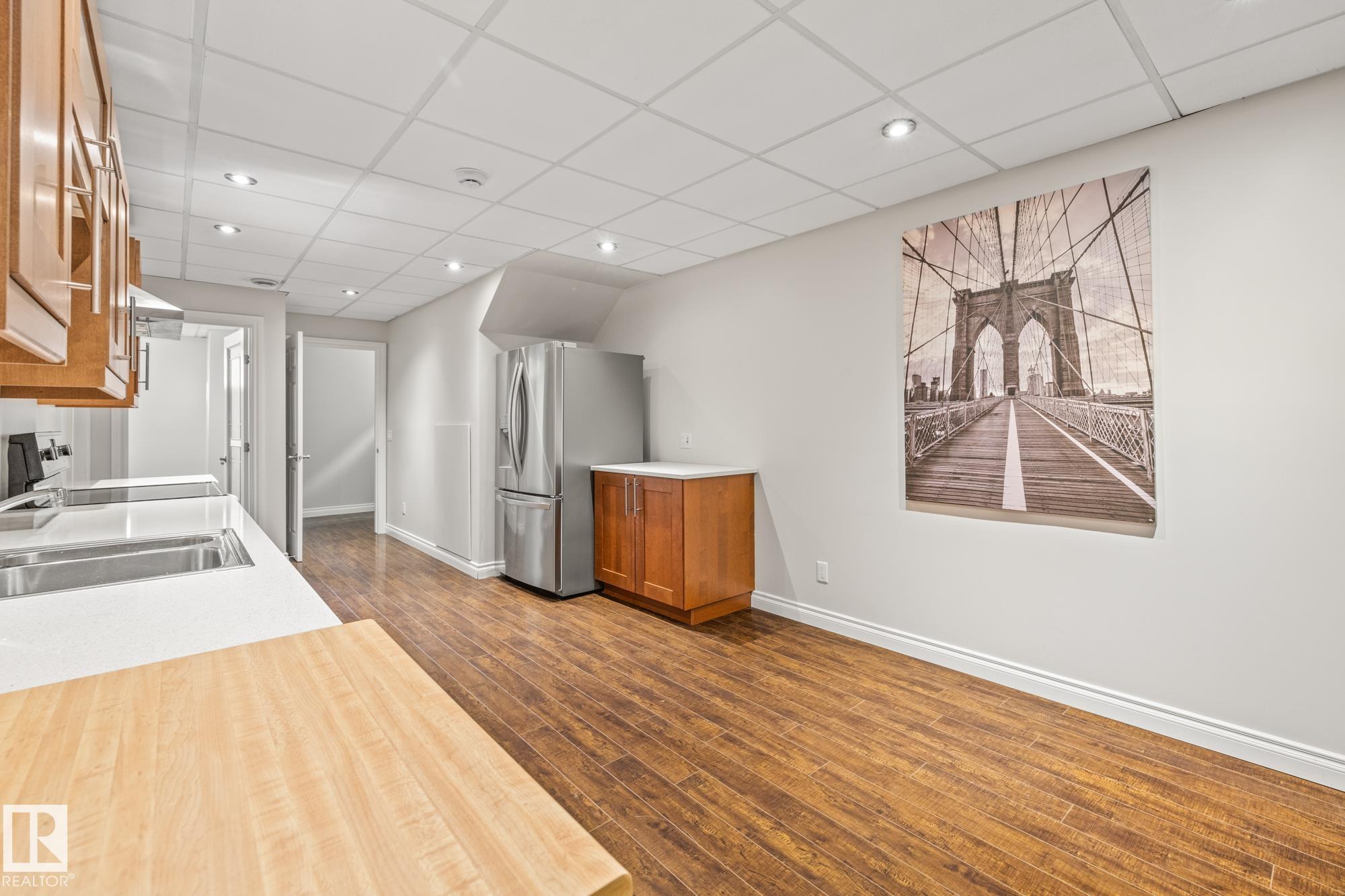 Spacious, well maintained, half duplex with 2 bedroom basement with separate kitchen, laundry and side entrance in the heart of Queen Alexandra! Walking distance to schools, parks, Whyte Ave and UofA! 2100 square feet above ground with 9’ ceilings and Hardwood on main floor, plus main floor office/den. Other perks include a large open concept kitchen/dining and living room with a gas fireplace and oversized east facing windows. Upstairs you'll find a large primary bedroom with a 4 piece ensuite, and a walk-in closet, plus 2 additional bedrooms, 4 piece bath with soaker tub and laundry room! This well maintained home has new carpets and paint throughout, central A/C and a high efficiency furnace, complimented by quality Hardy Board siding! The East facing backyard offers a 200 square foot deck, mature trees, a well built fence and plenty of private yard space with a paved walkway to the Double car garage. This is a turn key home, close to amenities in a fantastic neighborhood!