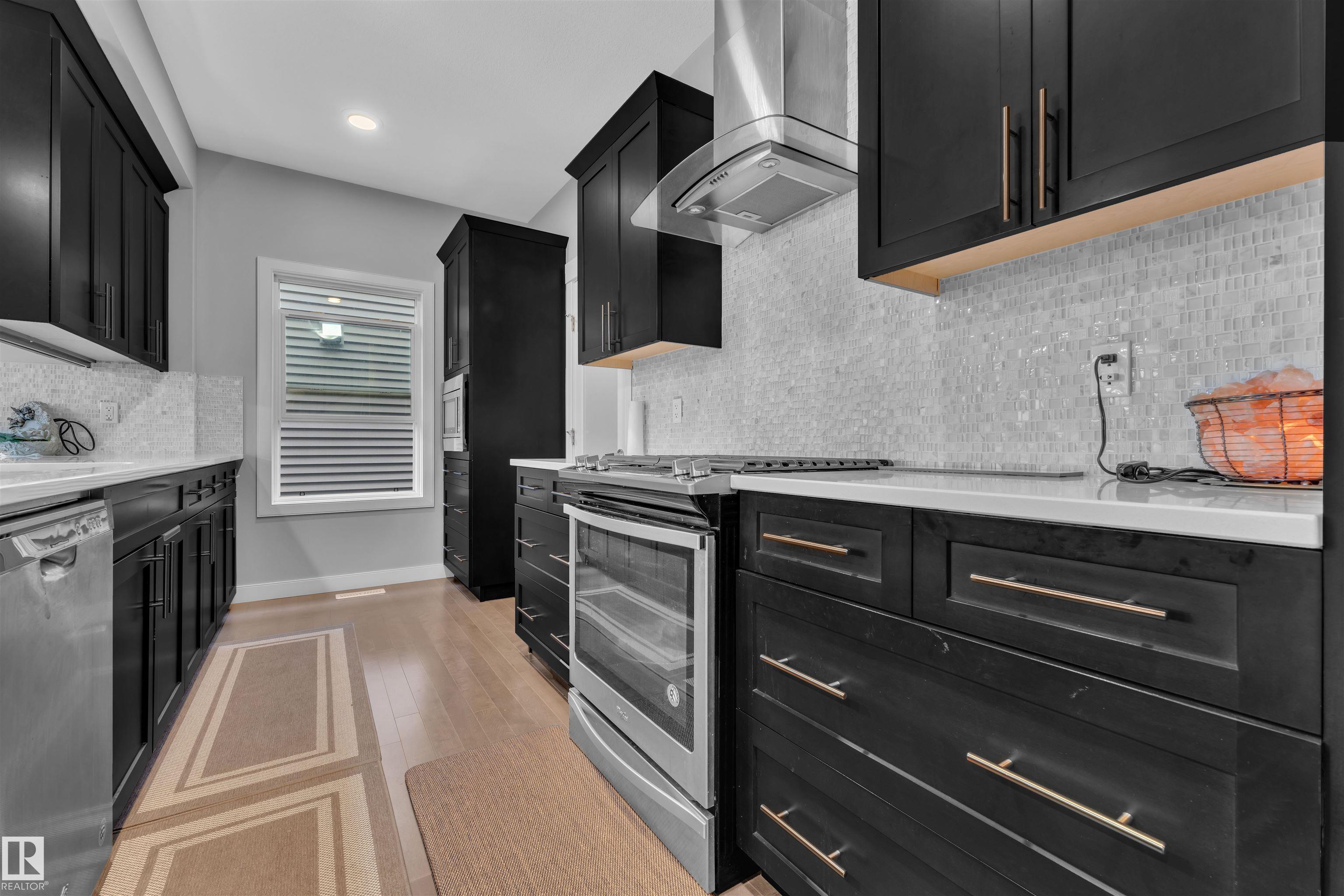 Welcome to this beautifully upgraded home in the sought-after community of Charlesworth, built by Dolce Vita. This move-in-ready property offers the quality valuable upgrades already completed, including fully landscaped yard, fencing, window coverings, premium appliances, and a good-sized deck—perfect for BBQs and outdoor entertaining. The main floor features a chef-inspired kitchen with a large peninsula, gas range, built-in microwave, and ample storage, along with a walk-through pantry and convenient mudroom. Enjoy a formal dining area and a cozy living room with a stylish fireplace—ideal for everyday living and entertaining. Upstairs offers four spacious bedrooms plus huge bonus room, including a luxurious primary suite with a spa-like 5-piece ensuite featuring a soaker tub, large shower, and a unique two-sided fireplace. Completing the home is a fully finished 2-bedroom legal basement suite, providing excellent rental income potential or multi-generational living.