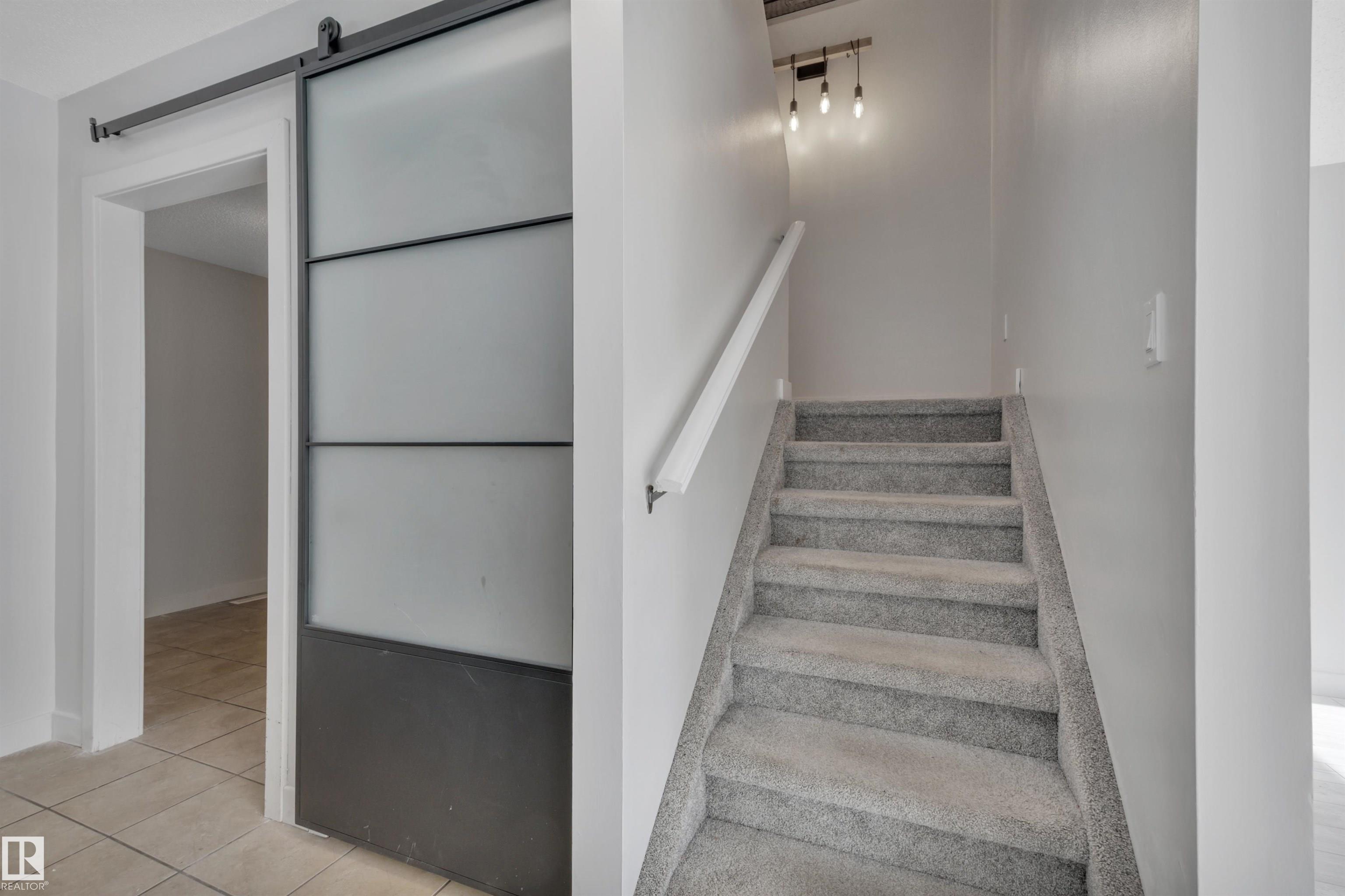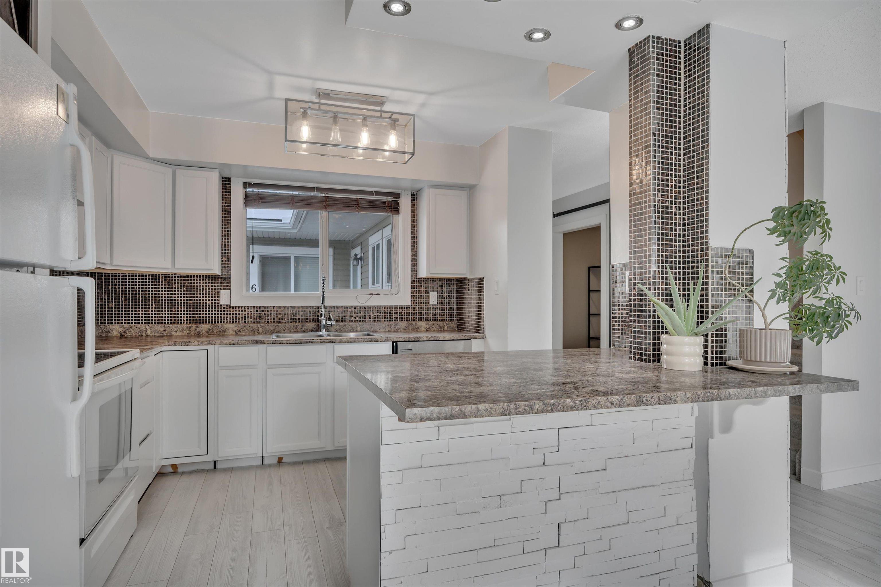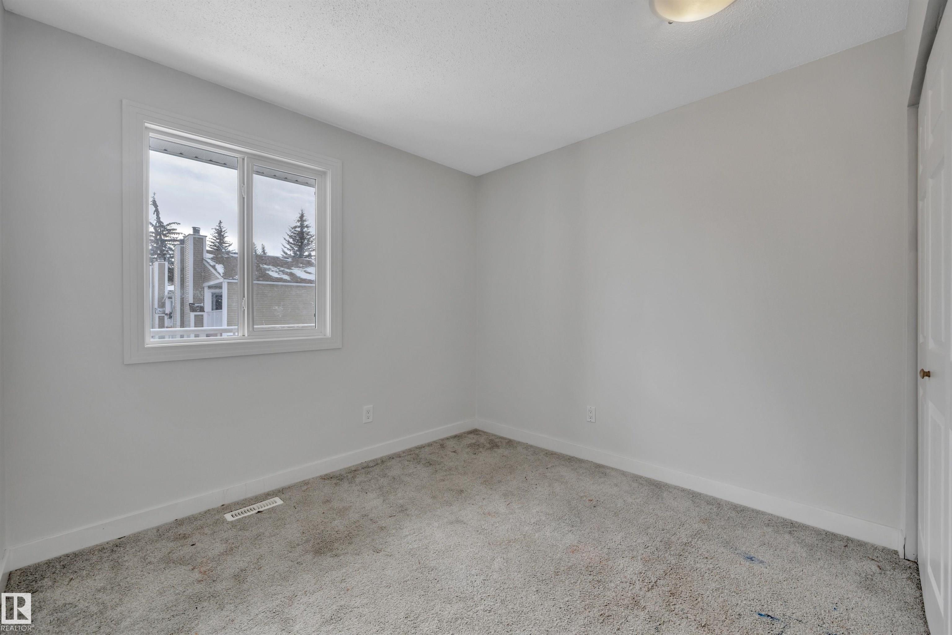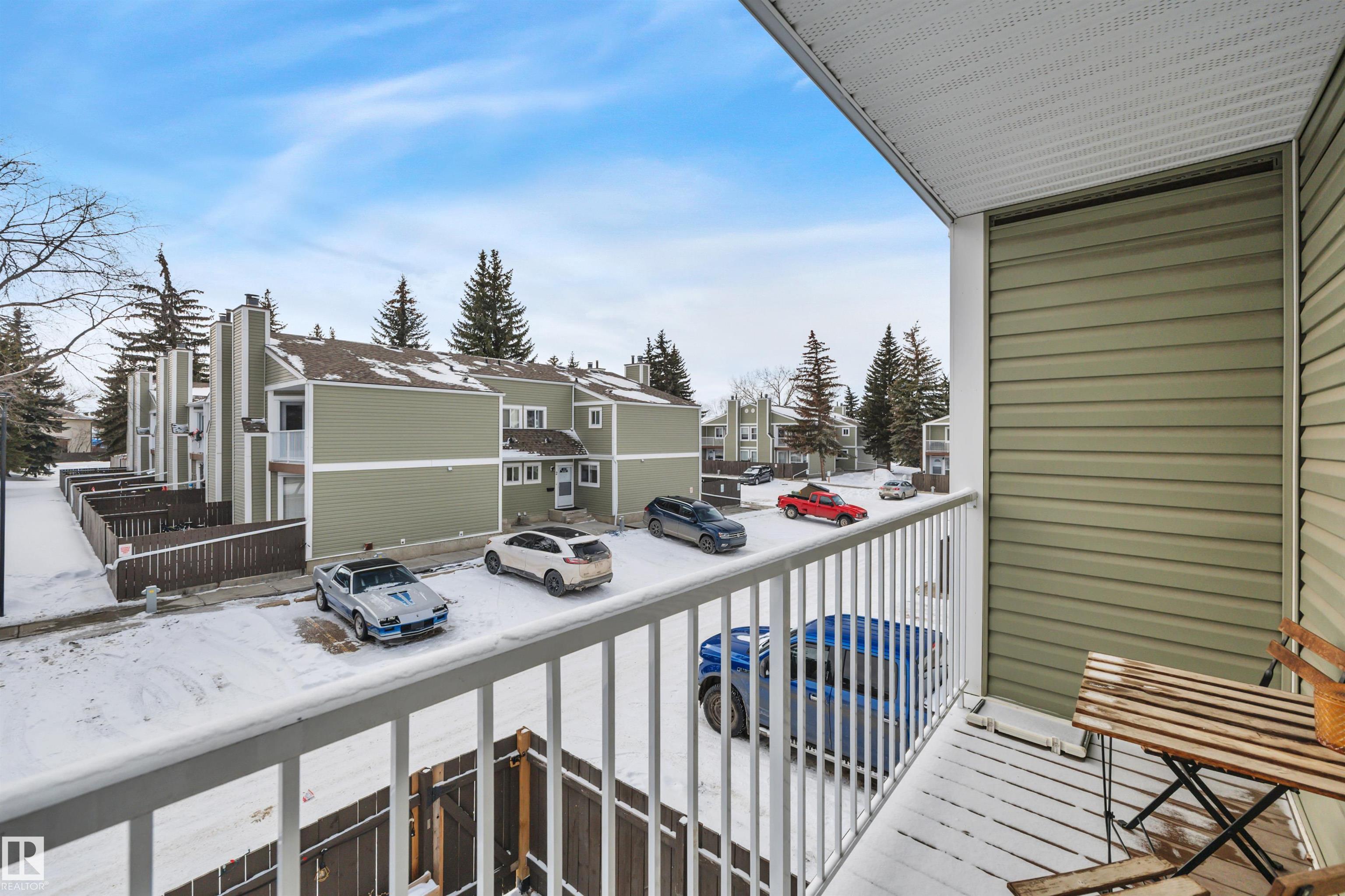 Step into this bright, open-concept townhouse designed for modern living! The main floor features a half bath, a versatile flex room with a stylish sliding door, perfect for a private home office. You’ll love the seamless flow where a kitchen wall was removed to create a sleek breakfast bar, ideal for entertaining. The spacious living room, complete with a cozy fireplace. Head upstairs to three bedrooms and a full bath. Retreat to the primary suite, which boasts its own private deck for morning coffee. The partially finished basement offers a den, laundry, and ample storage. Outside, enjoy a private fenced yard and two powered parking stalls. With newer siding, windows, doors, and concrete, the heavy lifting is done! Bring your creative vision to build instant equity with personal touches. Unbeatable location directly behind two schools and Meyokumin Park which has skating rink & ball diamonds. Walk to groceries, transit, and the mall. Fantastic opportunity for downsizing, investors, first-time buyers!