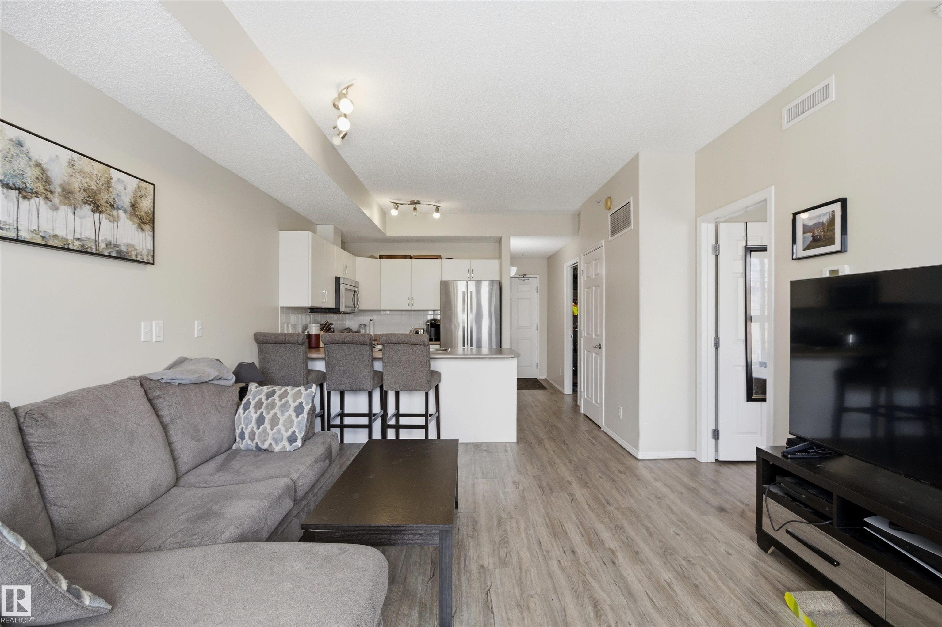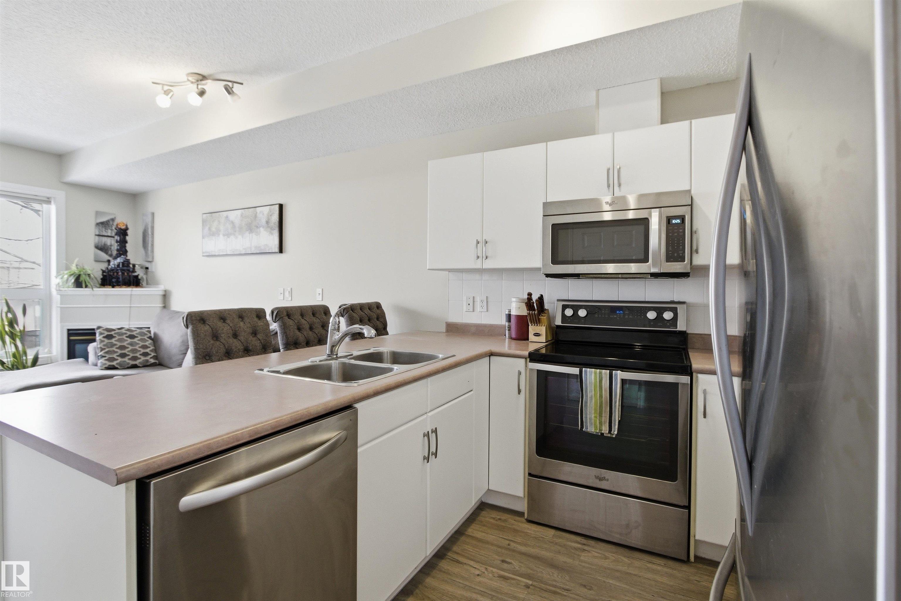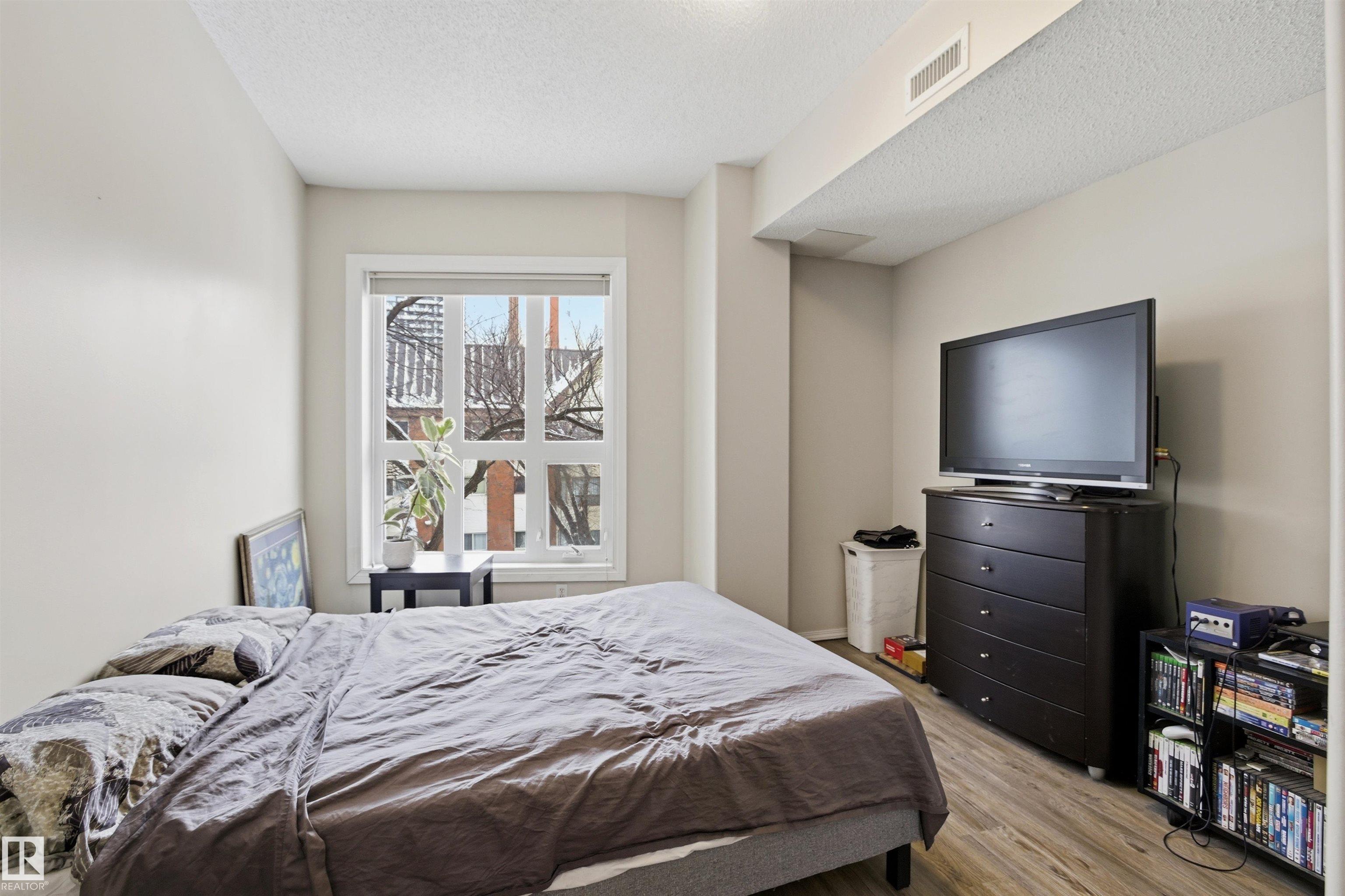 Welcome to this solid concrete condo perfectly located just steps from the University of Alberta and its world-class hospital, offering unbeatable convenience on a peaceful, tree-lined street. Inside, enjoy 9-foot ceilings, classic white kitchen, stainless steel appliances, and the cozy charm of a corner gas fireplace. The spacious primary bedroom features a stunning oversized window framing views of majestic elm trees, along with a walkthrough closet and a private 4-piece ensuite. The second bedroom is window-free—ideal for shift workers needing daytime rest—or easily used as a quiet office, workout room, or extra storage space. Additional highlights include in-suite laundry, secure titled underground parking, and a generous balcony with a great vantage point over the lively pedestrian traffic along the street. A perfect blend of comfort, practicality, and location in one of the city’s most sought-after areas.