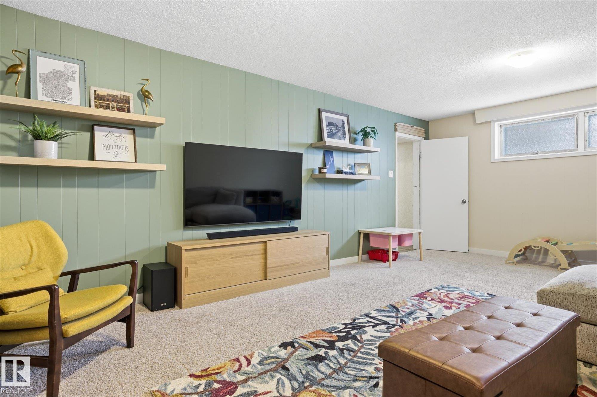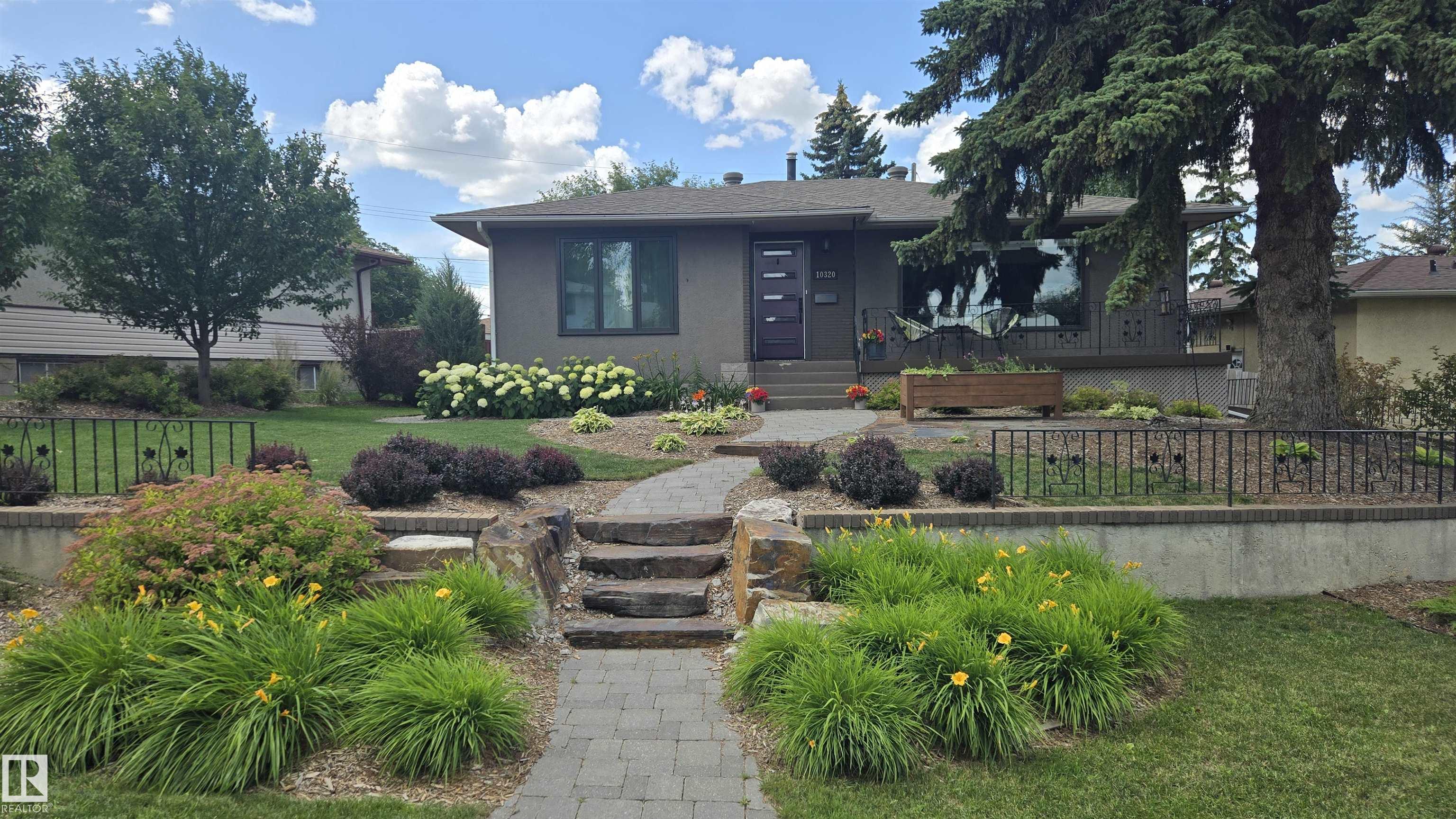 PLATINUM PROPERTY! Beautifully maintained 1,221 sq ft bungalow in desirable Terrace Heights featuring a stunning professionally landscaped yard where the entire lot has been thoughtfully finished to a high standard. The bright open main floor is filled w/natural light from the large living room picture window which looks out to a quiet treed street. Updated kitchen offers butcher block counters, stainless appliances, subway tile backsplash & island w/seating. Dining area includes a stylish beverage station w/cooler & buffet area—perfect for entertaining. Main floor has 3 bdrms & spacious renovated 5pc bath w/double vanity. The fully finished basement adds a large rec room, additional bdrm, workout space, 3pc bath & laundry. Also, this home has A/C & a redone sewer line. Fantastic location w/quick access to shopping, transit & Edmonton’s river valley trail system.