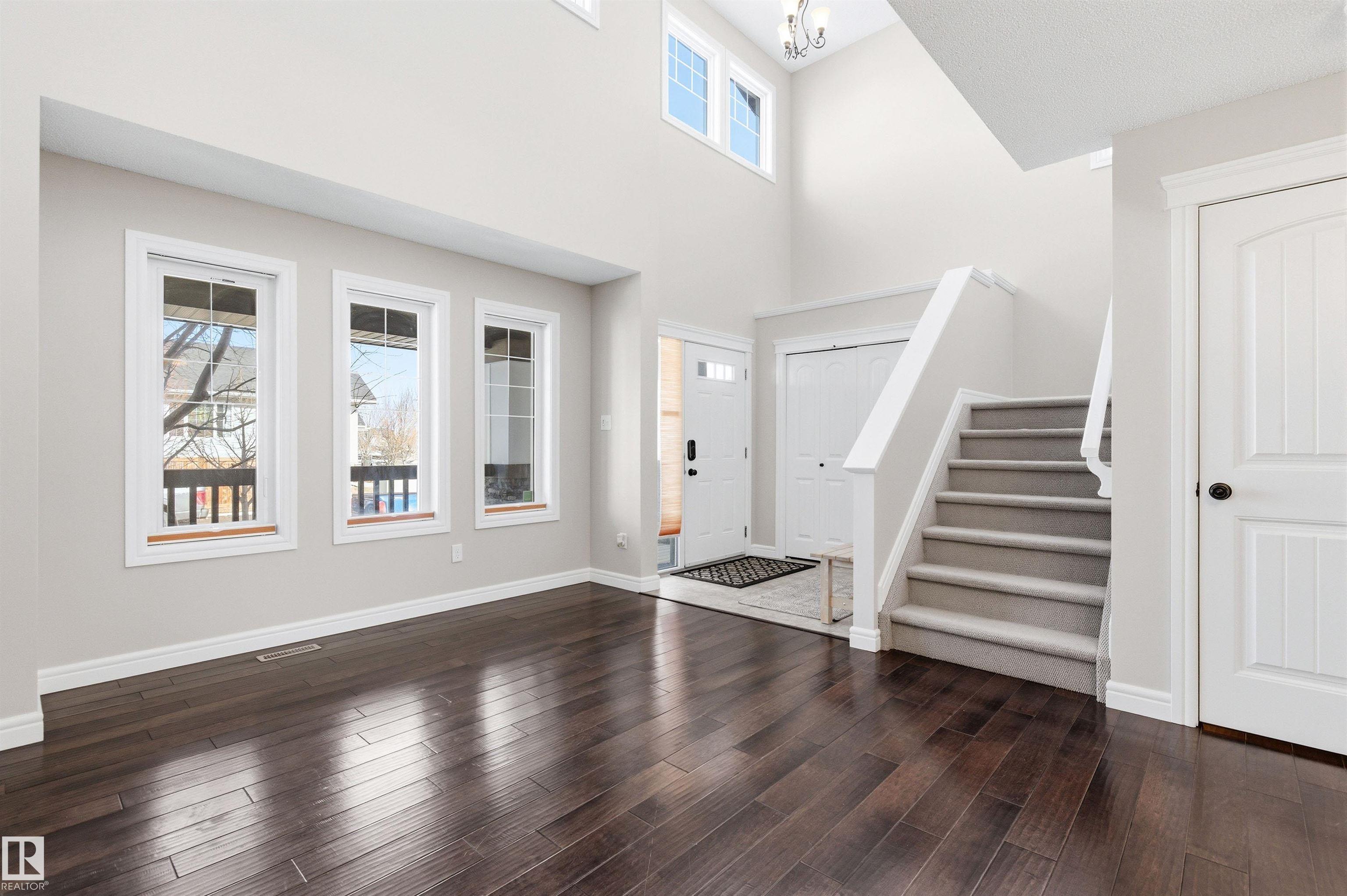 Welcome to this bright and beautifully maintained home located in Glenridding Heights. The open-concept main floor features soaring ceilings and large windows that fill the space with natural light. The spacious living and dining areas showcase rich hardwood flooring and flow seamlessly into the large kitchen, complete with stainless steel appliances, dark cabinetry, ample counter space, and a convenient breakfast bar. The sunny dining nook overlooks the backyard and is perfect for everyday living and entertaining. A main floor den provides an ideal space for a home office or study. Upstairs features 3 spacious bedrooms, including a generous primary bedroom with a walk-in closet and private ensuite. Thoughtfully designed with a functional layout and well-planned living spaces, this home offers comfort and practicality for everyday family living in a family-friendly neighbourhood close to parks, schools, and amenities.