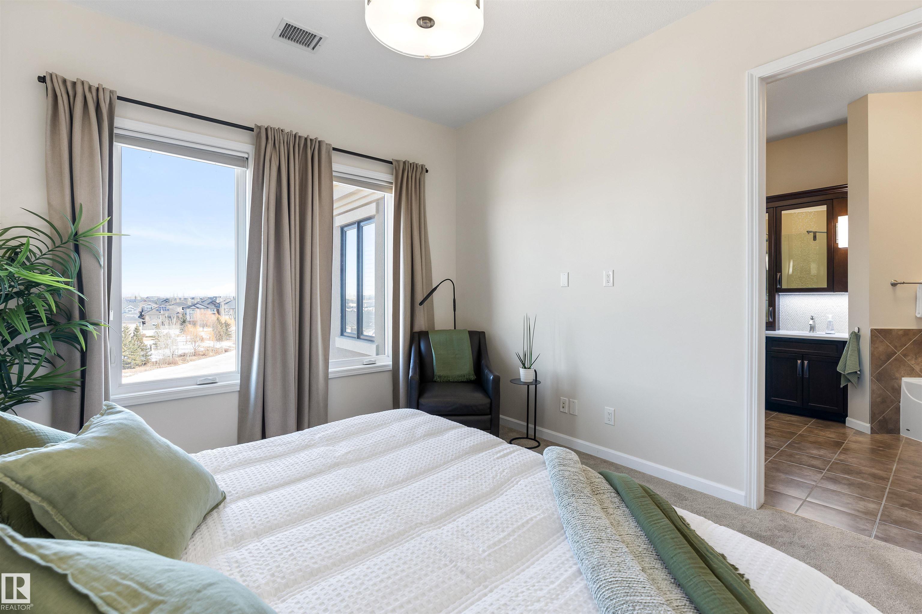 In the beautiful Waterstone complex, discover this SUN-SOAKED, TOP FLOOR, CORNER UNIT w/ incredible LAKE VIEWS, 2 UNDERGROUND PARKING STALLS & a main-floor STORAGE CAGE. Overlook peaceful green space, a serene pond & walking trail from the comfort of your home or step outside to the large balcony, perfect for morning coffee or evening wine w/ a view. This updated suite has a warm & welcoming open-concept layout, feat a cozy corner electric f/p and expansive windows. The kitchen features an abundance of cabinetry, massive eating bar island, QUARTZ counters, pot/pan drawers, s/s appliances, under cabinet lighting & a pantry. The dining area can accommodate large entertaining. Double French doors lead into the den space w/ stunning lake views. The spacious primary bedroom is a true retreat feat a walk-in closet, California Custom closet organizers & a luxurious 5pce ensuite w/ a custom shower. A large 2nd bedroom, 4pce bath, insuite laundry, A/C & 10' ceilings all add to the magnificence of this unit!