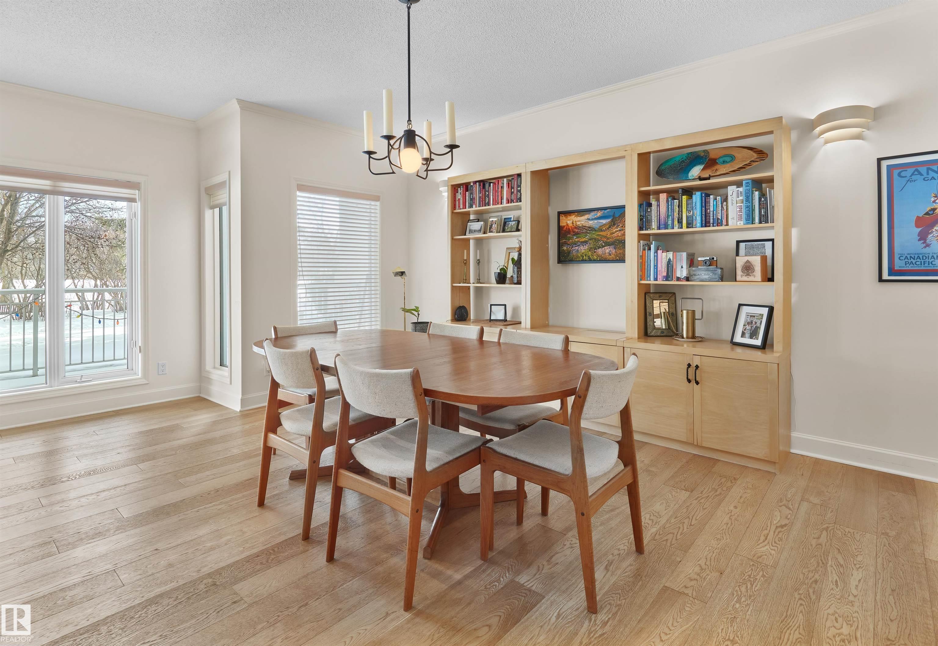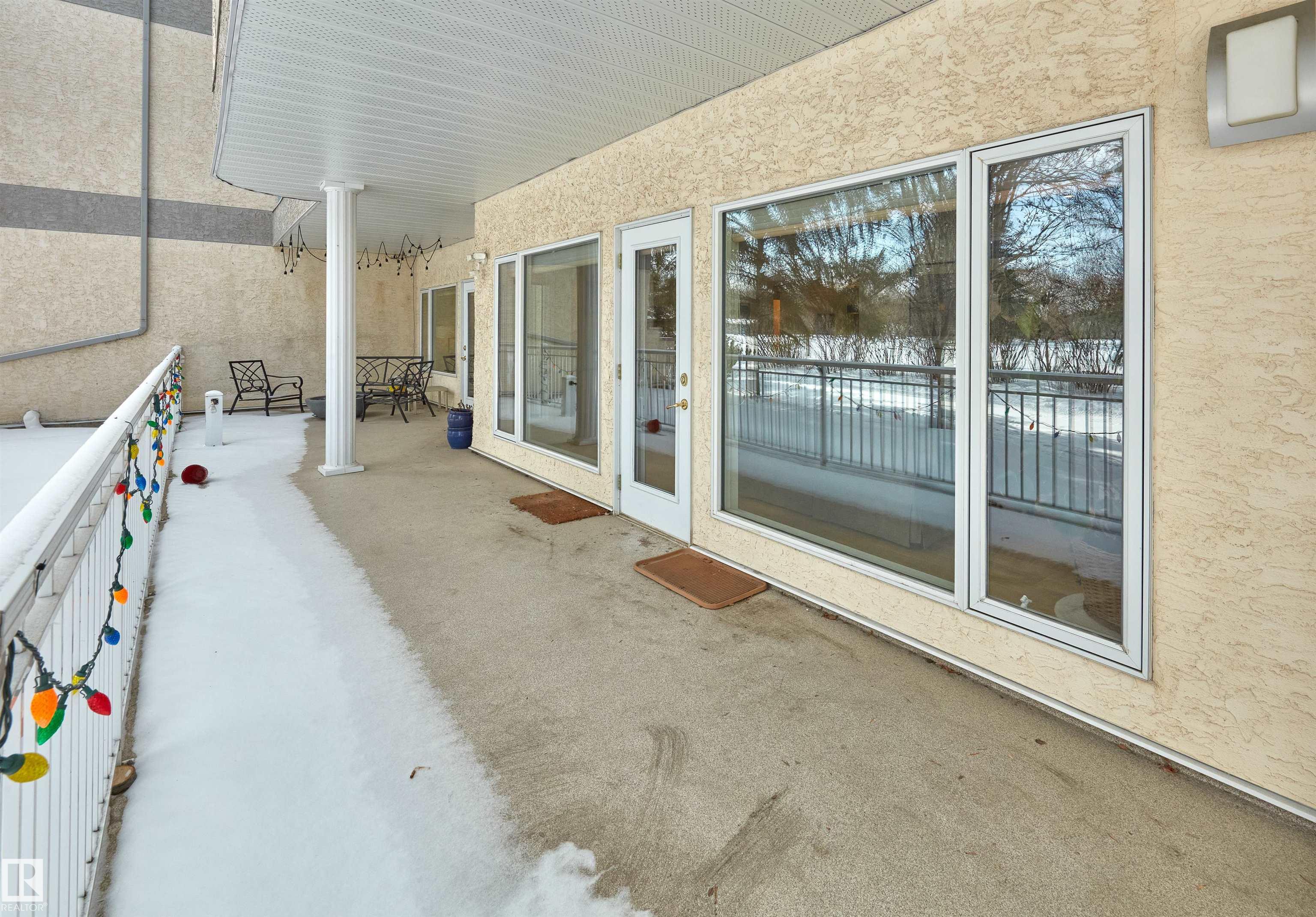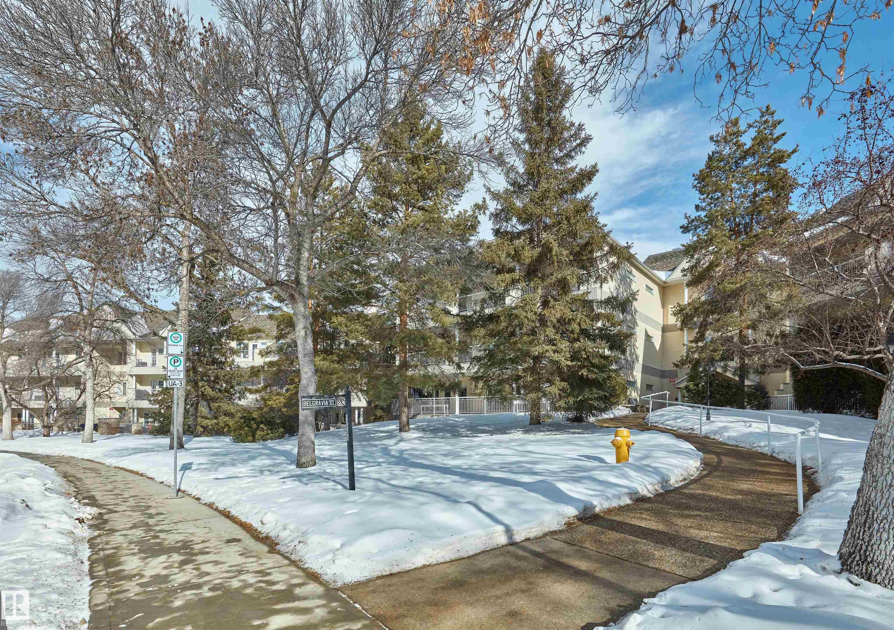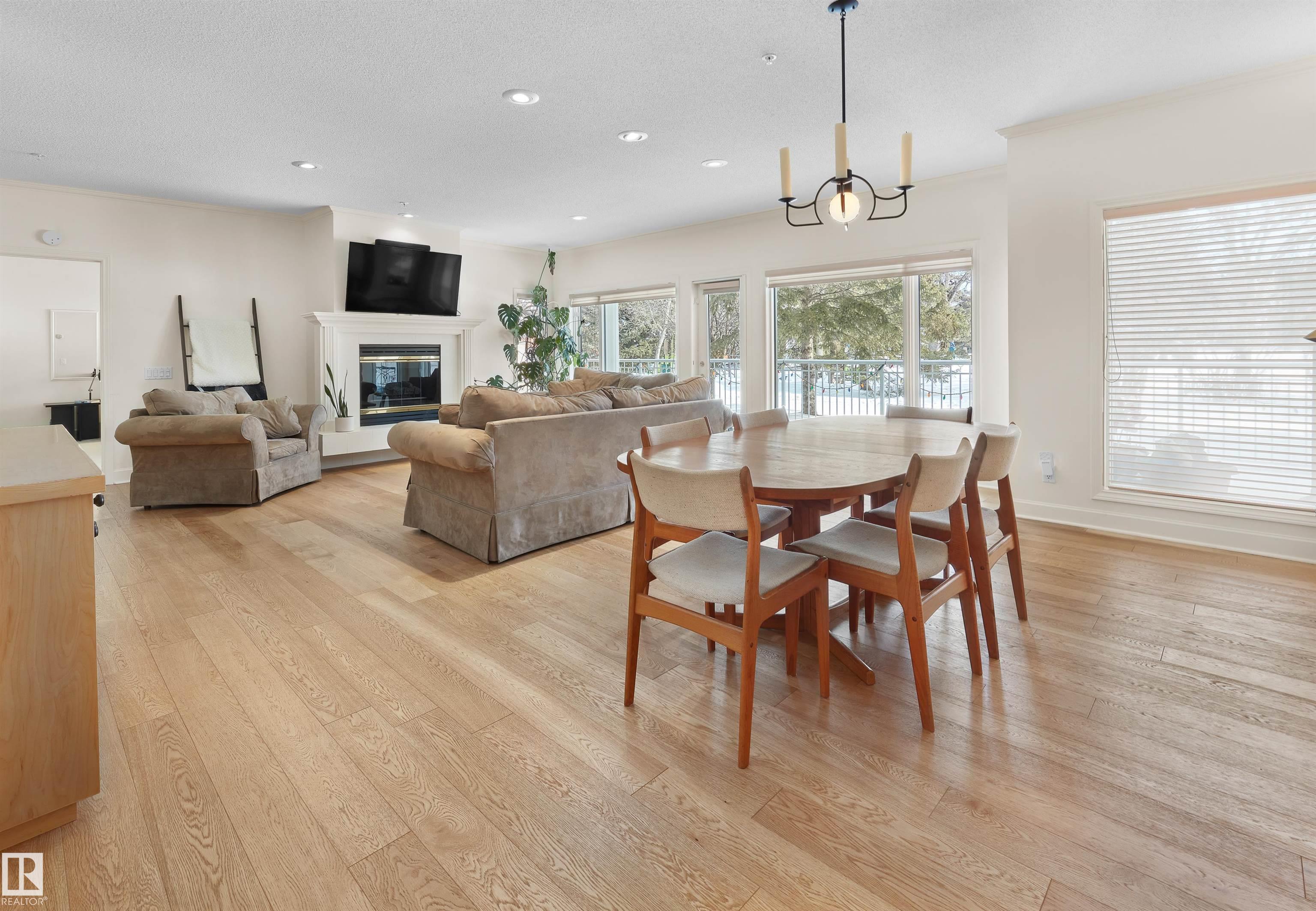 Welcome to this spacious 1,990 sq ft main-floor residence in Belgravia III, a well-managed complex in an exceptional location just steps from the University of Alberta, major hospitals, the Jubilee Auditorium, and the beautiful River Valley. Designed for comfortable living and effortless entertaining, the expansive layout features oversized living and dining areas, two generous bedrooms including a primary suite with a luxurious 5-piece ensuite, a versatile main-floor den/office, and a large kitchen with abundant cabinetry and breakfast nook. Quality finishes include engineered hardwood floors, a gas fireplace with mantel, 9-foot ceilings, triple-pane windows, in-suite laundry and storage, and air conditioning. Step outside to a huge east-facing patio overlooking a private park-like setting—perfect for morning coffee or quiet relaxation. This exceptional home also includes two heated underground parking stalls, a large storage locker, a fitness room, and a car wash.