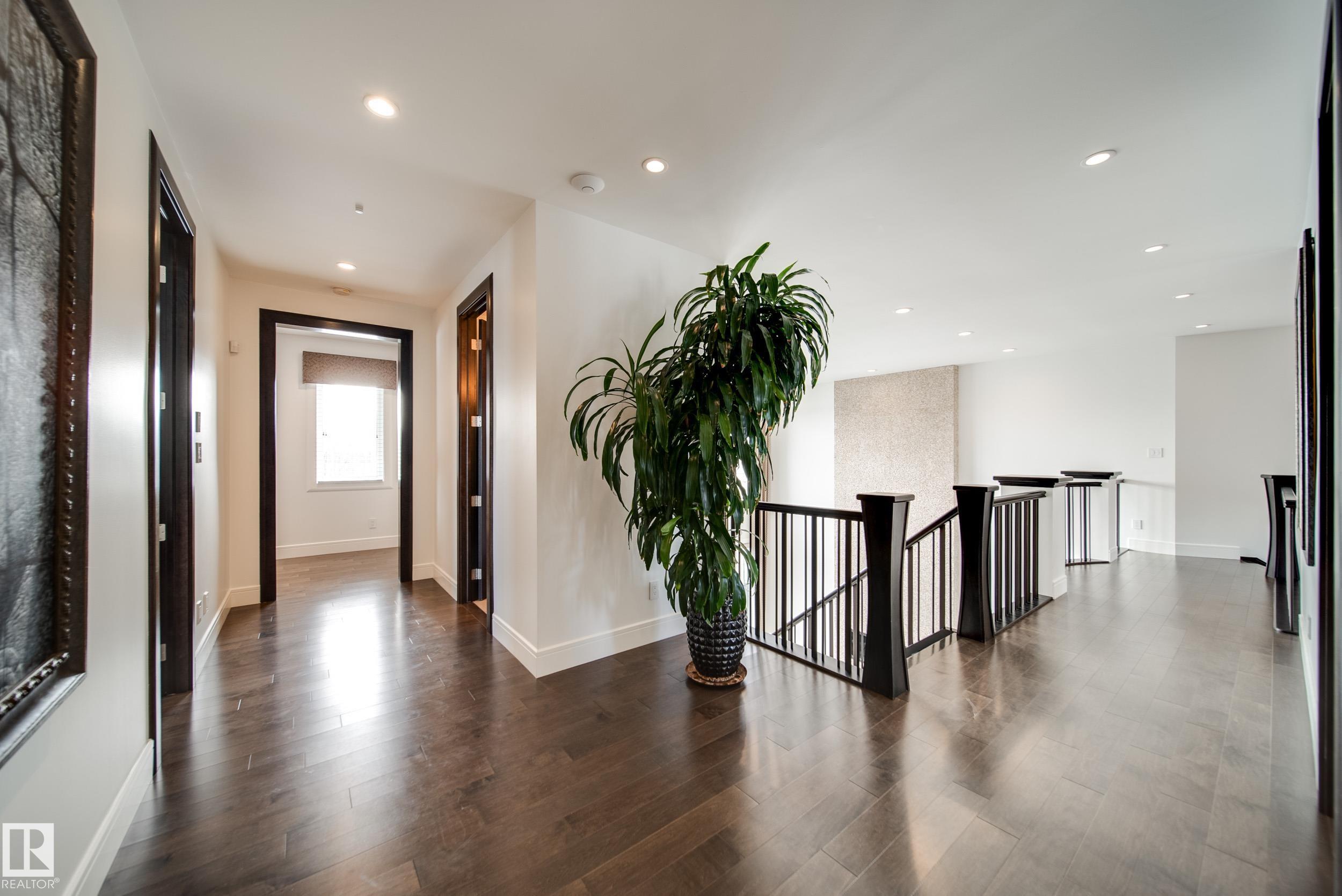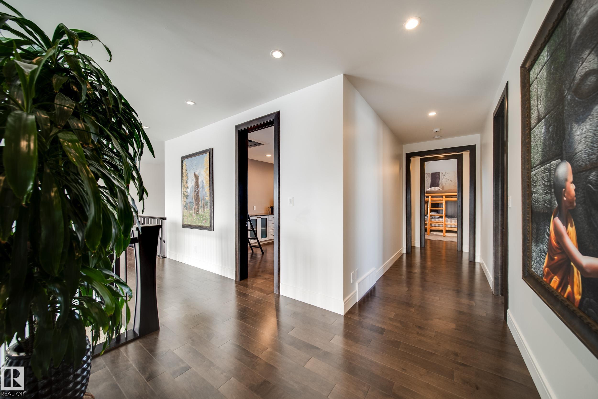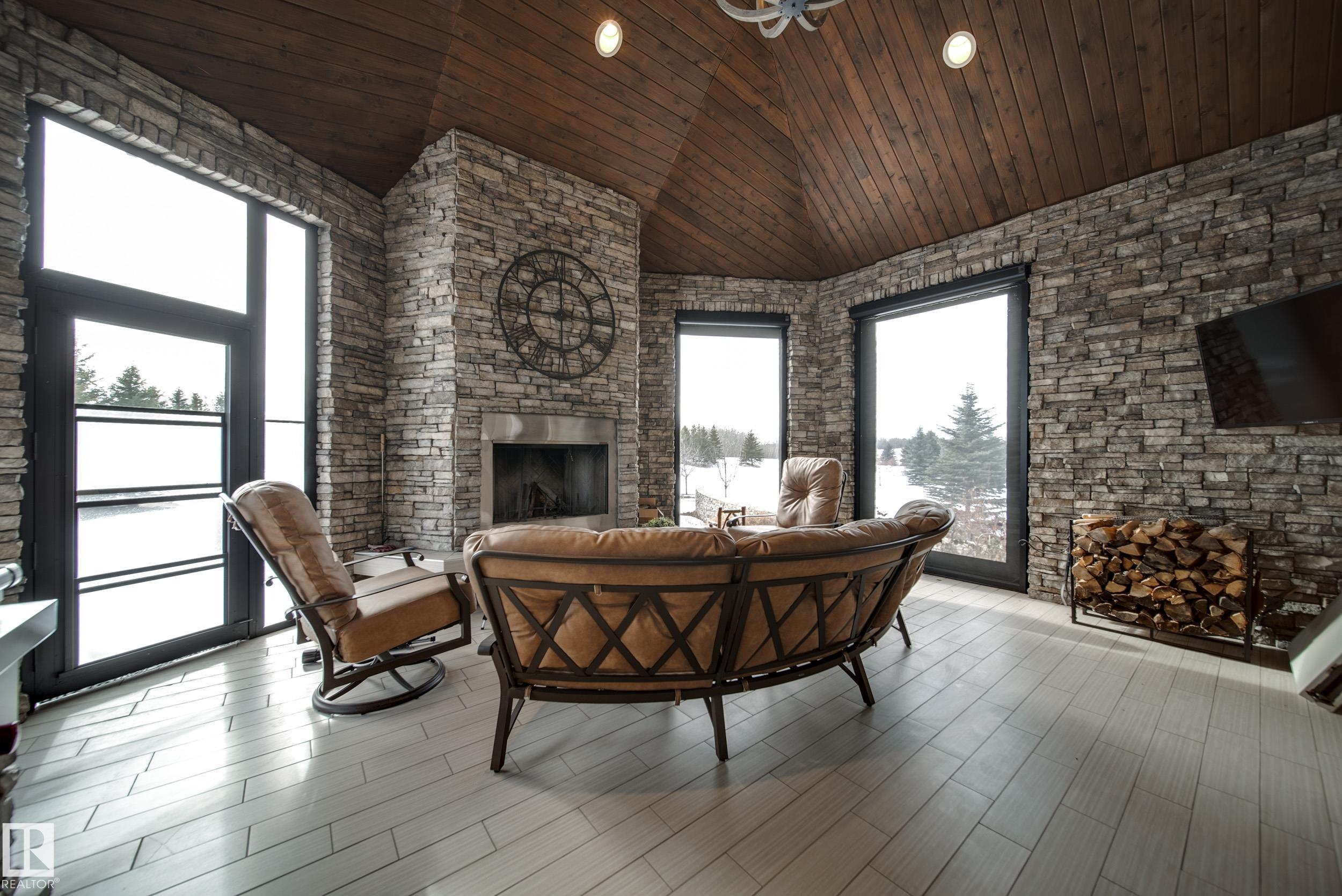 Luxury living in prestigious Blackhawk Estates, just 15 minutes southwest of Edmonton. Situated on a beautifully landscaped 1-acre lot, this exceptional two-storey home backs onto the North Saskatchewan River and fronts the 4th fairway of the renowned Blackhawk Golf Club—hop in your golf cart and head to the course. Offering over 9,000 sq ft of living space with 6,041 sq ft above grade, the home features a main-floor primary retreat with spa-inspired ensuite and dual walk-in closets, plus a private office. Expansive living areas include a chef’s kitchen with dining area and cozy living room. A formal great room, wine cellar, and five fireplaces, including a wood-burning fireplace in the three-season room, add warmth and elegance. Upstairs offers 3 bedrooms plus a flex room, while the basement includes a theatre, gym, games area with mini hockey rink, rec room, and bedroom. A true car enthusiast’s dream, the 2,400 sq ft garage features vaulted ceilings and a wash bay. This is the best of acreage living!