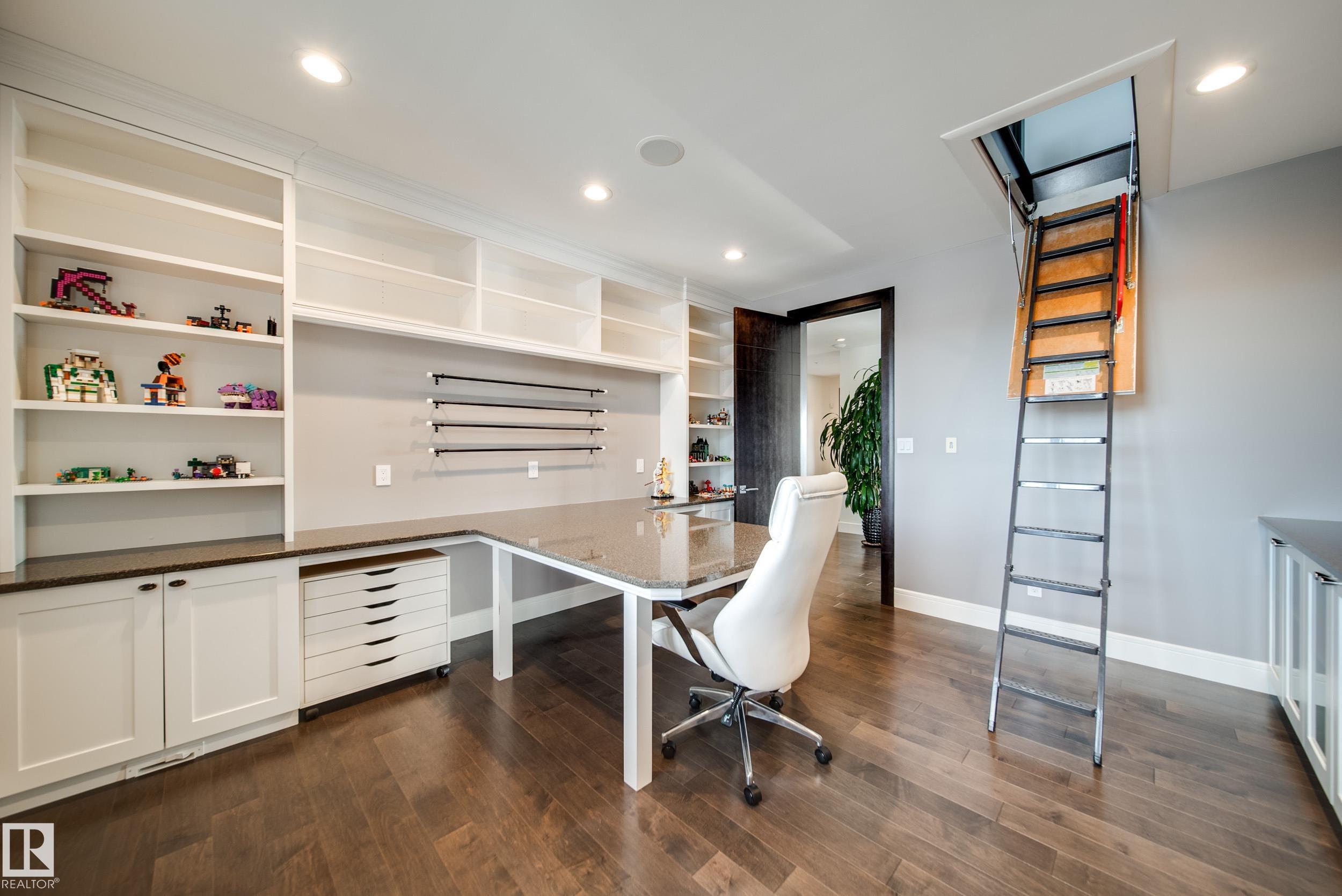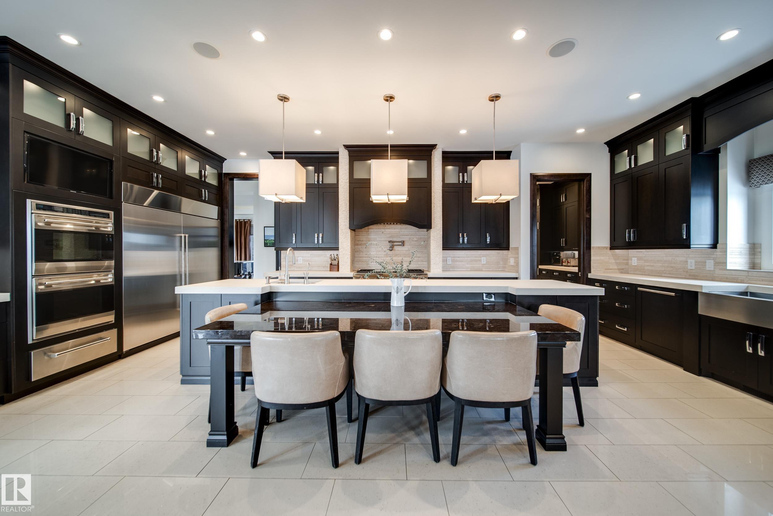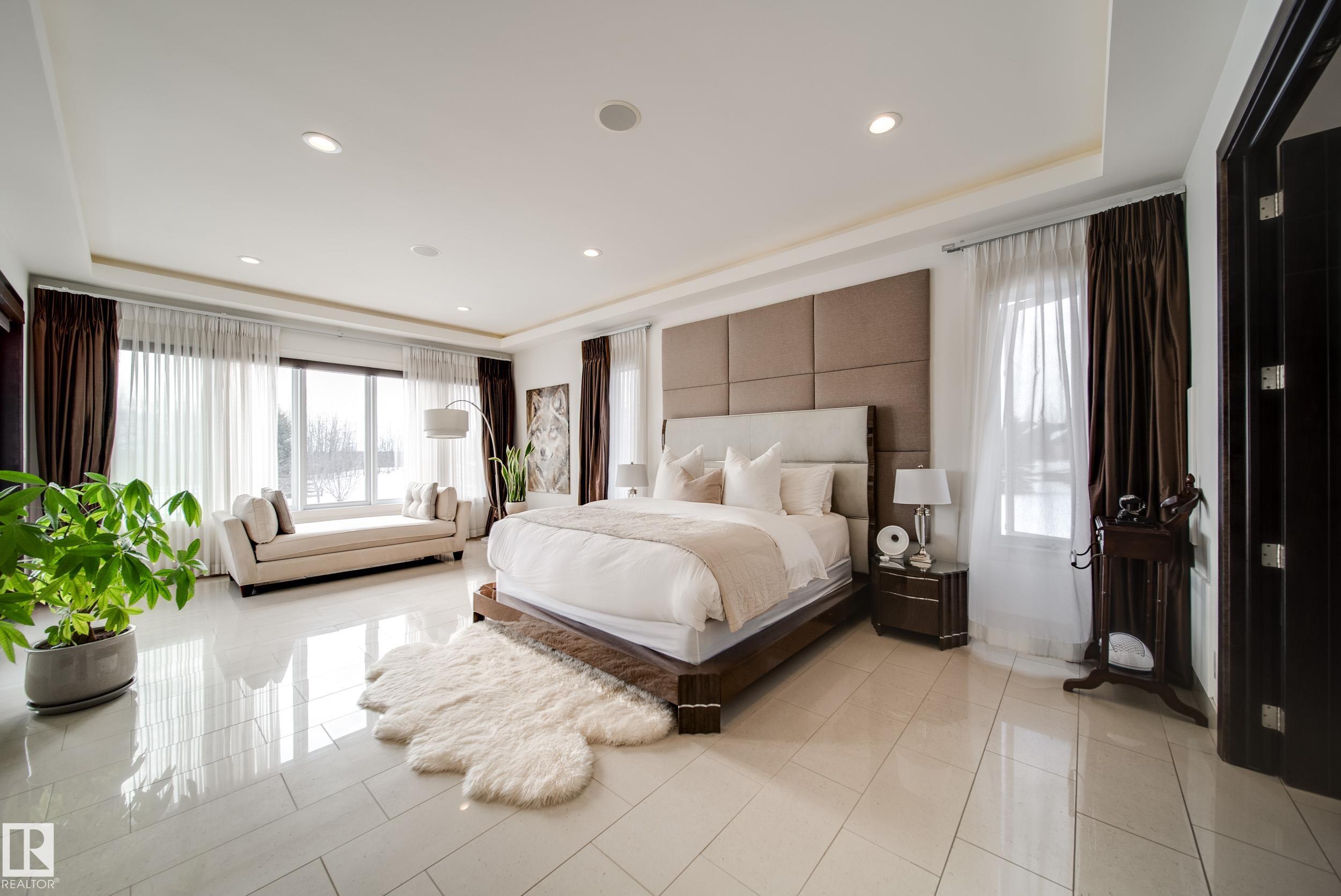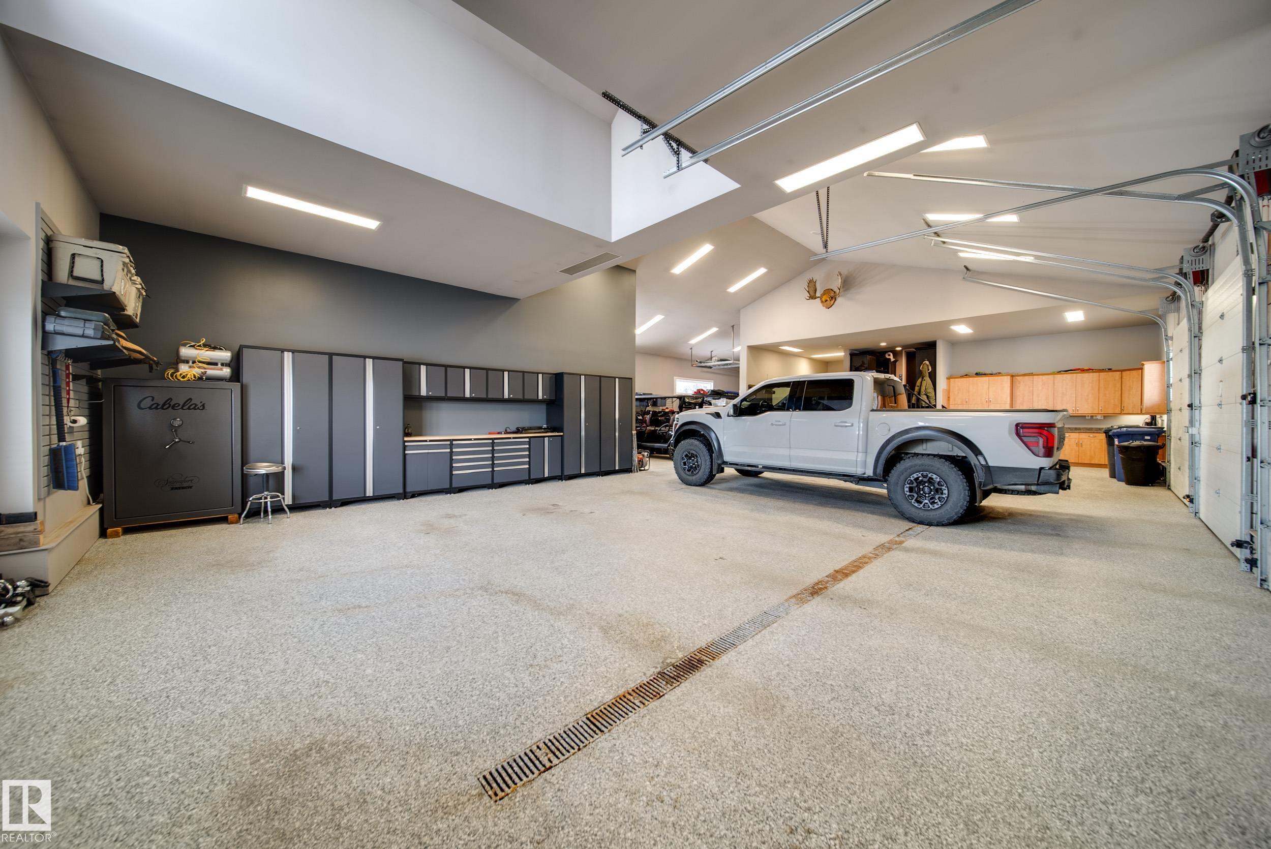 Luxury living in prestigious Blackhawk Estates, just 15 minutes southwest of Edmonton. Situated on a beautifully landscaped 1-acre lot, this exceptional two-storey home backs onto the North Saskatchewan River and fronts the 4th fairway of the renowned Blackhawk Golf Club—hop in your golf cart and head to the course. Offering over 9,000 sq ft of living space with 6,041 sq ft above grade, the home features a main-floor primary retreat with spa-inspired ensuite and dual walk-in closets, plus a private office. Expansive living areas include a chef’s kitchen with dining area and cozy living room. A formal great room, wine cellar, and five fireplaces, including a wood-burning fireplace in the three-season room, add warmth and elegance. Upstairs offers 3 bedrooms plus a flex room, while the basement includes a theatre, gym, games area with mini hockey rink, rec room, and bedroom. A true car enthusiast’s dream, the 2,400 sq ft garage features vaulted ceilings and a wash bay. This is the best of acreage living!
