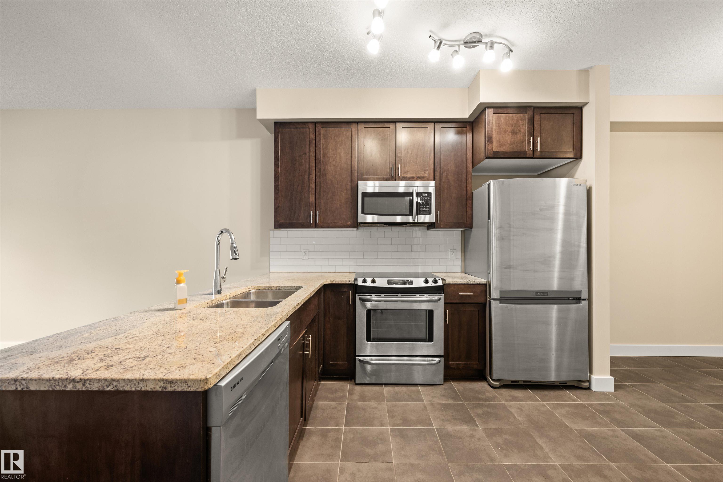 Welcome to Grand Scala in prestigious Belgravia, one of Edmonton’s most sought-after, mature neighborhoods. This spacious and bright second-level apartment offers two full bedrooms and two bathrooms, including a private ensuite with walk-through closet. Enjoy the rare convenience of TWO HEATED UNDERGROUND PARKING STALLS side by side, plus a secure storage cage. This unit has been refreshed with BRAND NEW CARPET AND FRESH PAINT, making it truly move-in ready. The open-concept layout features granite countertops, engd hardwood, stainless steel appliances, and a cozy gas fireplace. Large windows fill the home with natural light, while air conditioning and in-suite laundry add everyday comfort. Step onto the private balcony with a gas line for your barbecue. Building amenities include a fitness room, social room, and car wash. Condo fees include heat and water. Location is unbeatable: a short walk to the U of A, Whyte Avenue, river valley trails, downtown, and the LRT just steps away. Don't miss this one!