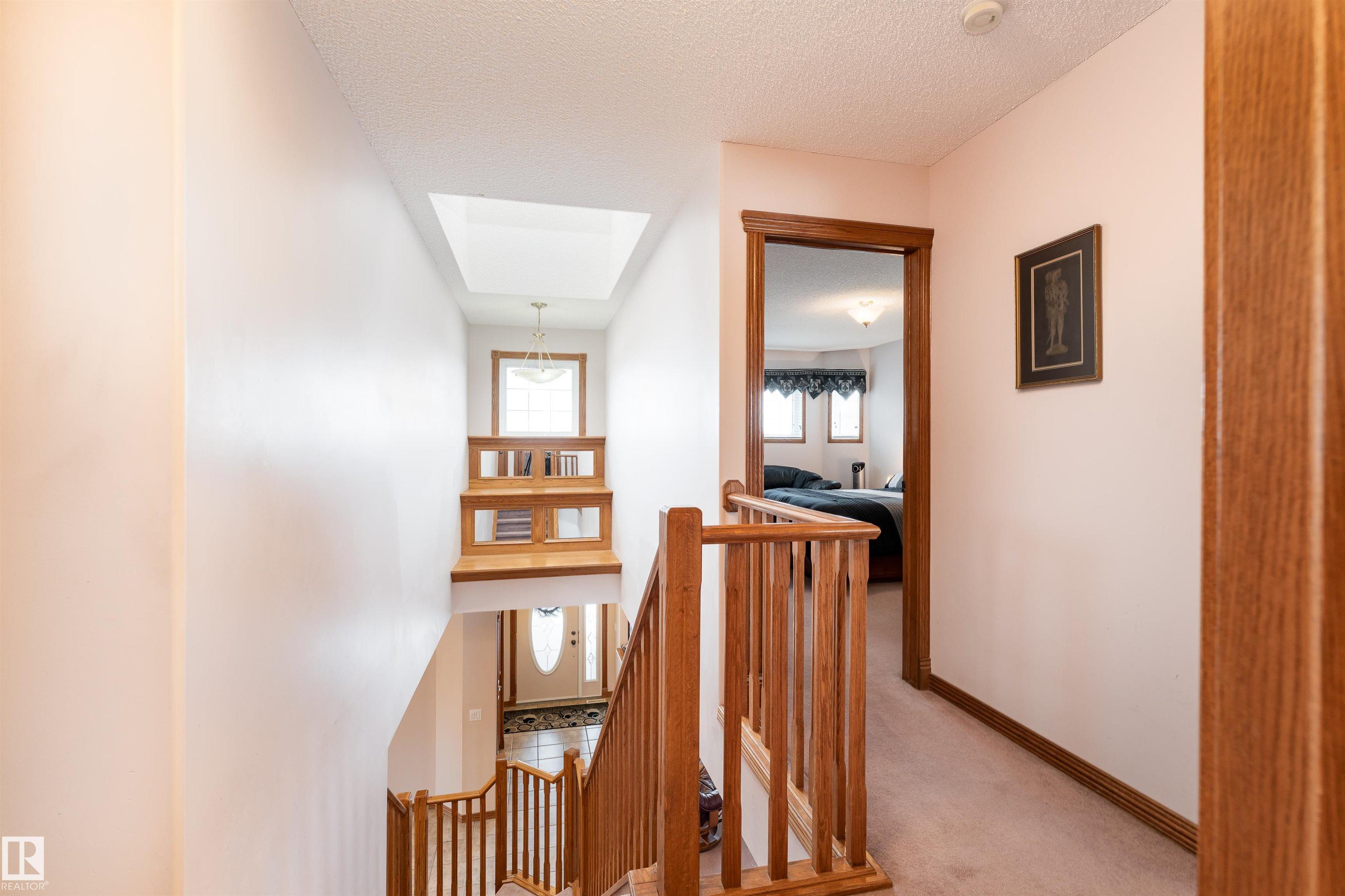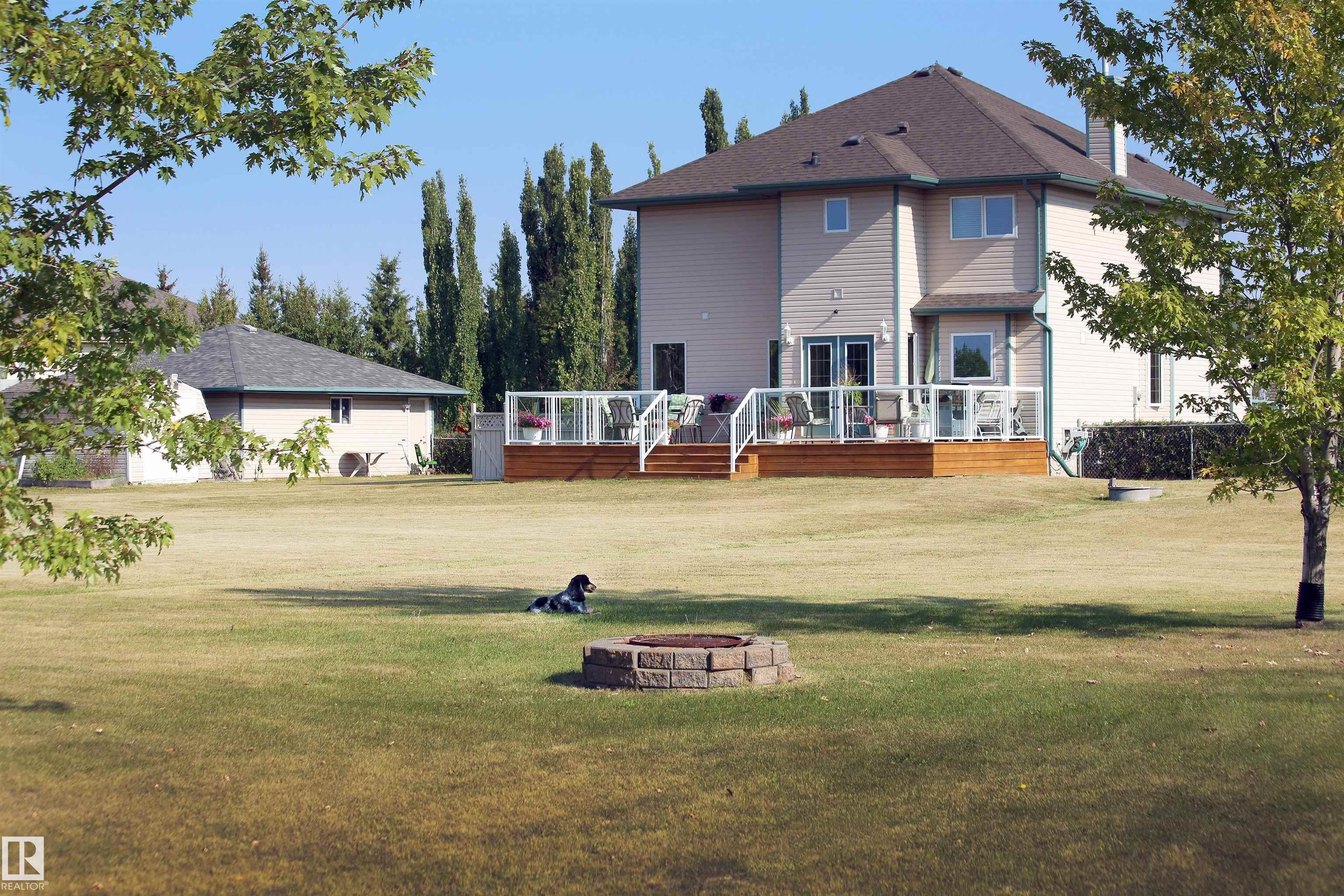This meticulously maintained 2-storey home on 3 acres offers over 2,400 sq ft above grade plus a fully finished basement and 5 enclosed garage spaces. Inside you’ll find 3 spacious bedrooms, a den, and 4 bathrooms. The main floor features inviting living areas with a tile-surround gas fireplace and a bright kitchen with custom oak cabinetry. Upstairs, the primary retreat includes its own fireplace, private ensuite, and walk-in closet, along with two additional bedrooms, a full bath, and convenient upstairs laundry. The finished basement offers a large recreation room and versatile space ideal for a home gym, office, or additional bedrooms, plus a full bath. Outside, enjoy evening sunsets from the SW-facing deck, while the acreage provides privacy, space, and pride of ownership throughout.