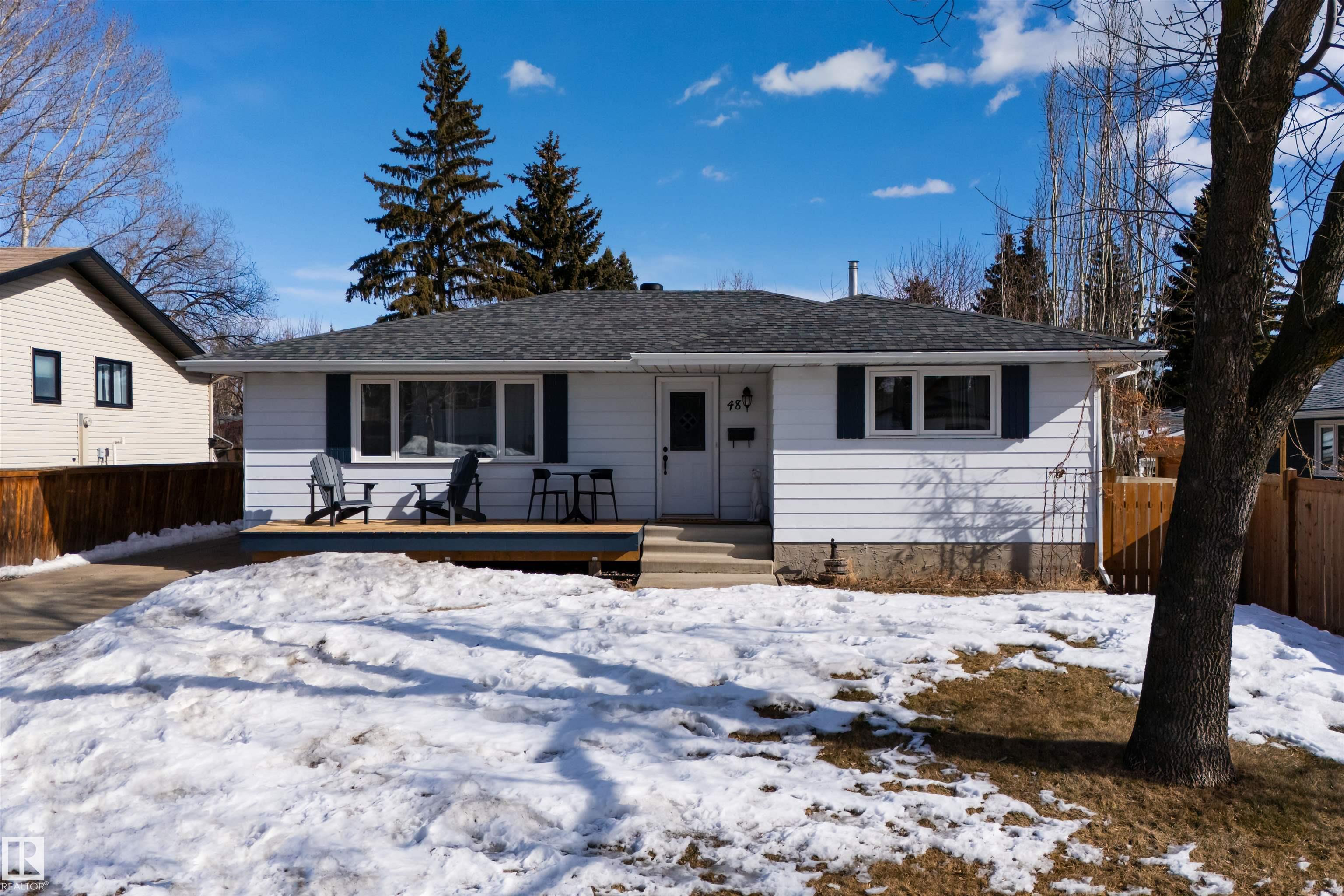 Welcome to this move-in ready 3+1 bedroom bungalow with a separate entrance and fully finished basement featuring a second kitchen, ideal for a mother-in-law suite or income potential. The bright main floor showcases luxury vinyl plank flooring and a spacious kitchen with ample cabinetry and counter space that opens to a cozy living area, perfect for entertaining. The main level includes a large primary bedroom with an ensuite, two additional bedrooms, and a 4-piece bathroom. Recent upgrades include updated bathrooms, windows, appliances, a newer hot water tank, and a new roof for peace of mind. The basement offers a family room, bedroom, full bathroom, and a second kitchen for flexible living. Look forward to the aproaching summer months chilled by the AC or head outside to enjoy a private backyard with a large deck and an oversized insulated double detached garage. Located close to schools, parks, and amenities in Glen Allan, this home is perfect for families, investors, or multi-generational living.