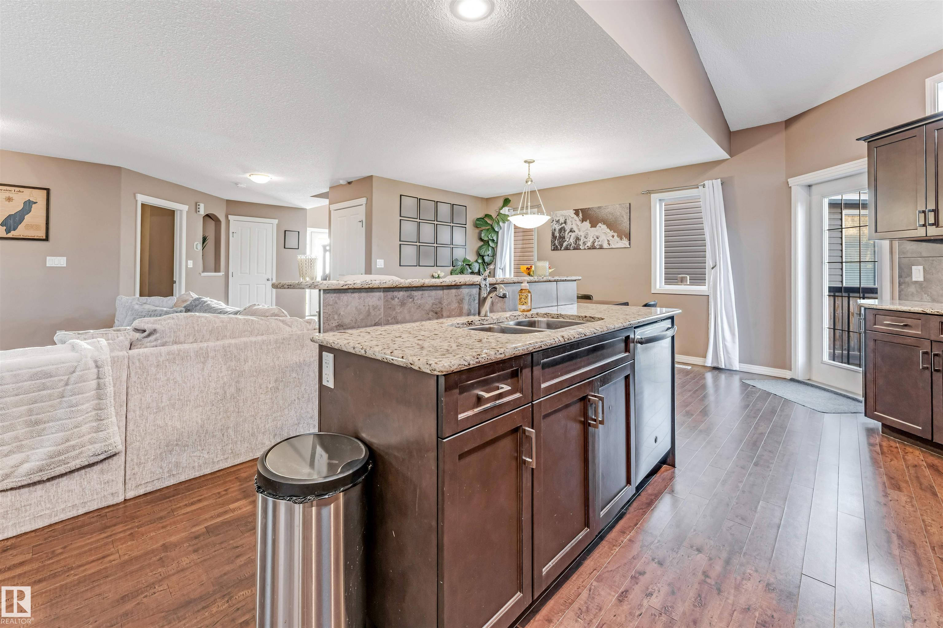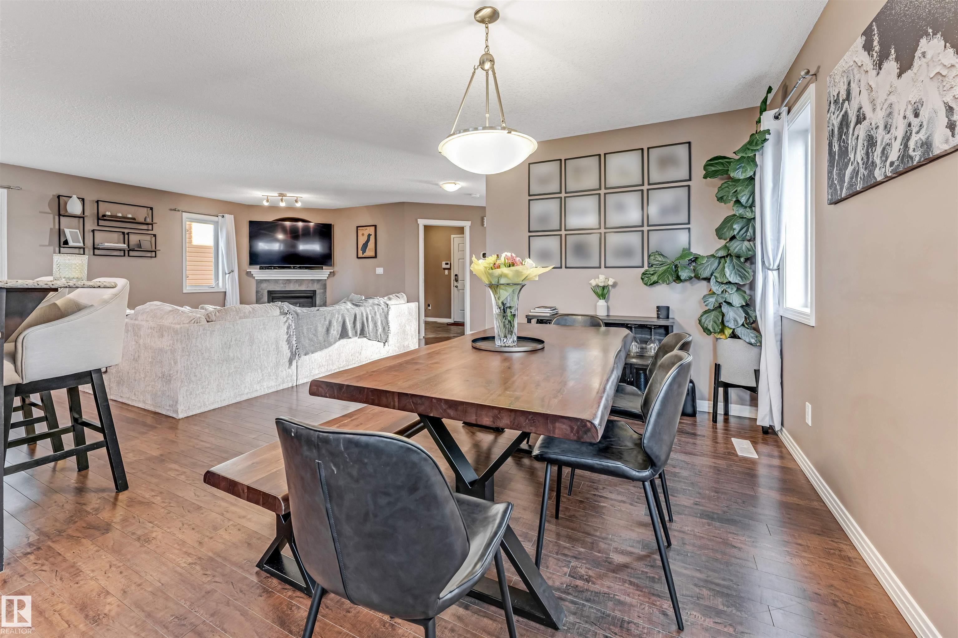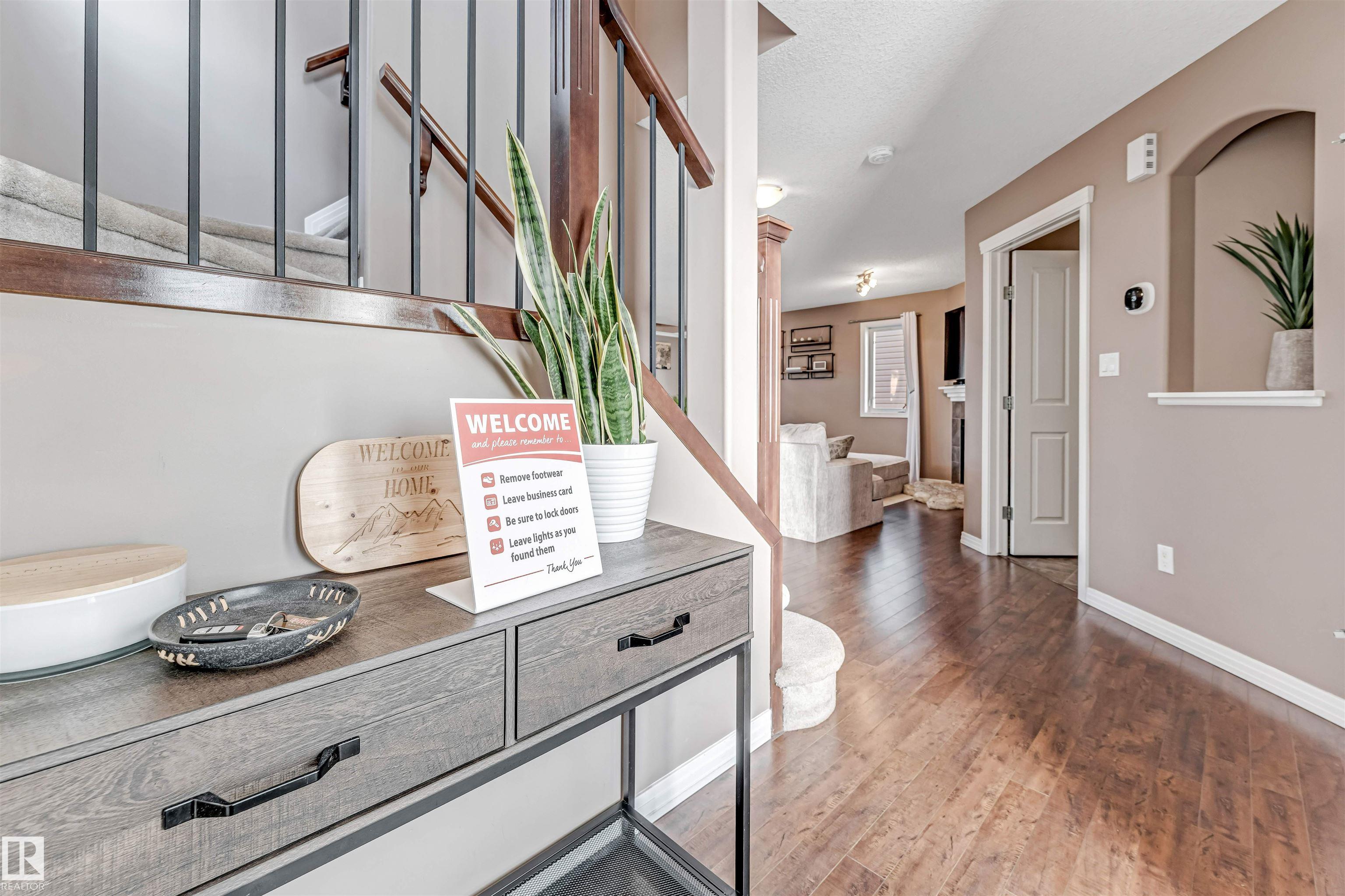Welcome to this stunning home in Beaumont, ideal for a growing family. This beautifully maintained 3 Bed / 2.5 Bath two-story sits in the sought-after community of Montalet, only steps from the scenic community lake. The main floor showcases a bright open-concept layout featuring a cozy mantle fireplace and skylights above the kitchen that fill the space with natural light. The chef-inspired kitchen boasts a massive island, granite countertops, abundant cabinetry, and a convenient pantry for excellent storage. Upstairs you’ll find a spacious primary bedroom with a luxurious 5-piece ensuite and walk-in closet, along with two additional bedrooms and a full 3-piece bath. The basement offers three large windows and great potential for a future side entrance. Outside, enjoy a generous backyard with a perfectly sized deck—ideal for relaxing in the sun or entertaining guests. Located extremely close to schools, amenities, golf, recreation centers, and offering quick access to Edmonton. A must-see opportunity!