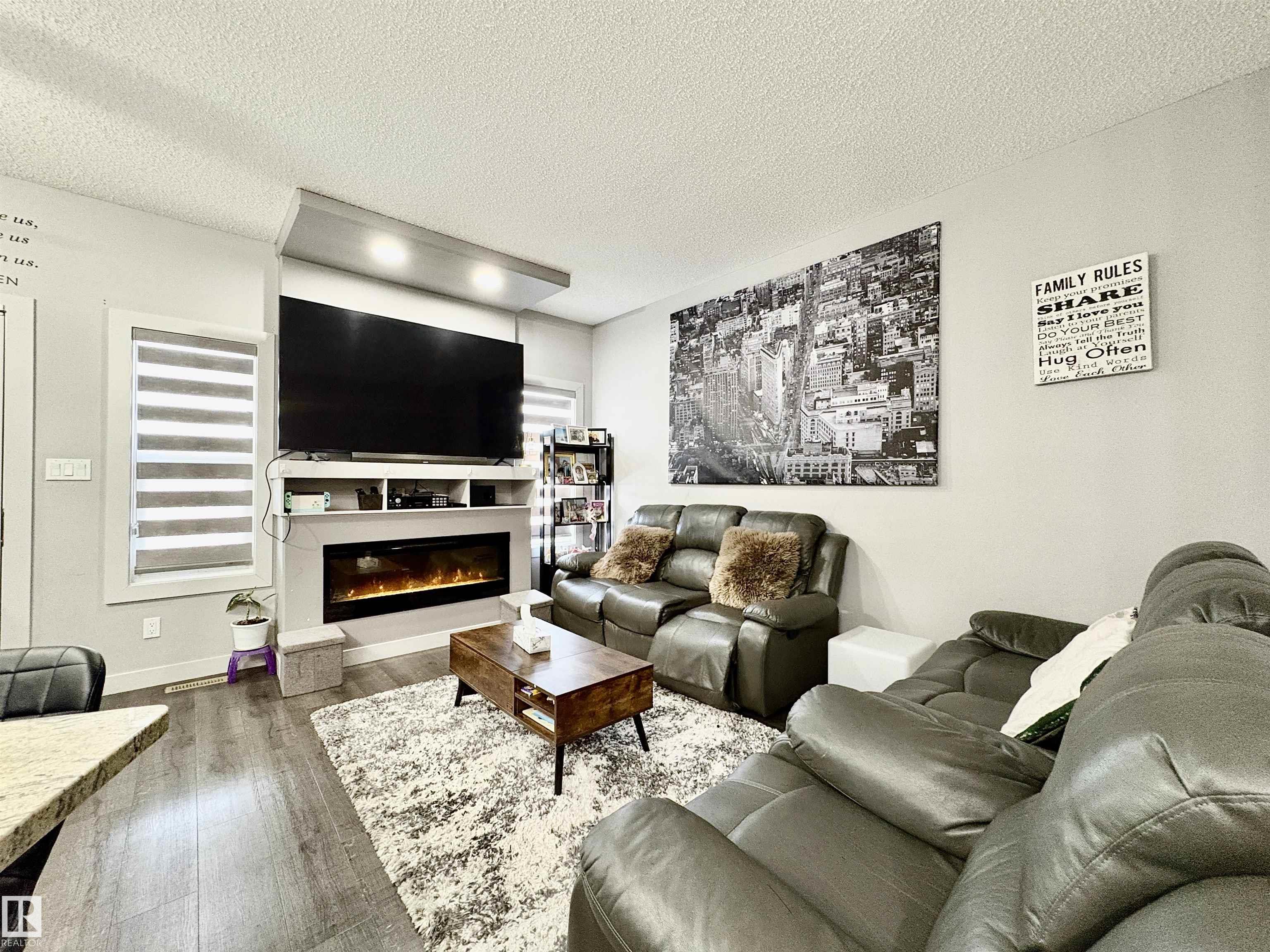 The front foyer has a custom built-in cubby/bench/coat hook combo & a coat closet as does the mudroom off the garage. The laundry room is located in the mudroom. The main floor has 9 ft. ceilings & luxury vinyl plank flooring on the main floor. The kitchen is U shaped with dark cabinets, quartz countertops with an under mount sink, full height backsplash & a corner pantry. There is a flush eating ledge off the wall island. The living room has a modern linear fireplace. Upstairs has a study room that is flexible for your use. There are 3 bedrooms with the master having a 4 pce. ensuite & walk-in closet. Fully finished basement with 1 bedroom and 3 piece washroom.