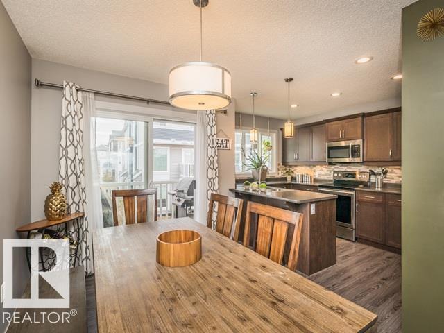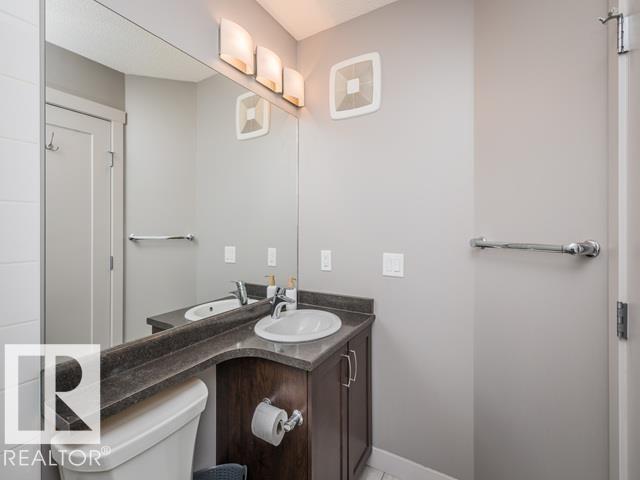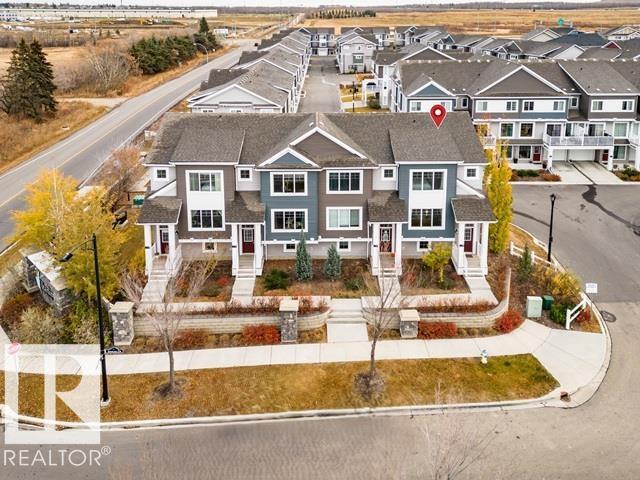 Bright End Unit | Extra Side Windows | Modern Kitchen | Double Garage Fits 1/2 Ton Truck. Welcome to this bright end unit townhome with 4 extra side windows that fill the home with natural light all day. The open concept features laminate/tile flooring and a spacious kitchen with Island, stainless steel appliances, modern cabinetry, pantry, and generous counter space, that flows into the dining and living areas for a comfortable layout. A convenient two-piece bathroom completes the main level. Upstairs are three well sized bedrooms, two full (4 pc) bathrooms, and a versatile flex space ideal for a home office, or reading nook. The lower level includes laundry, mudroom, and entrance to the double-attached garage. Enjoy the balcony for BBQing and additional street parking nearby. Located in the beautiful community of Starling, with quick access to St. Albert, Anthony Henday Drive, Big Lake, and the trails of Lois Hole Provincial Park. (Additional Benefits, lower Edmonton Taxes and Condo Fees )