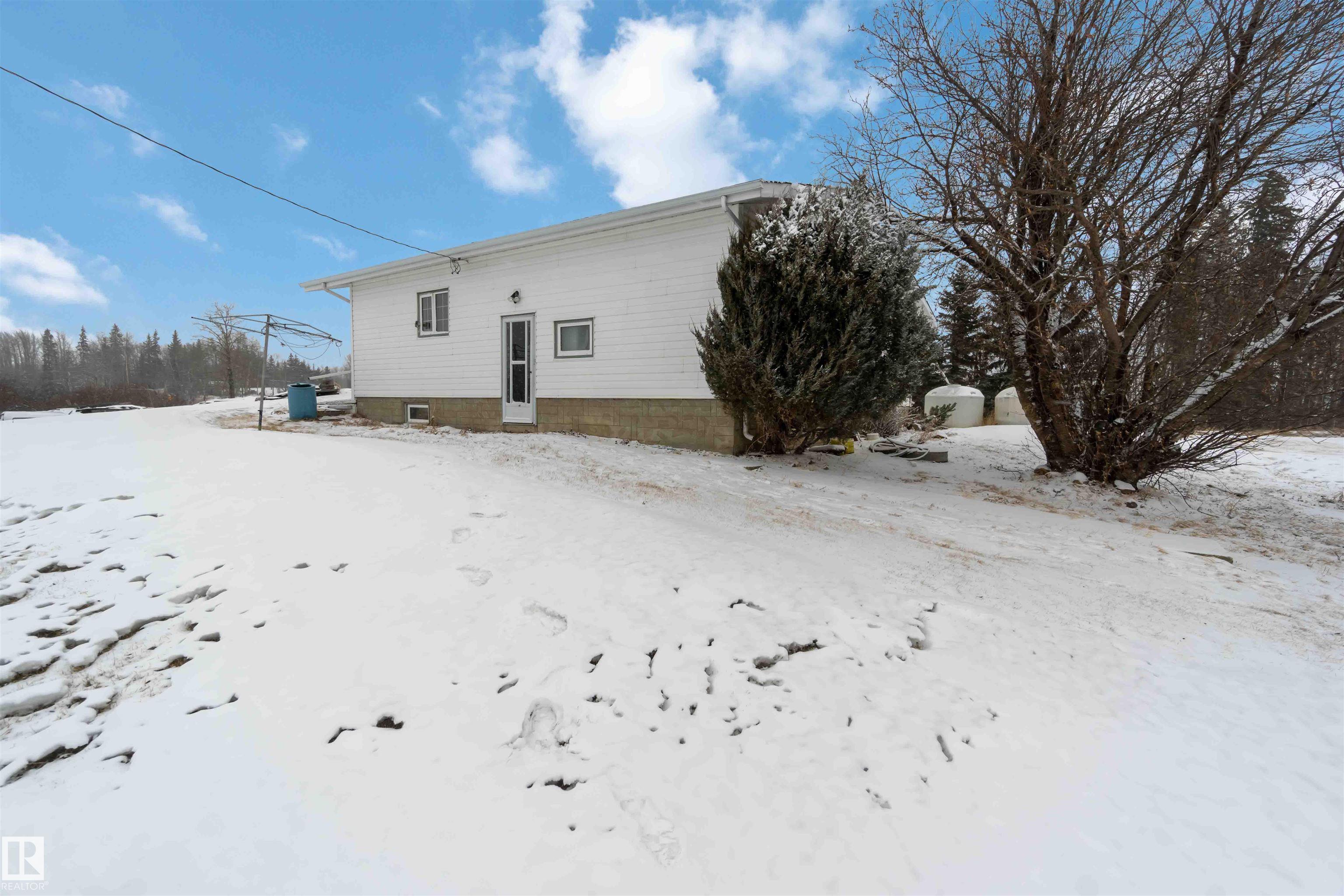 AMAZING BUNGALOW ON 3.96 ACRES OUT OF SUBDIVISION! WELCOME TO 51128 RANGE ROAD 21. LOCATED ON PAVEMENT THIS 1968 BUILT BUNGALOW HAS 2862 SQUARE FEET OF LIVING SPACE, 4 BEDROOMS, AND 2 BATHROOMS. THE KITCHEN HAS LINO FLOORS, SOLID WOOD CABINETRY, AND BORDERS THE BREAKFAST NOOK. MAIN FLOOR LIVING AREA IS SPACIOUS. PRIMARY BEDROOM IS KING SIZED. MAIN FLOOR ALSO HAS A DEN, A FULL BATHROOM, 2 ADDITIONAL BEDROOMS, A HALF BATHROOM, AND A SPACIOUS ENTRANCE. FULL HEIGHT BASEMENT IS PARTIALLY FINISHED WITH AN ADDITIONAL BEDROOM, WOOD BURNING STOVE, STORAGE, FAMILY ROOM, AND UTILITY ROOM. HOME HAS NEWER VINYL CASED WINDOWS, UPGRADED SIDING, NEW SHINGLES, AND A VINYL-CASED DRILLED WATER WELL. ATTACHED GARAGE IS 36X31 (REQUIRES NEW SHINGLES). PROPERTY HAS 2 APPROACHES AND HAS BEEN LANDSCAPED.