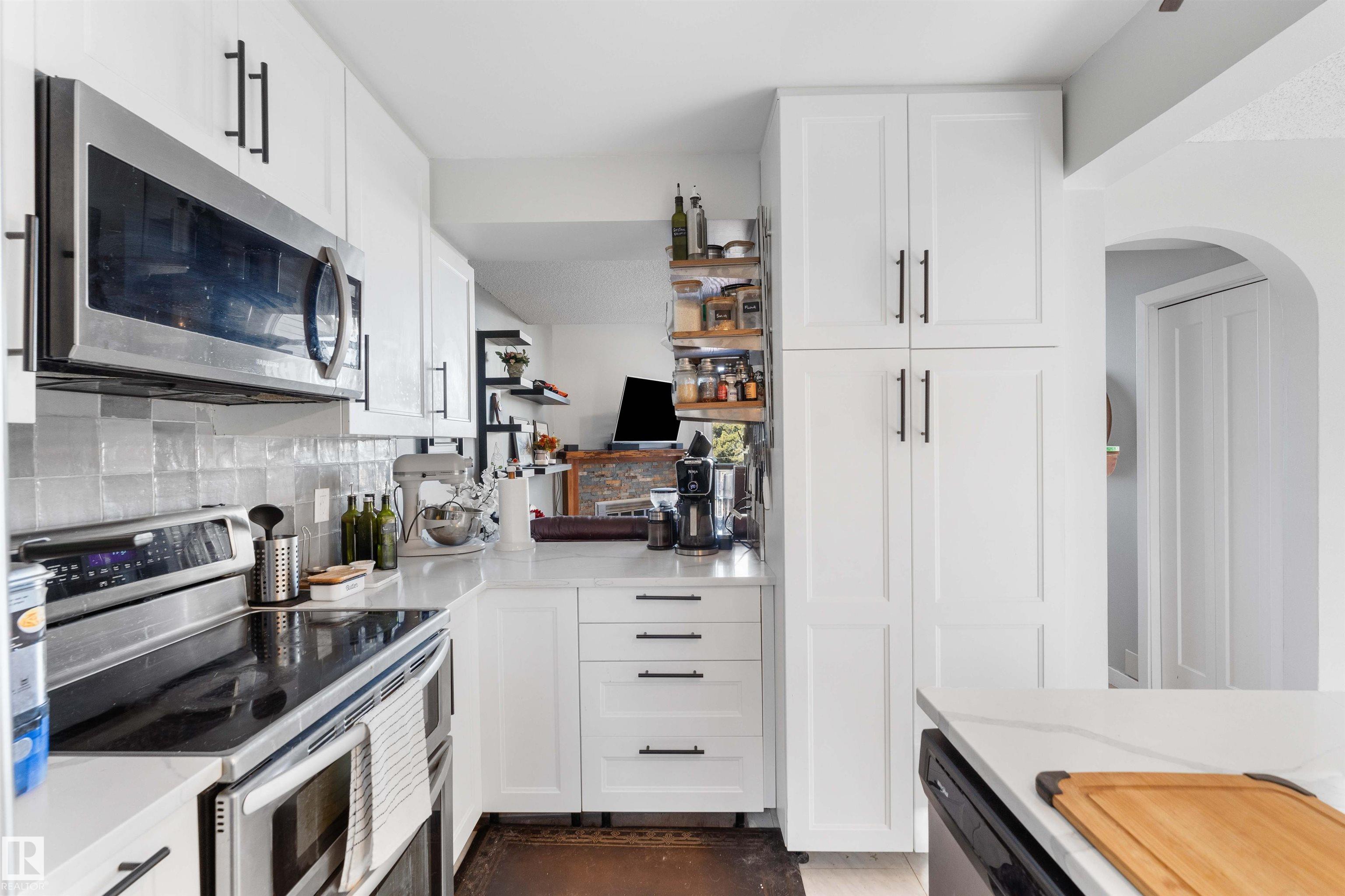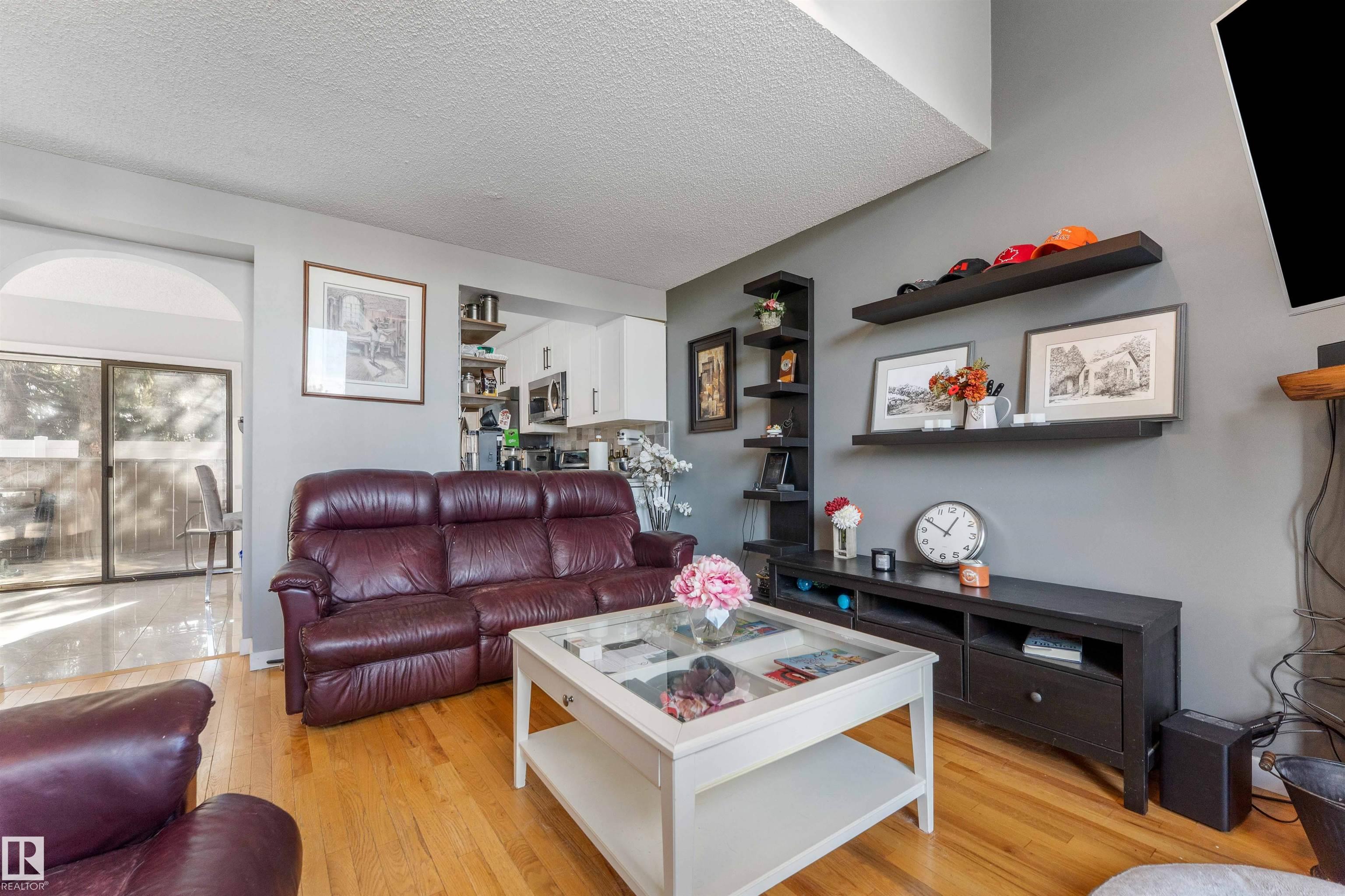 Located in the heart of Sherwood Park, this inviting end-unit condo offers great space and potential with 3 bedrooms and 2.5 bathrooms. The bright entryway leads to a flexible lower-level room that can serve as a bedroom, office, or rec space, complete with ample storage, garden door access to the front patio, and a nearby 3-piece bath with a relaxing soaker tub. The main living area features large windows that fill the space with natural light, gleaming hardwood floors, and a cozy wood-burning fireplace. The newly reovated kitchen includes ceramic tile flooring, generous cabinet space, and access to a private patio—perfect for outdoor relaxation. A convenient updated guest bathroom completes this level. Upstairs you’ll find a spacious primary bedroom with a walk-in closet, a second bedroom, and a renovated 4-piece main bath. Two parking stalls are located directly out front, and the central location places you steps from parks, Festival Place, the library, and shopping.