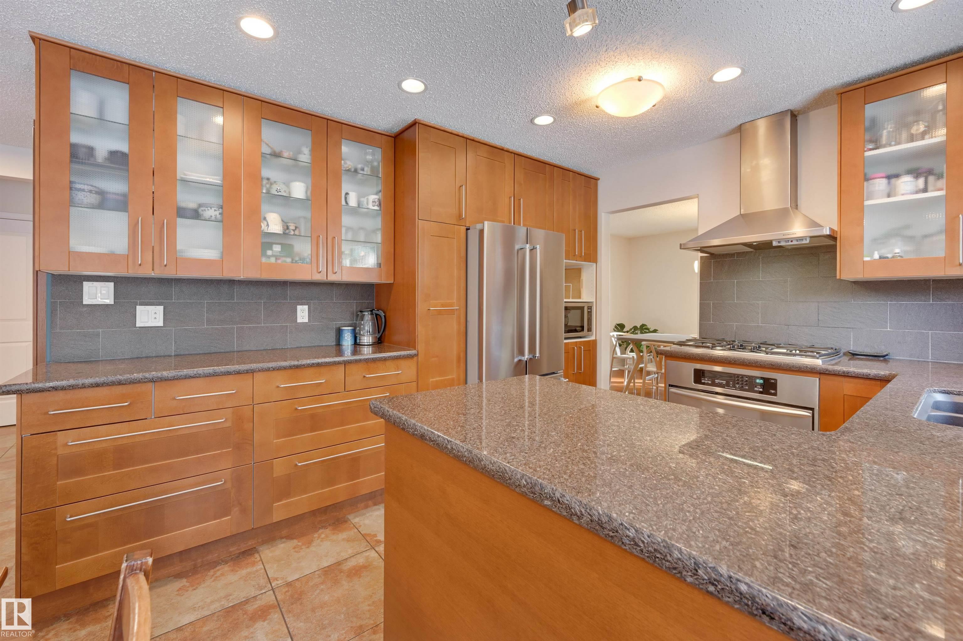 Rare opportunity to live across from Wolf Willow Park with sweeping ravine views and direct access to Edmonton’s River Valley trail system. This beautifully renovated 2,295 sq ft two-storey offers the perfect balance of nature and city convenience—just minutes from everyday amenities. Enjoy a peaceful setting where birdsong fills the air and deer are often seen from your front window. A spacious foyer welcomes guests and opens to elegant formal living and dining rooms ideal for entertaining. The chef’s kitchen features stainless steel appliances, granite countertops, rich maple cabinetry, and under-cabinet lighting. A bright breakfast nook and inviting family room overlook the private backyard, creating warm everyday living space. Upstairs offers four generous bedrooms and 2 full baths, including a spacious primary retreat. An exceptional home combining comfort, lifestyle, and one of Edmonton’s most desirable ravine locations. with large windows the spacious basement is bright and inviting.