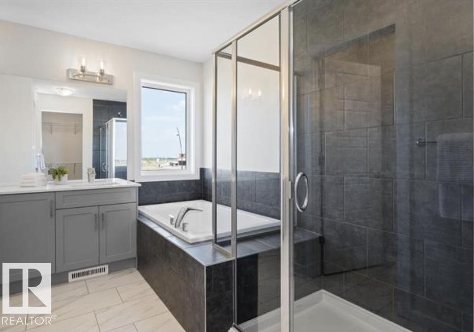 Welcome home — I’ve been waiting for you. I’m a brand new custom-built home in the beautiful community of The Uplands, Edmonton, offering 2,356 sq ft of thoughtfully designed living space. Inside, you’ll find 3 bedrooms, 2.5 bathrooms, a bright living room with a cozy fireplace and large window, plus a spacious dining area perfect for gathering. My upgraded kitchen features stunning quartz countertops, modern cabinets, and a pantry, along with a separate spice kitchen for all your cooking needs. The main floor boasts elegant 9-ft ceilings, while upstairs I offer the convenience of laundry and comfortable bedrooms designed for relaxing. I also come with a side entrance to the basement, giving you great future potential. On the outside, I’m dressed with stone accents, premium vinyl siding, and welcoming concrete steps. Best of all, I’m just steps from a pond, scenic walking trails, a creek, and beautiful green space. I’m more than a house — I’m a place to call home.