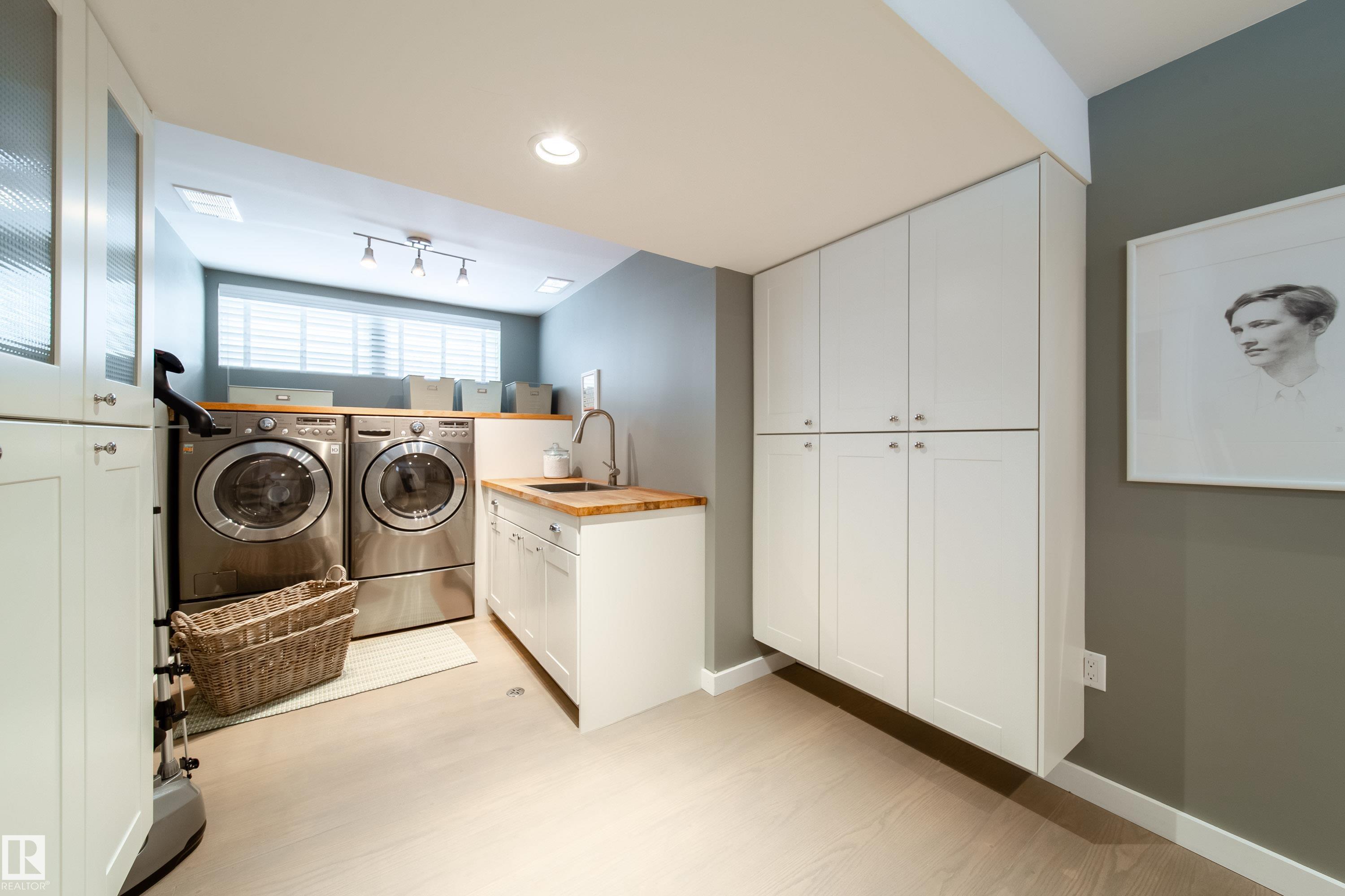 Exceptional Windsor Park home just minutes from the University of Alberta and river valley trails. This upgraded 5 bedroom, 4 bath residence offers premium finishes, energy efficiency and rare flex spaces. Steam shower in 4 pce. bathrm. Main floor features new engineered hardwood, Vermont Castings wood-burning fireplace and heated tile floors at front and rear entries. Chef’s kitchen with Wolf gas range + griddle, Fabre hood fan, Sub-Zero fridge and wine fridge, Miele dishwasher and walk-in pantry. Energy upgrades include 10 kW solar panels, dual furnaces, dual A/C and a durable 10 mm metal clad roof with European Lindab eaves. Fully landscaped yard with underground irrigation, cedar strip hot tub, new fencing and dual RV parking. Heated triple detached garage with vaulted loft, 3 overhead doors and 220V EV charger. Separate heated detached studio with French doors ideal for office, gym or art space. Prime location close to the University of Alberta, parks, schools and amenities. Exceptional home.